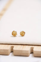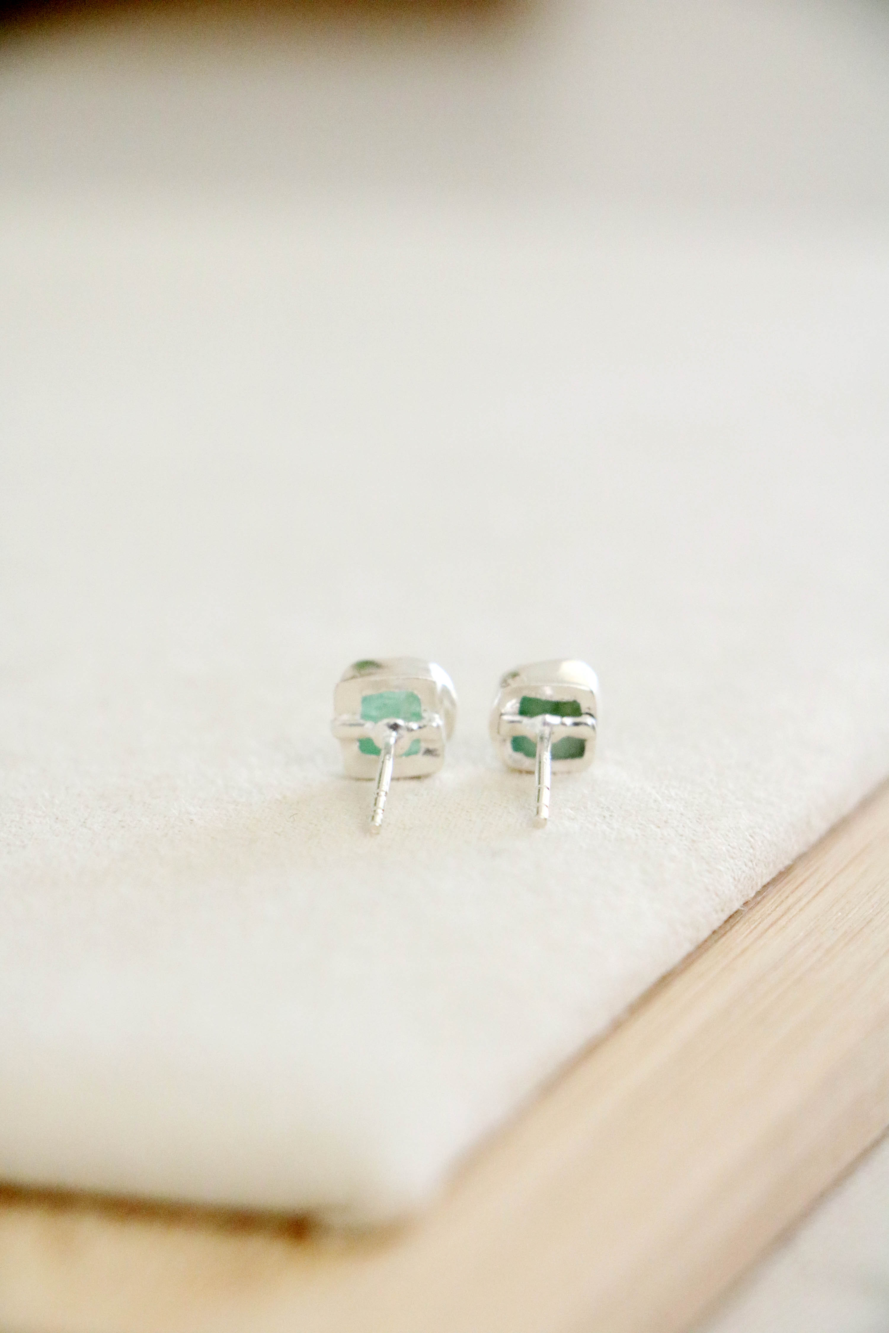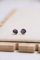 Size of each gem measures anywhere from 6-8mm. Back of post includes a silicone backing for a secure fit. Earrings have a collette setting so there is only a small amount of metal touching each ear during wear- this makes these user friendly for sensitive ears.