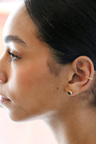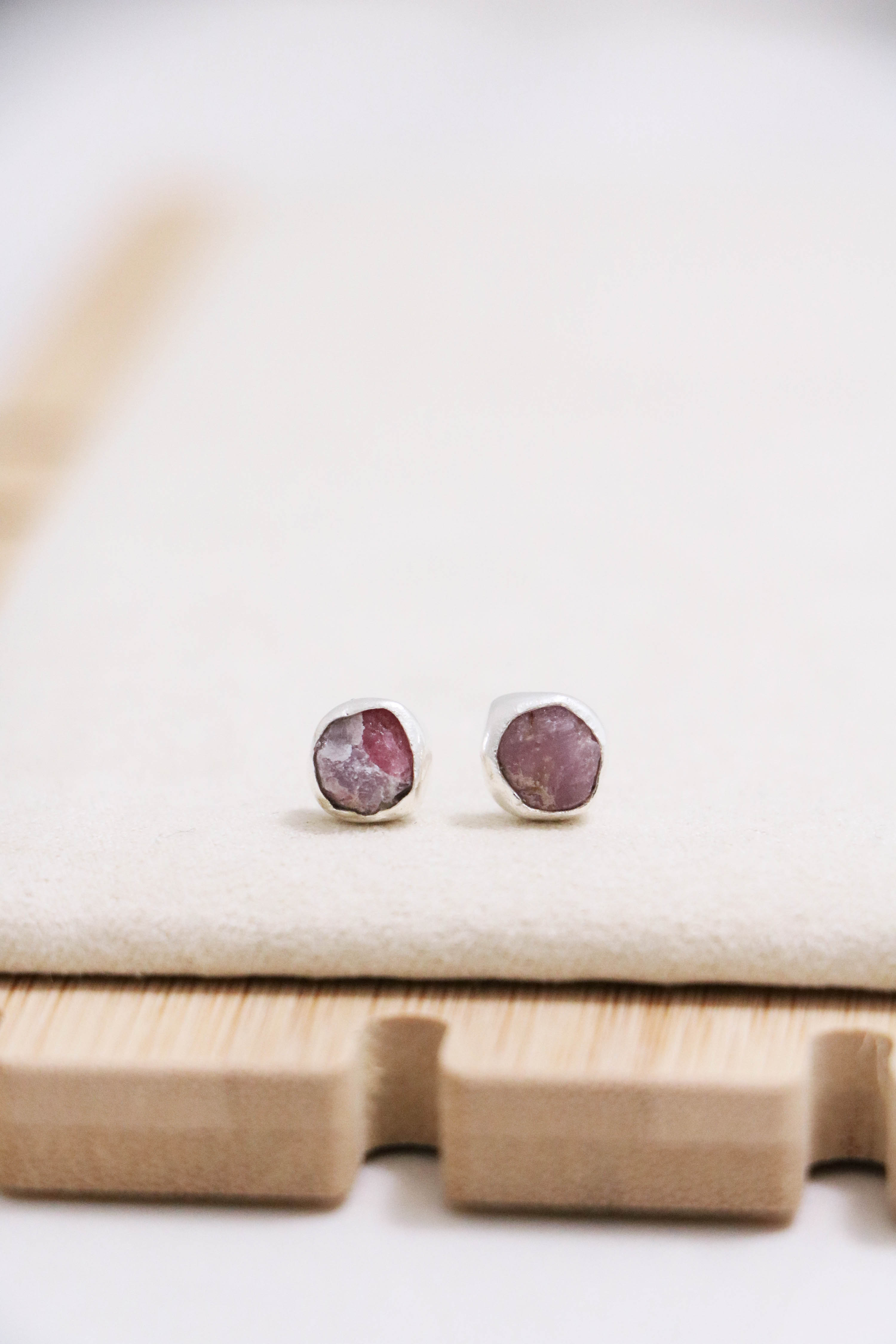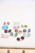 Raw gemstones are cut and formed into dainty nuggets. Each nugget is bezel set into your sterling silver post earrings. Size and color vary widely which makes this pair truly unique.