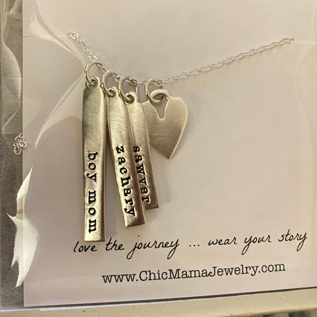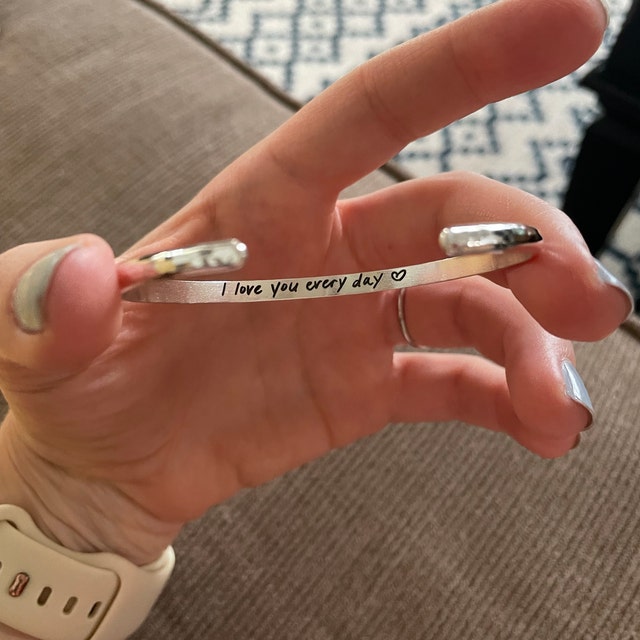 We make the jewelry, YOU make it meaningful. Your item is carefully crafted by hand in our Fort Worth, Texas studio. Make your piece unique through our personalization options. Most items can be engraved or handstamped with names, dates, a favorite phrase, actual handwriting, even artwork. Its more than pretty jewelry, its a lasting memory to wear for years to come.