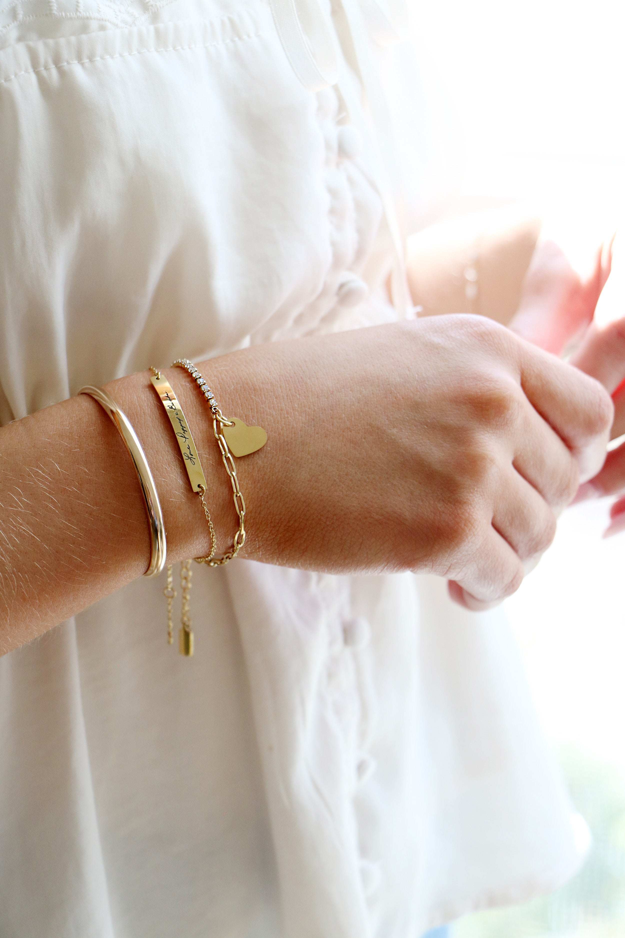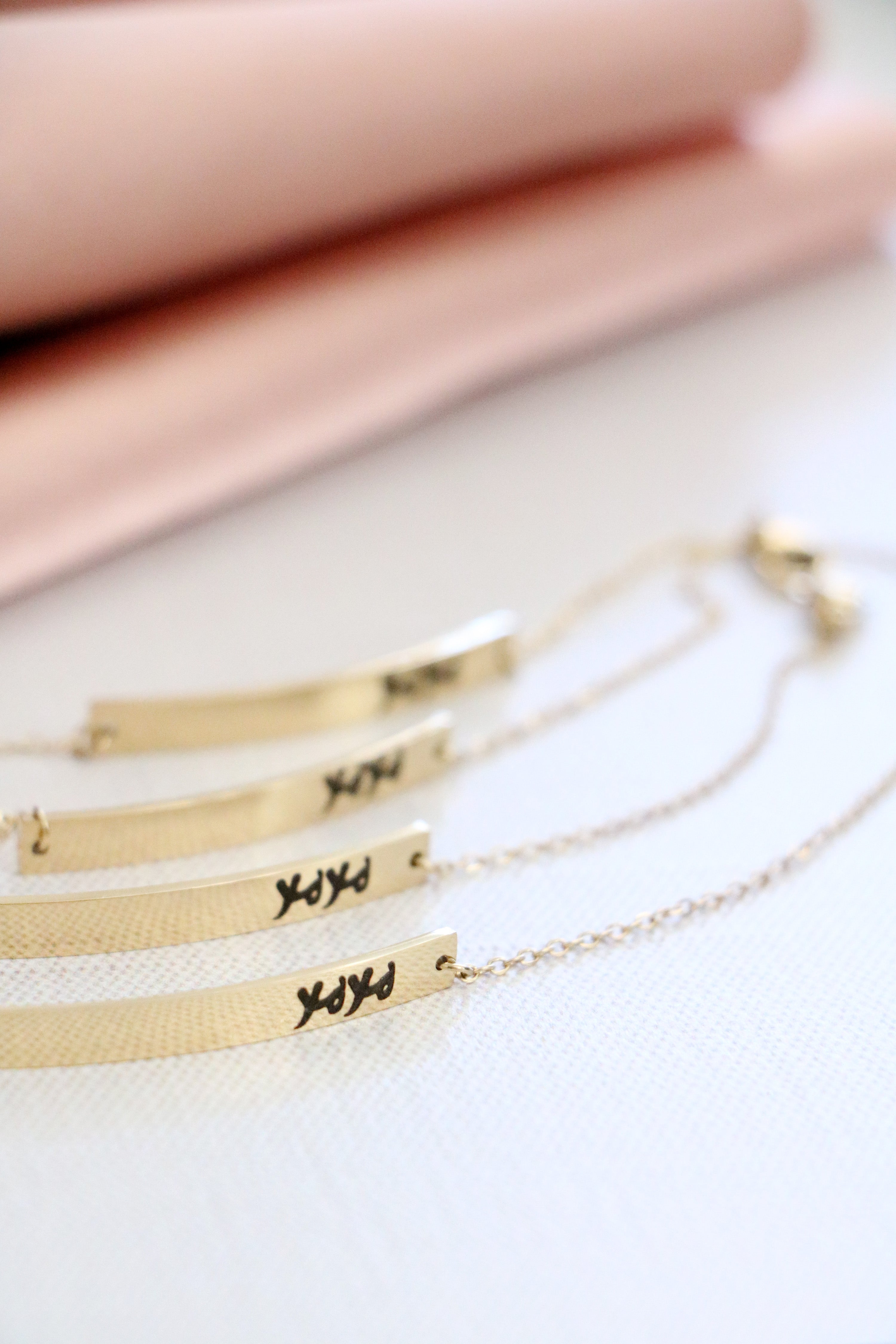 We make the jewelry, YOU make it meaningful. Your item is carefully crafted by hand in our Fort Worth, Texas studio. Make your piece unique through our personalization options. Most items can be engraved or handstamped with names, dates, a favorite phrase, actual handwriting, even artwork. Its more than pretty jewelry, its a lasting memory to wear for years to come.