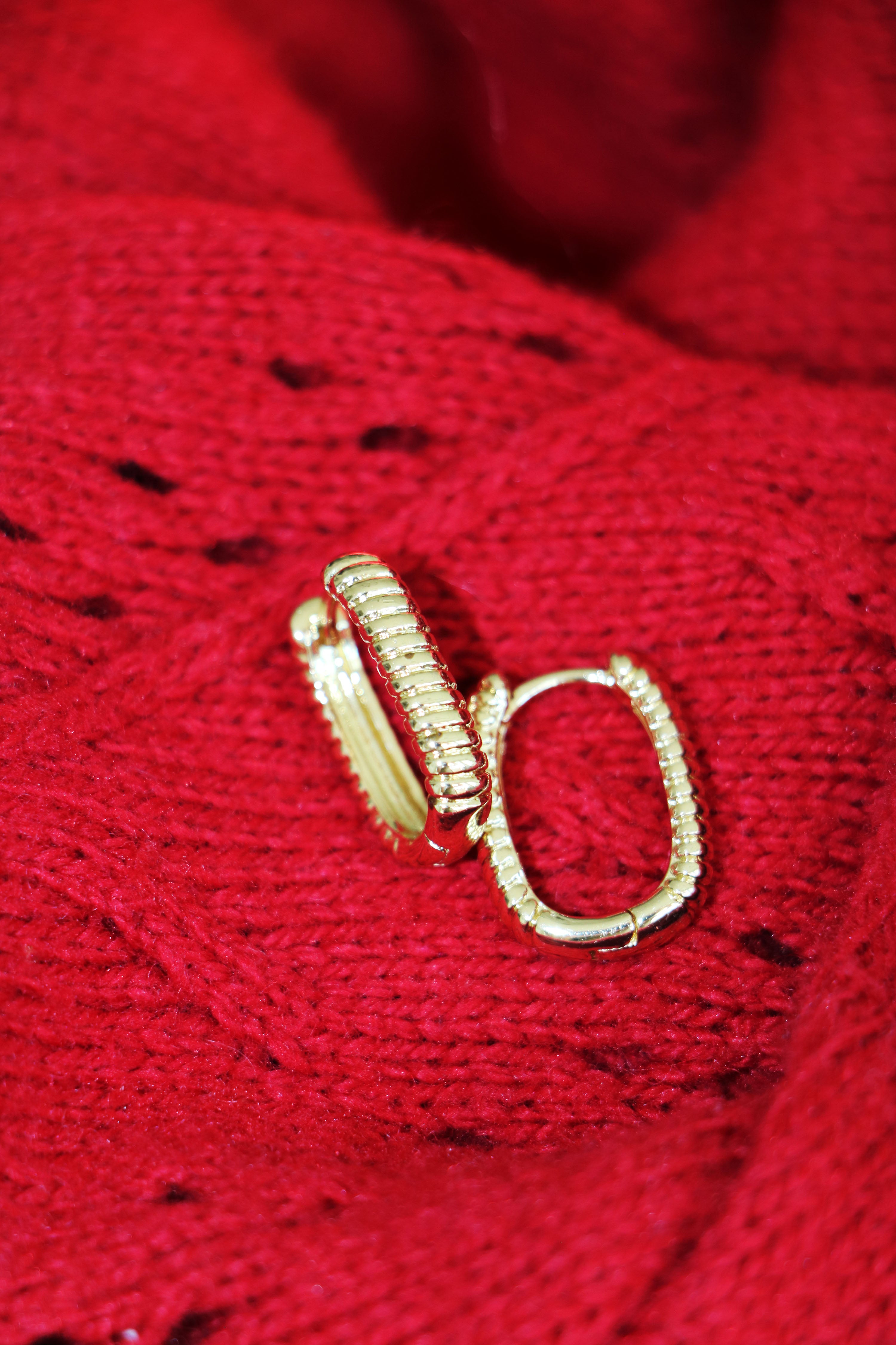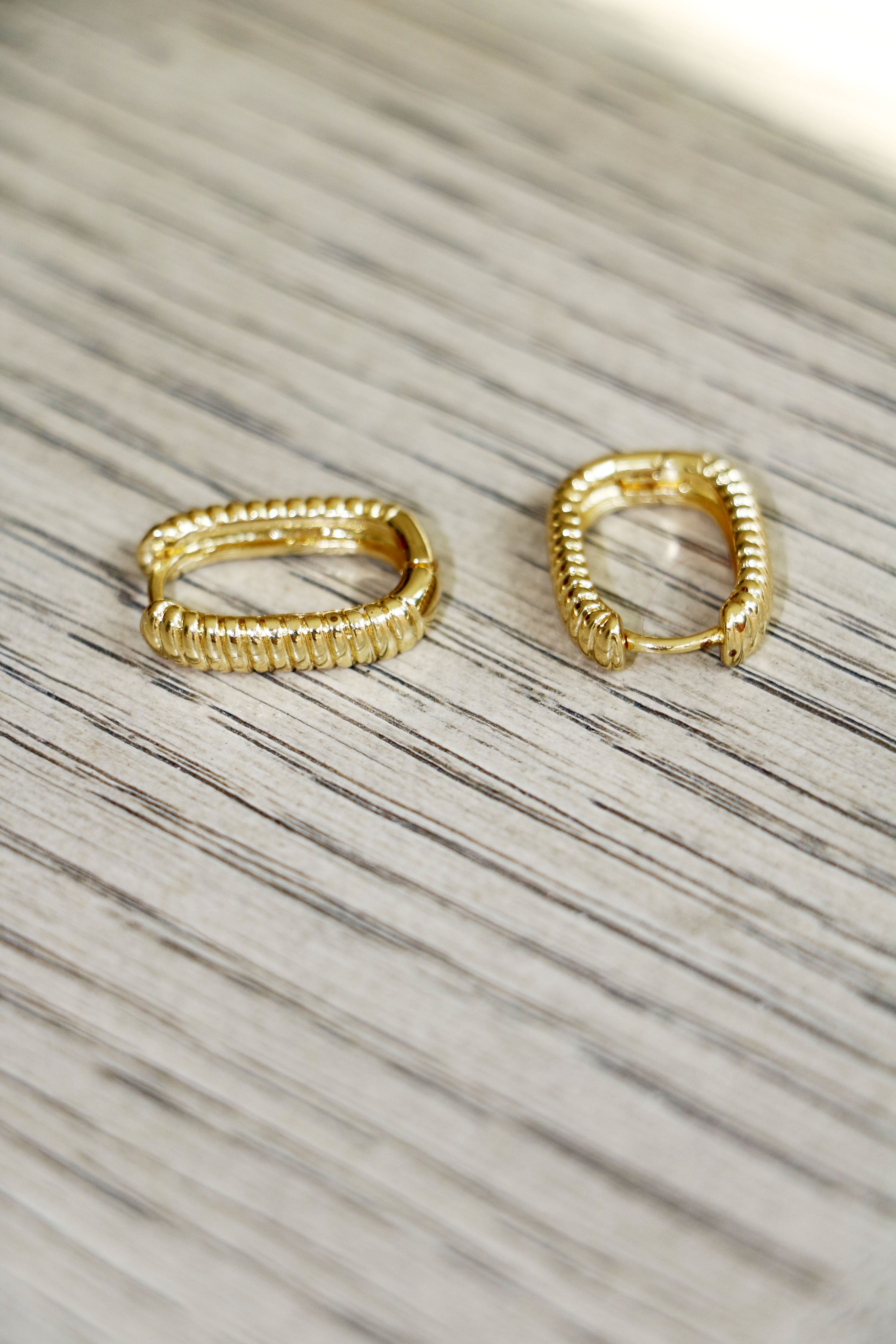 ribbed rectangle hoops { gold }