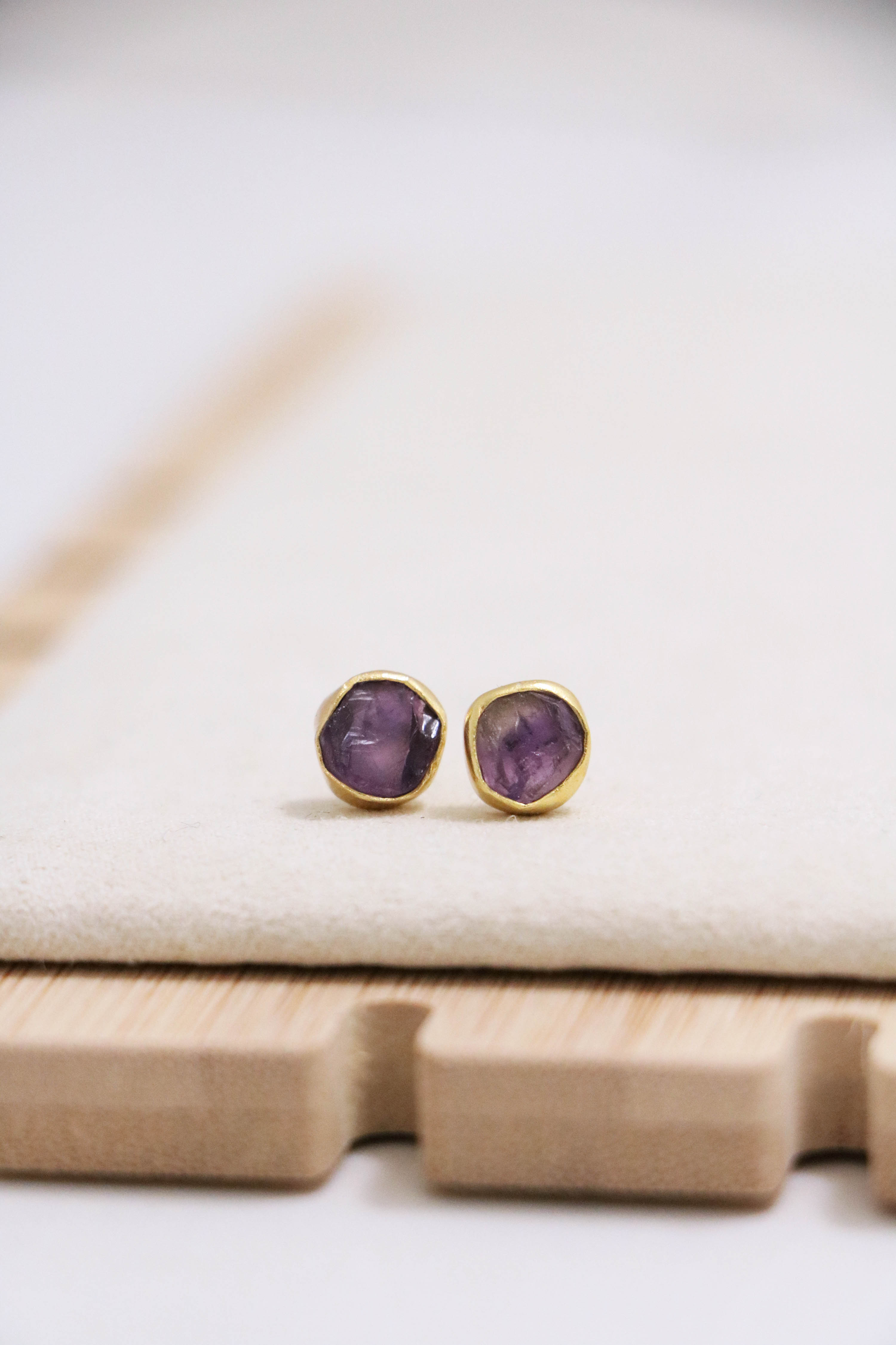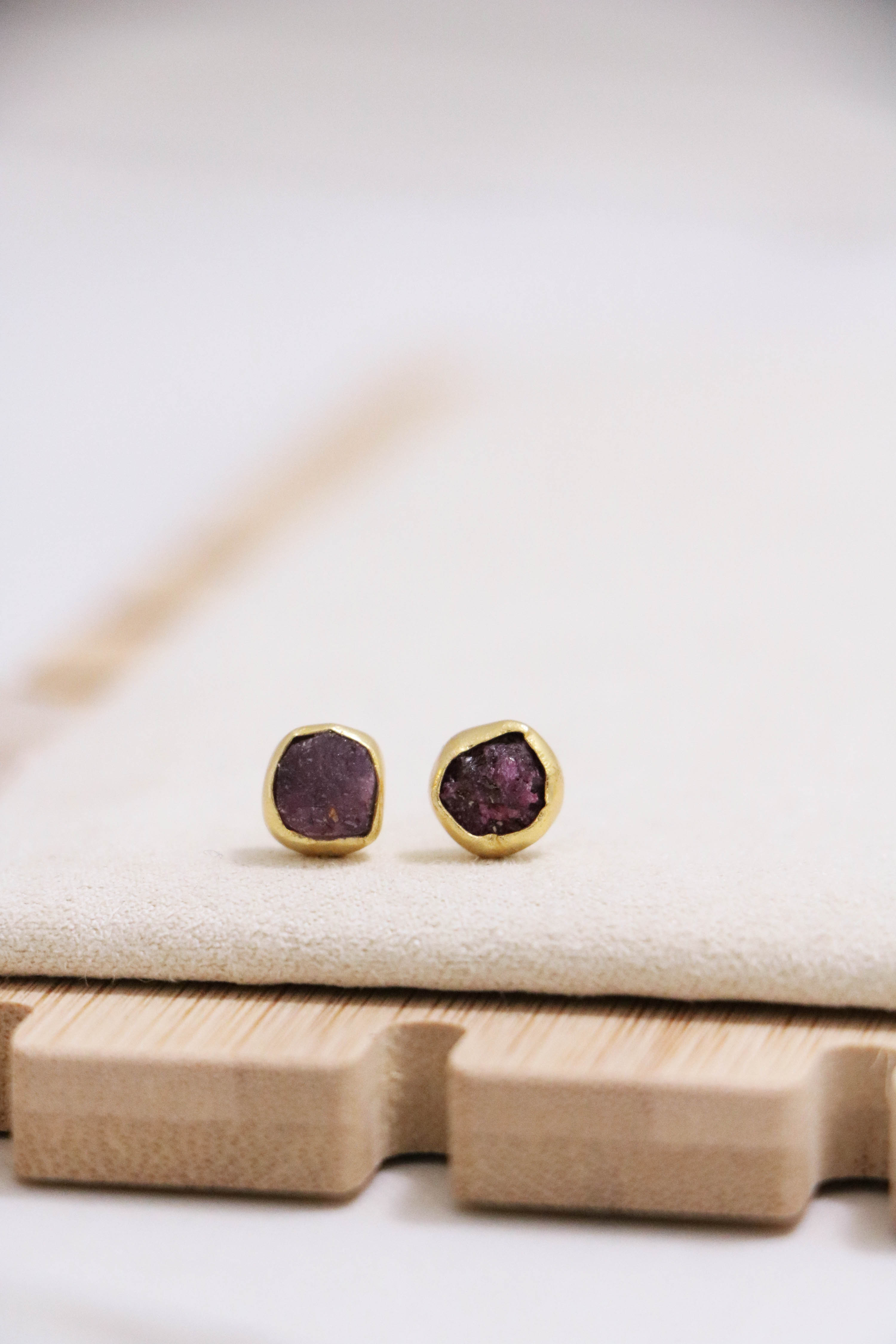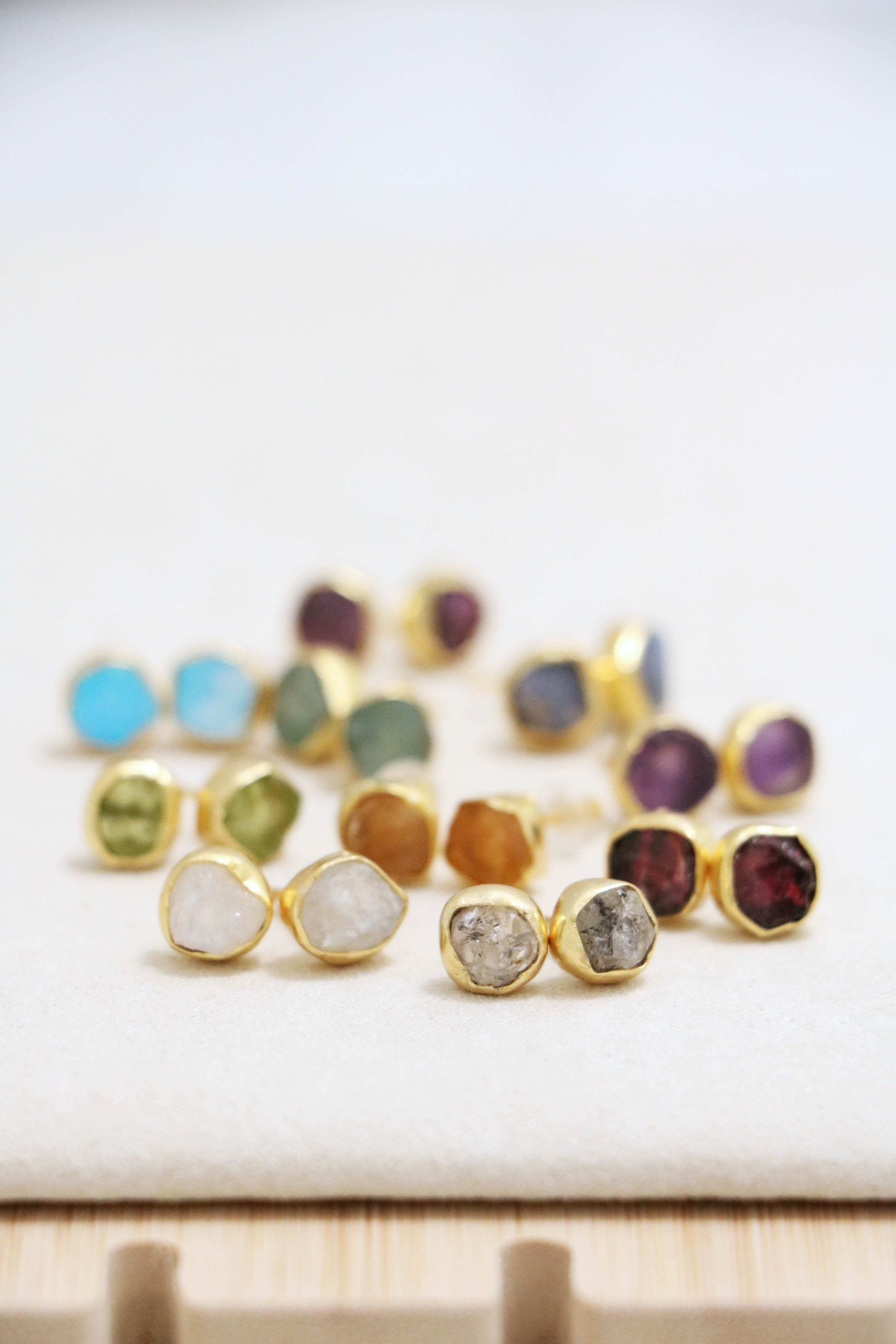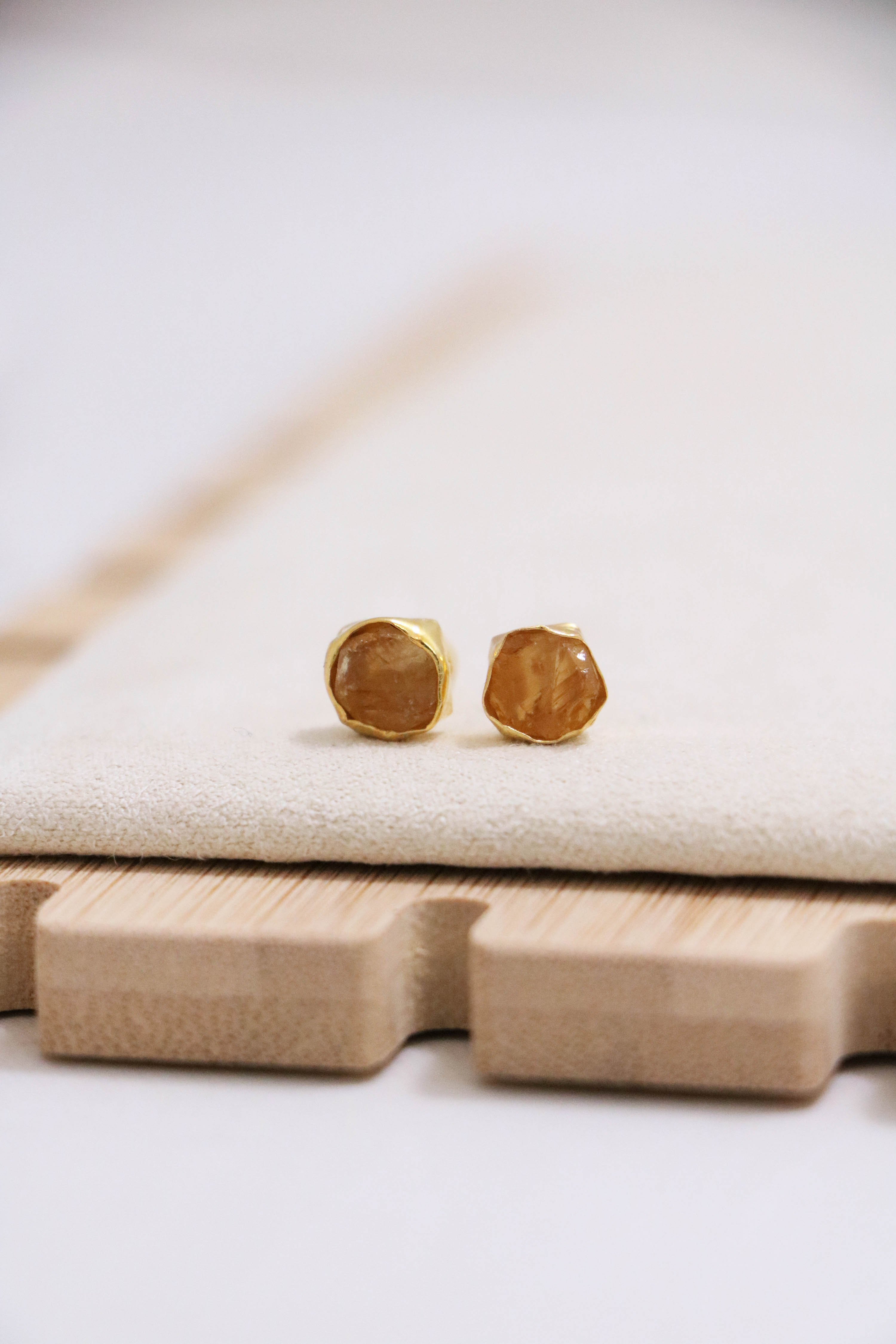 raw gemstone nugget earrings { gold }