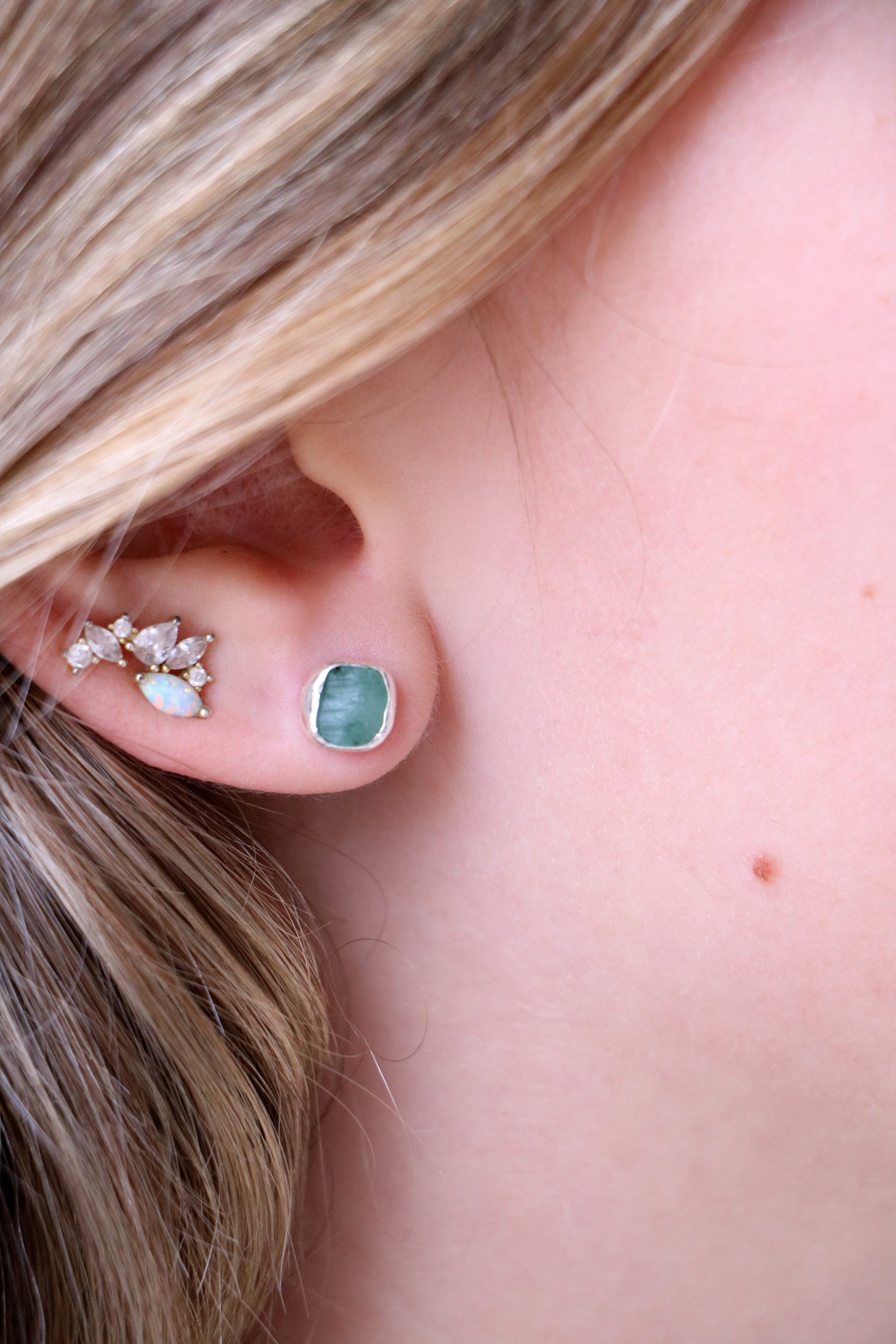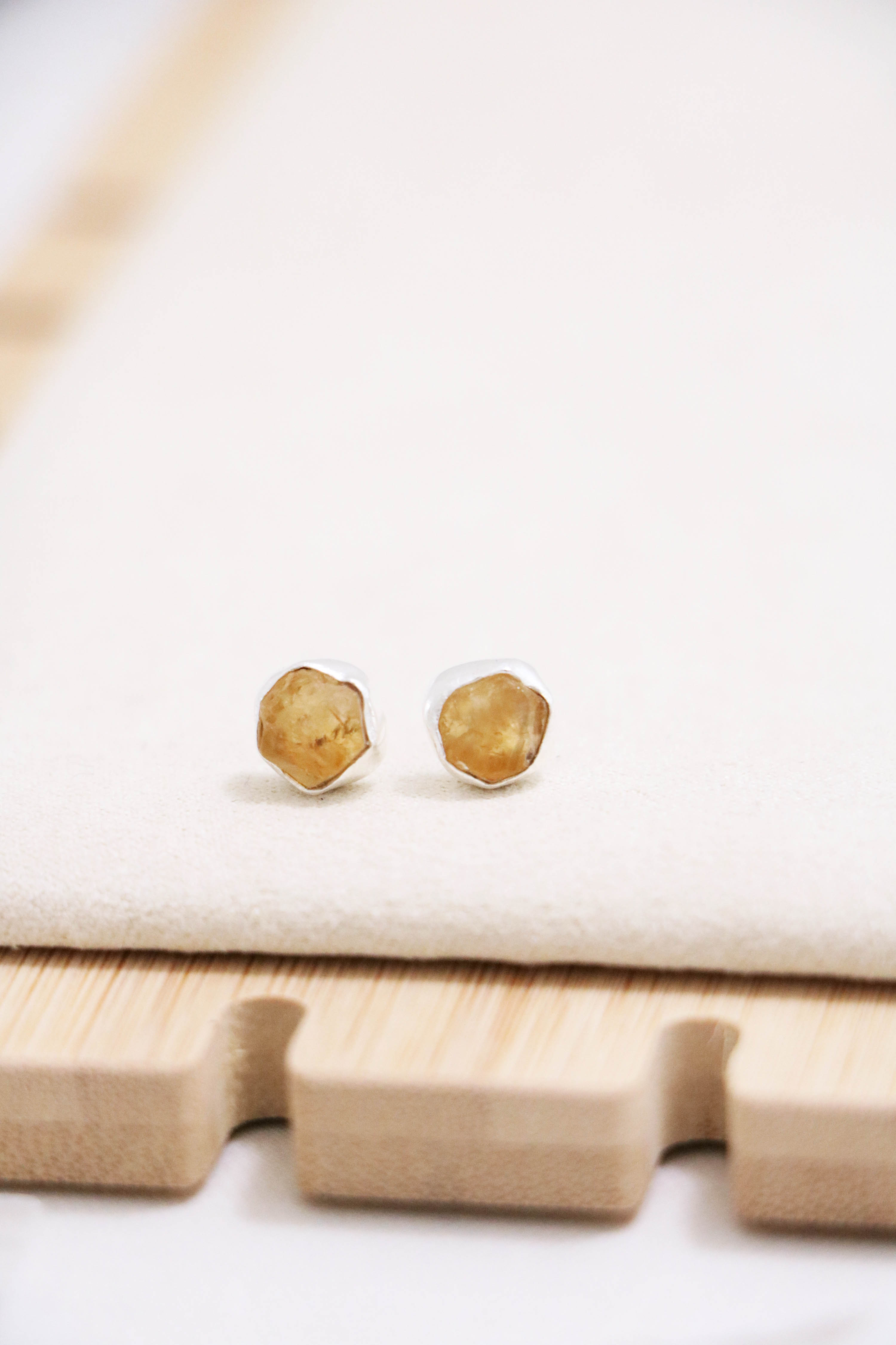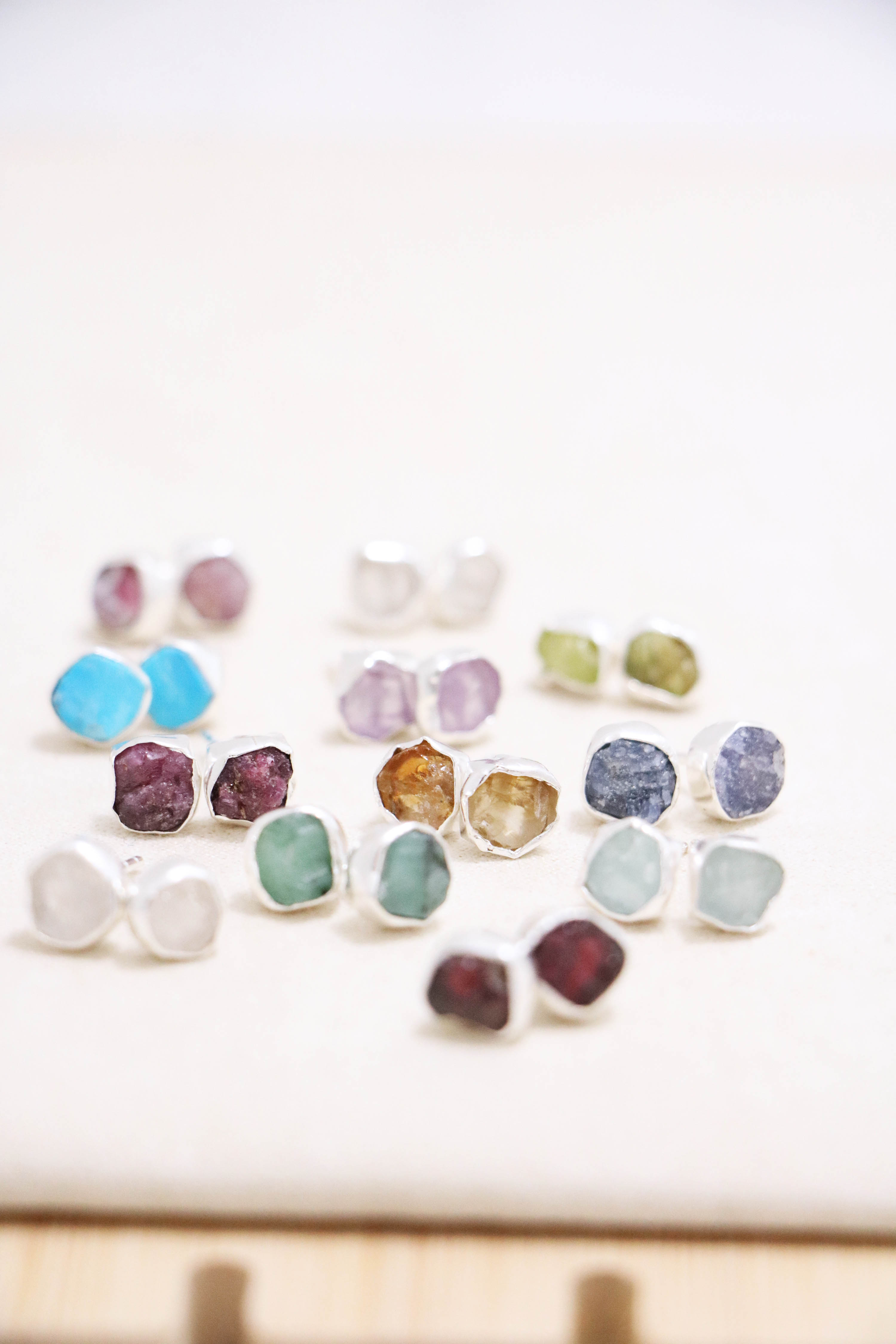 raw gemstone nugget earrings { silver }