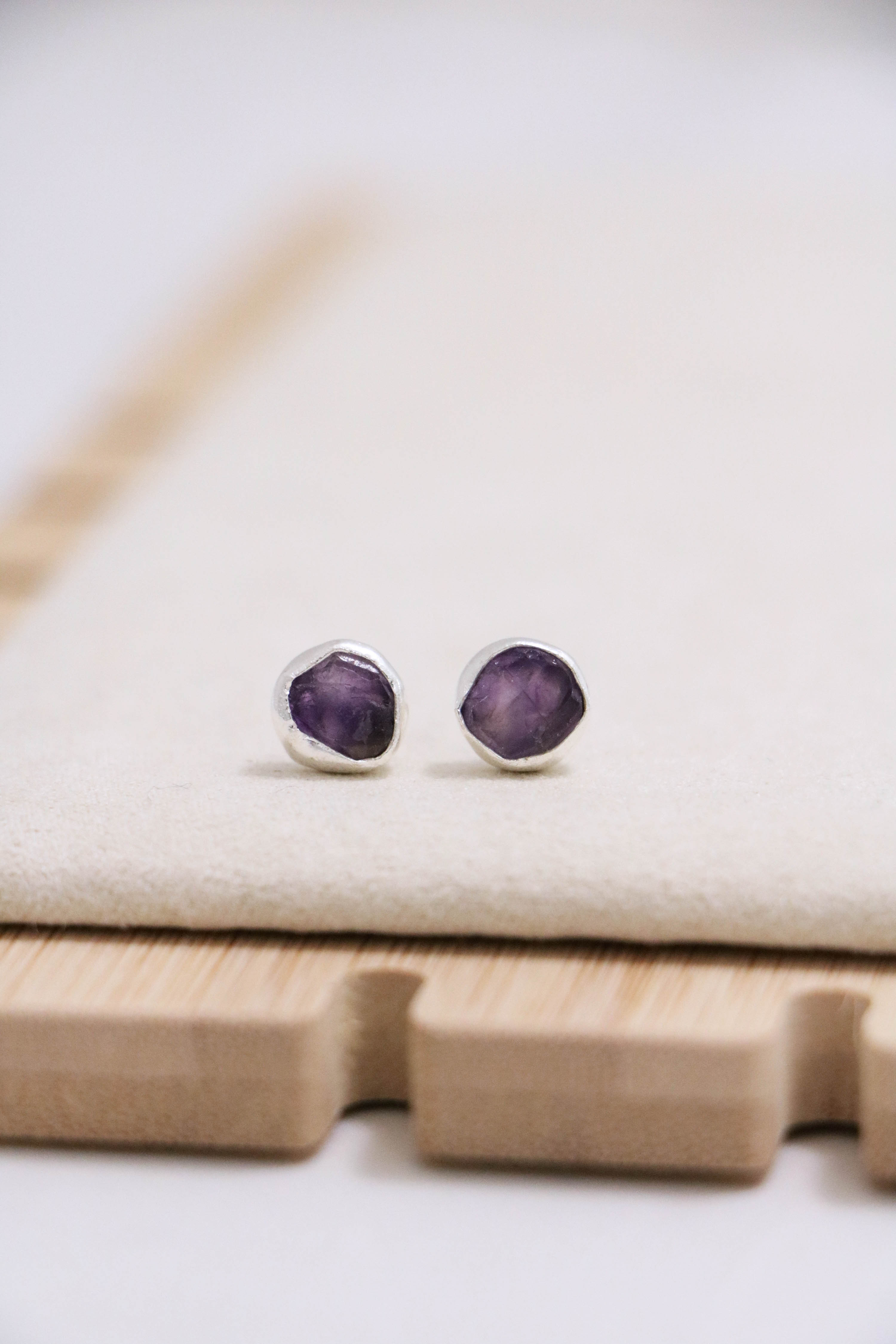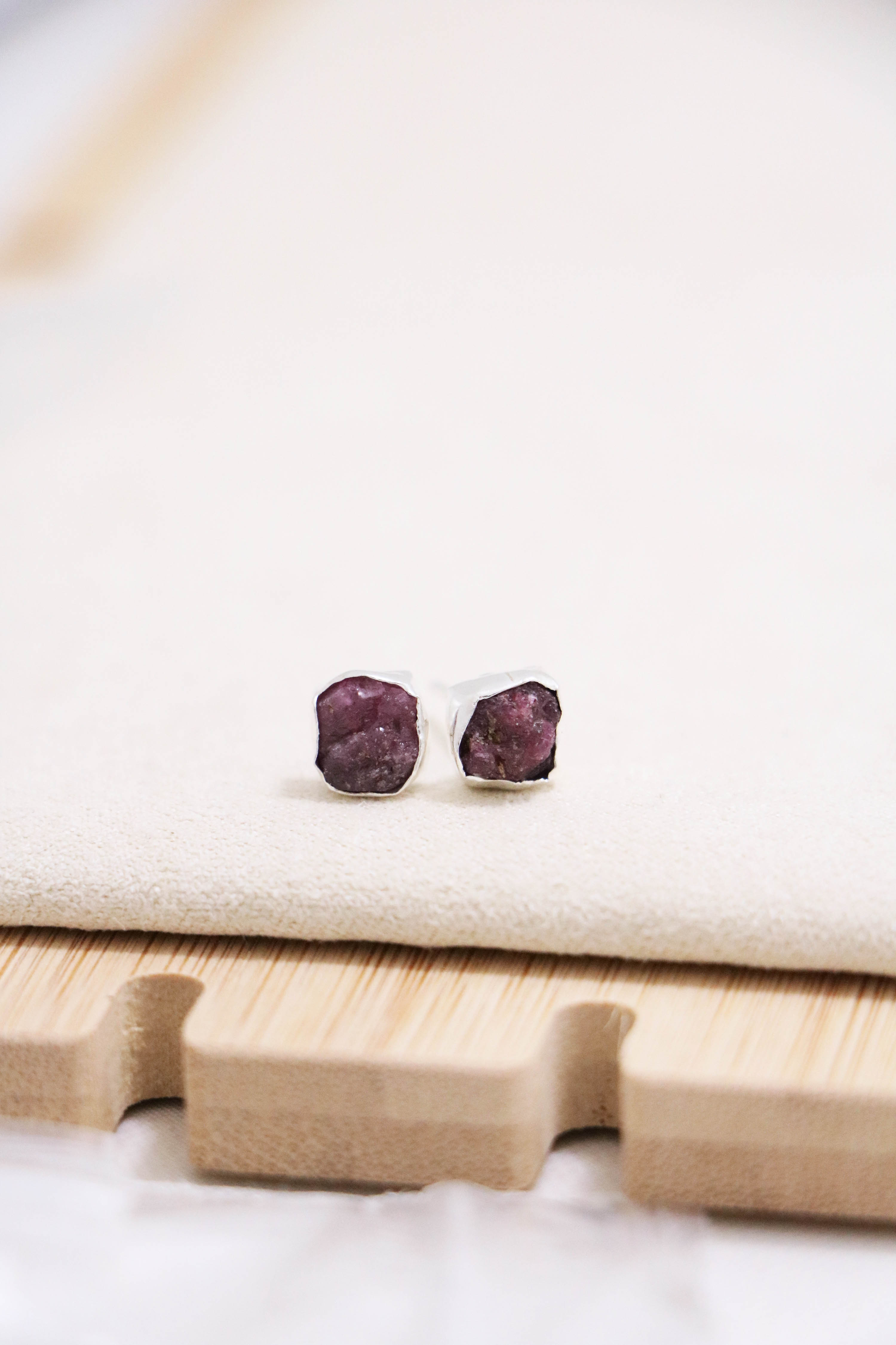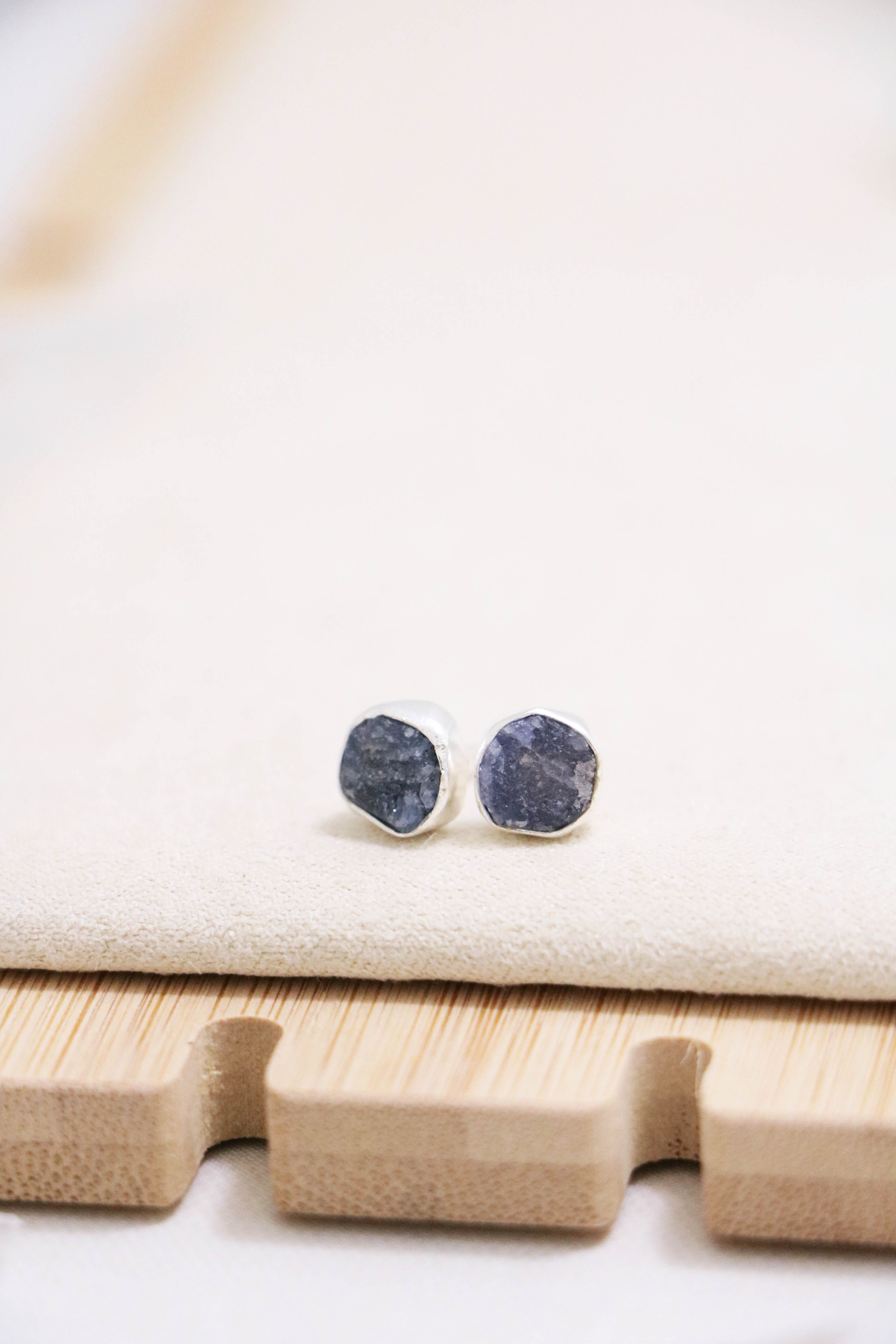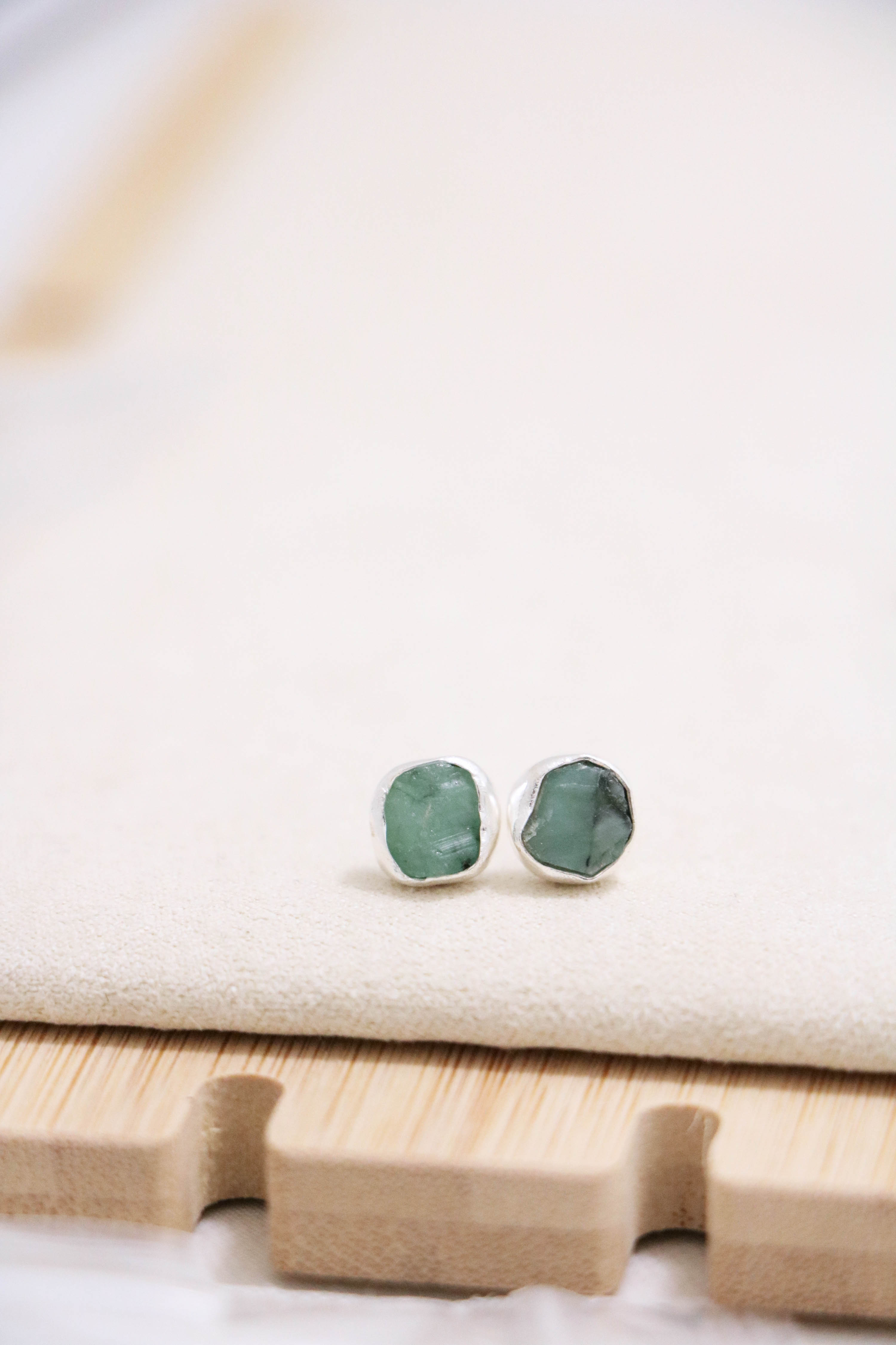 raw gemstone nugget earrings { silver }