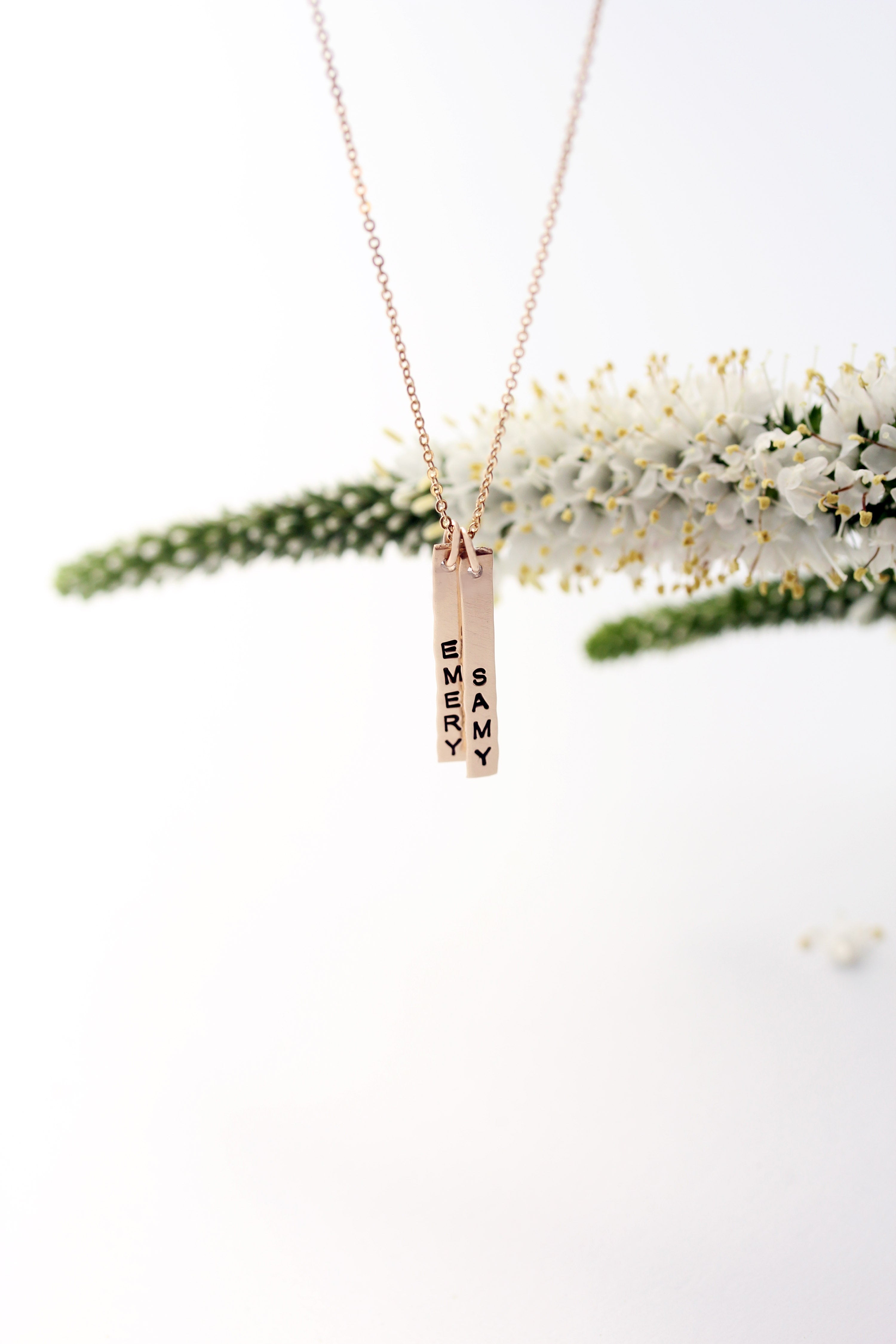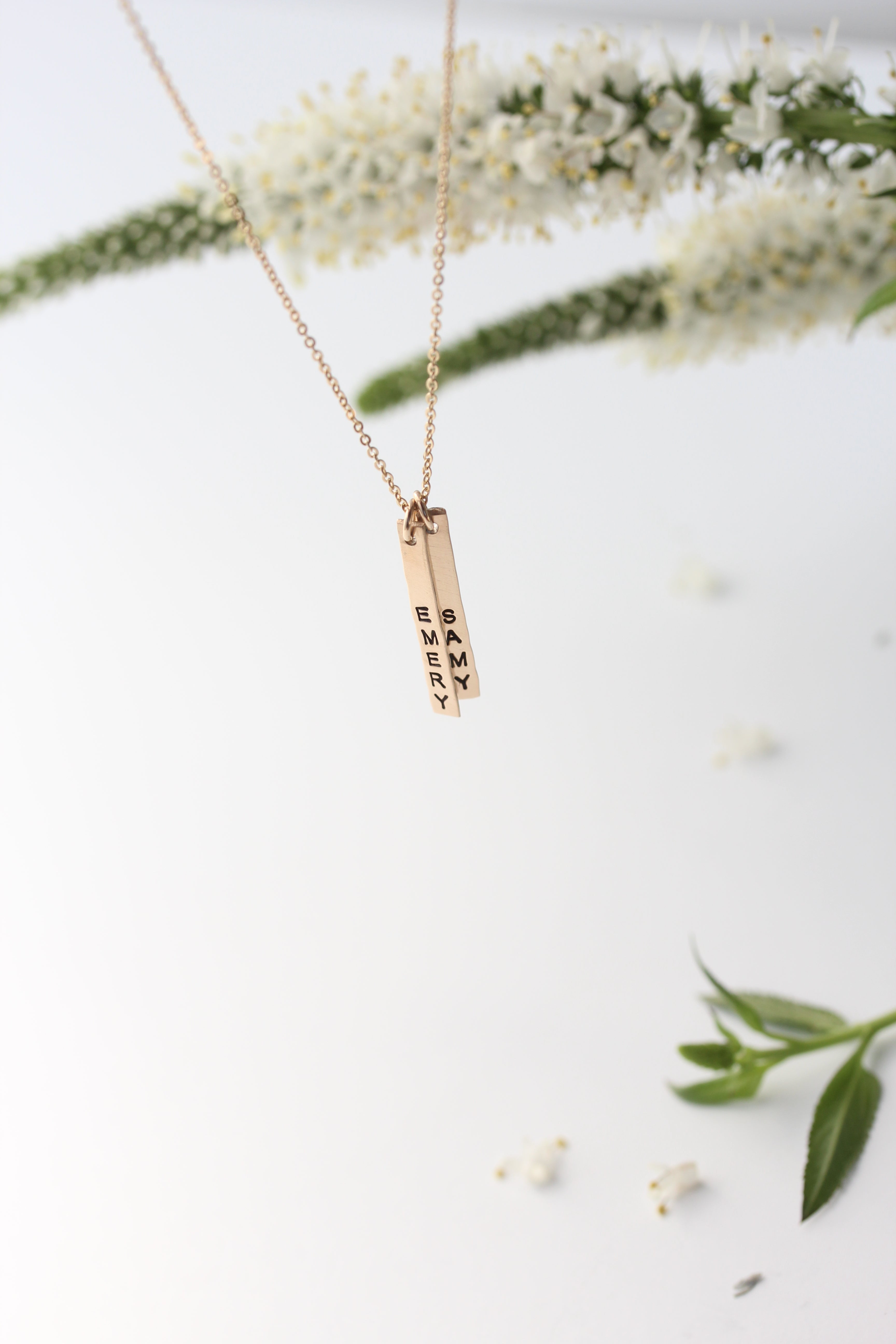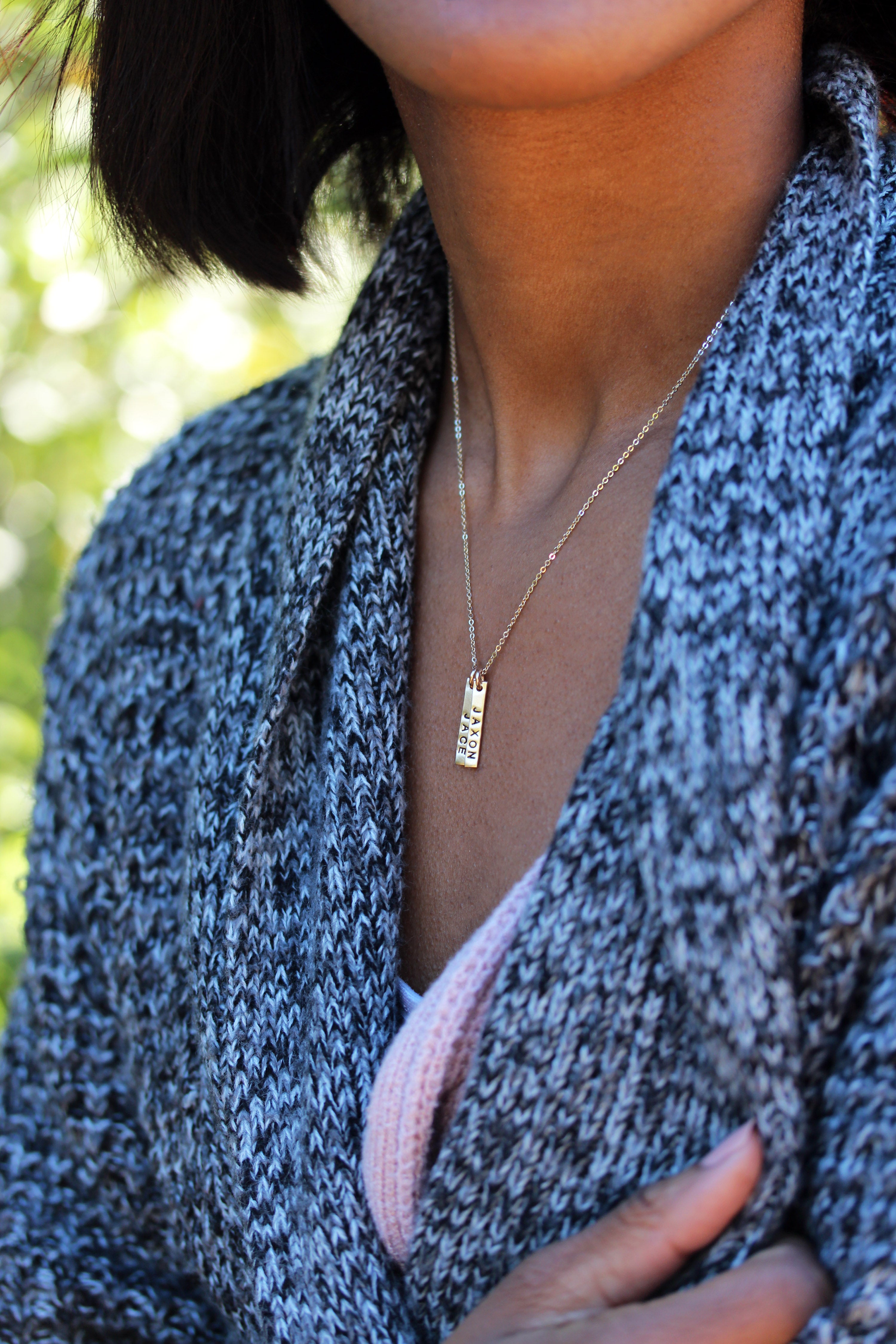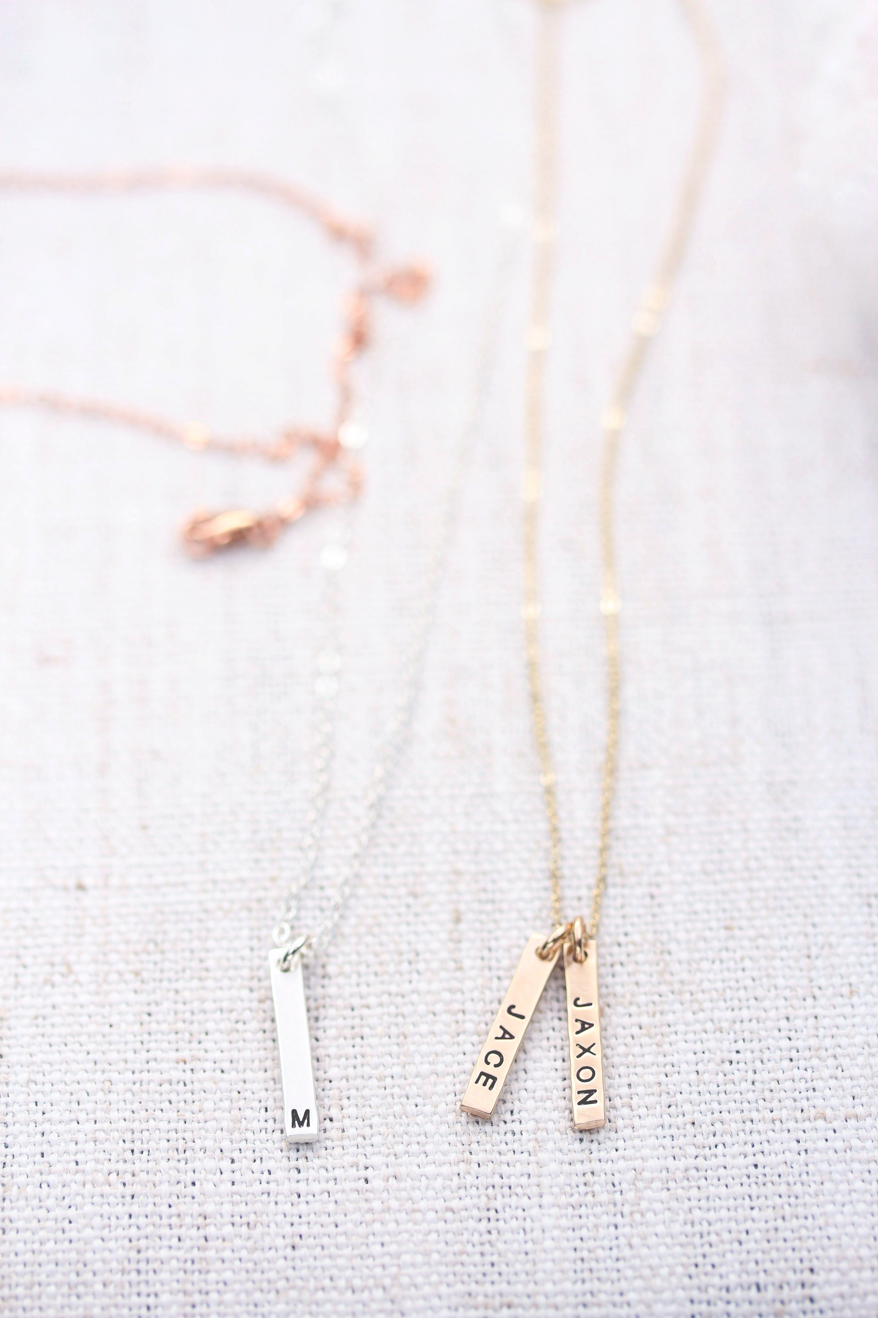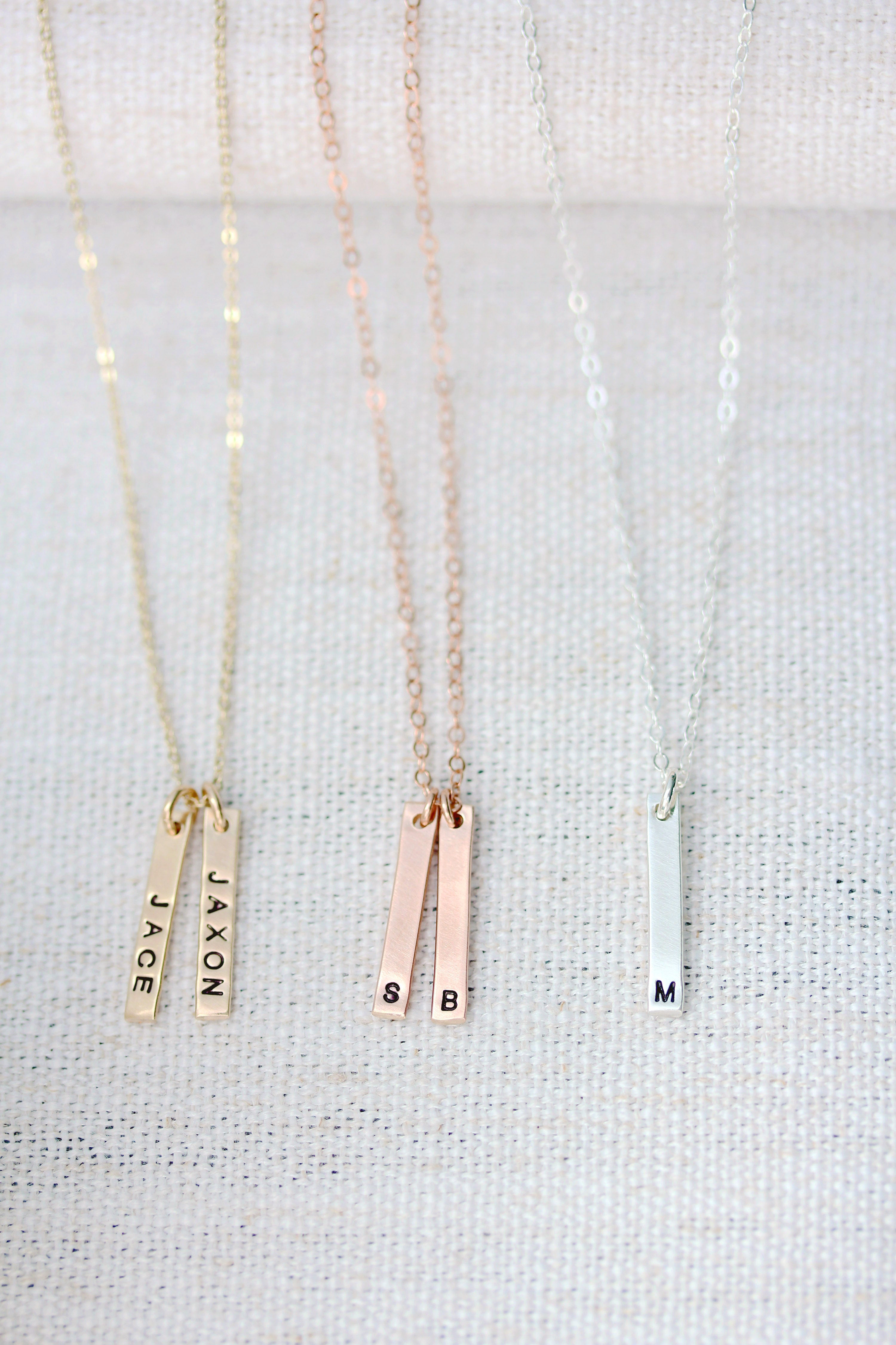 petite vertical bar necklace { silver + gold }