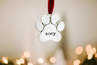 The cutest little paw print ornament to hang on your tree this year! Designed and cast in our Texas studio, this ornament can be personalized in any way you want. Ornament starts completely blank, stamp one pet name or several and customize it to your liking. Hung from a red velvet ribbon.