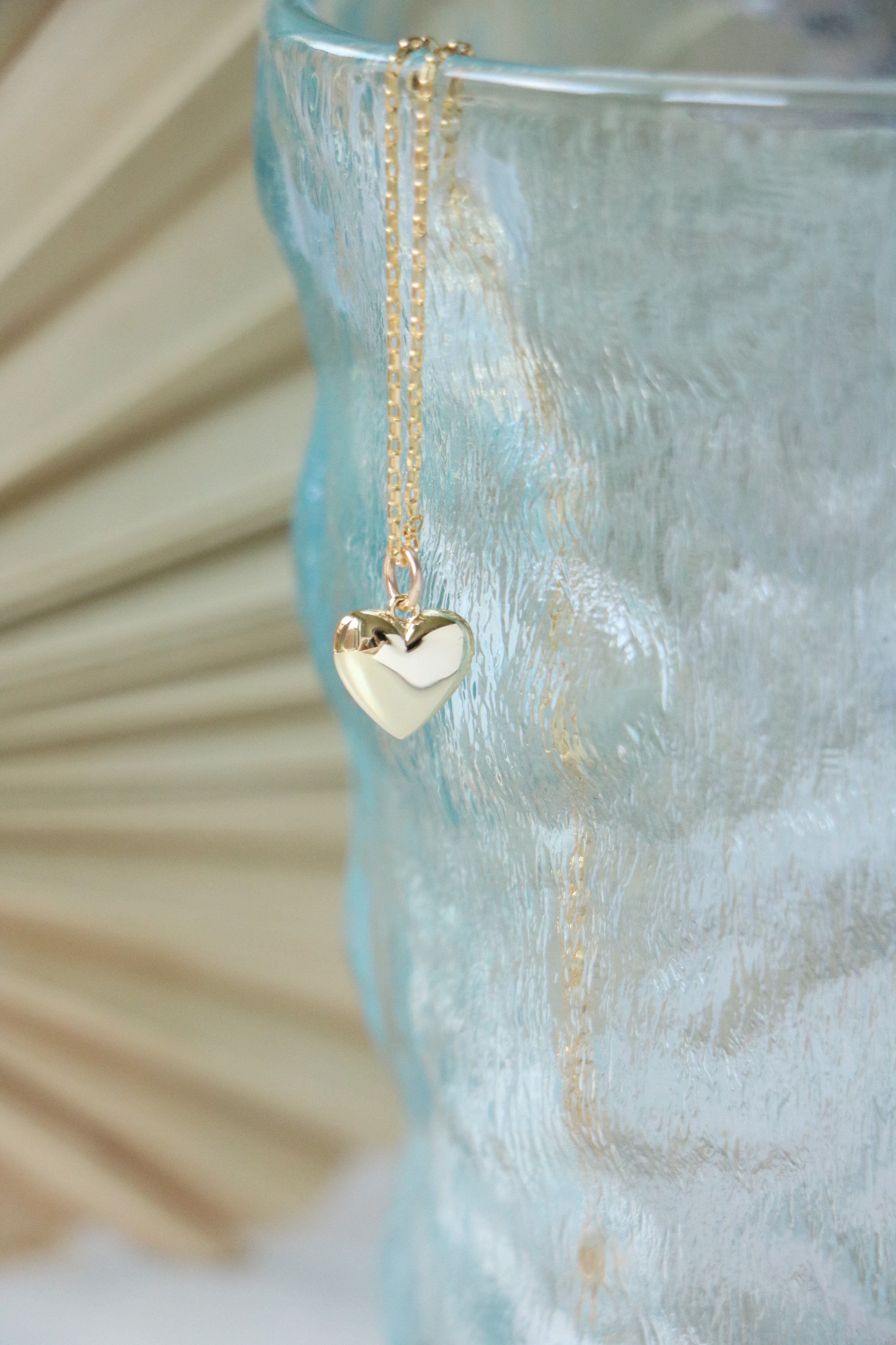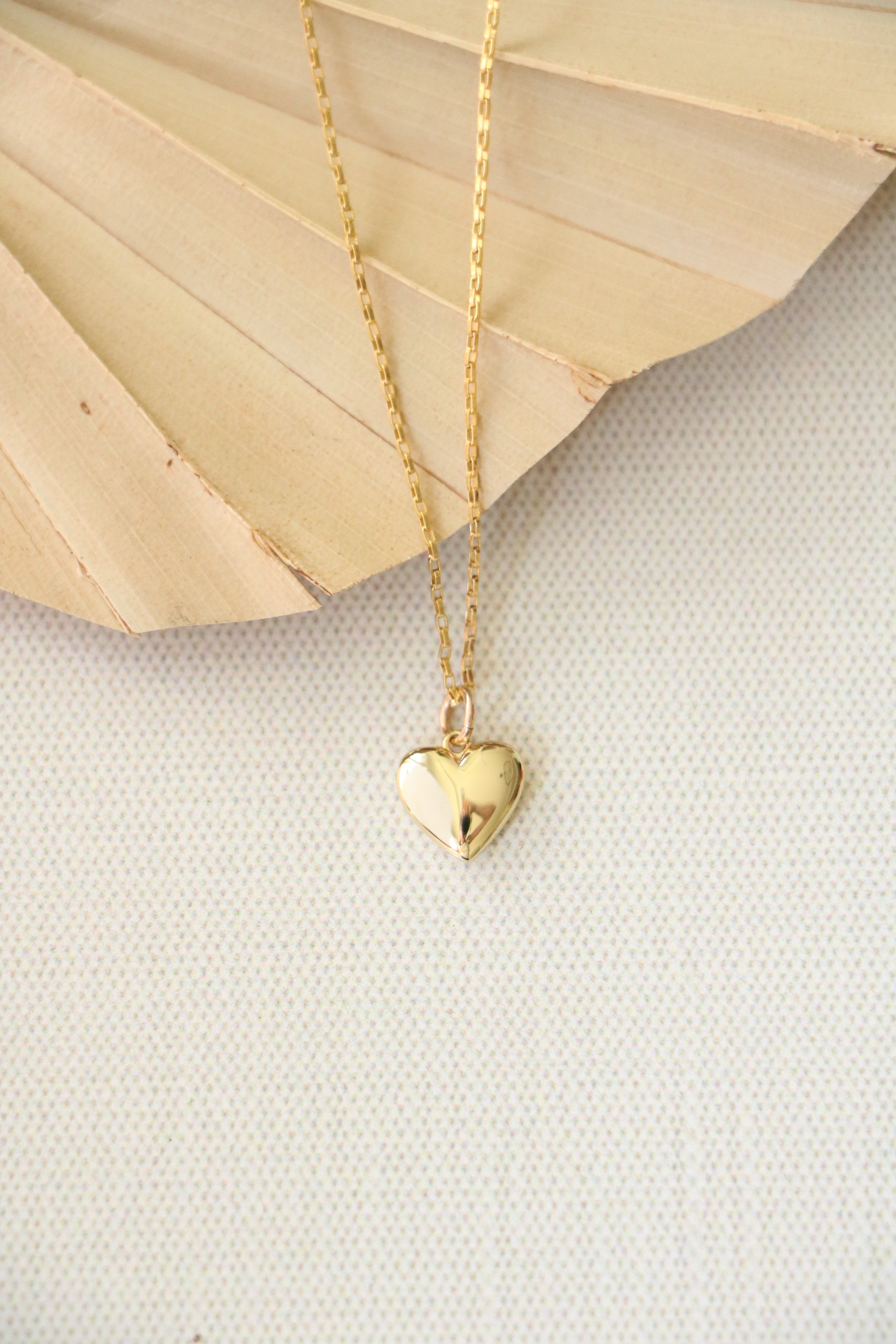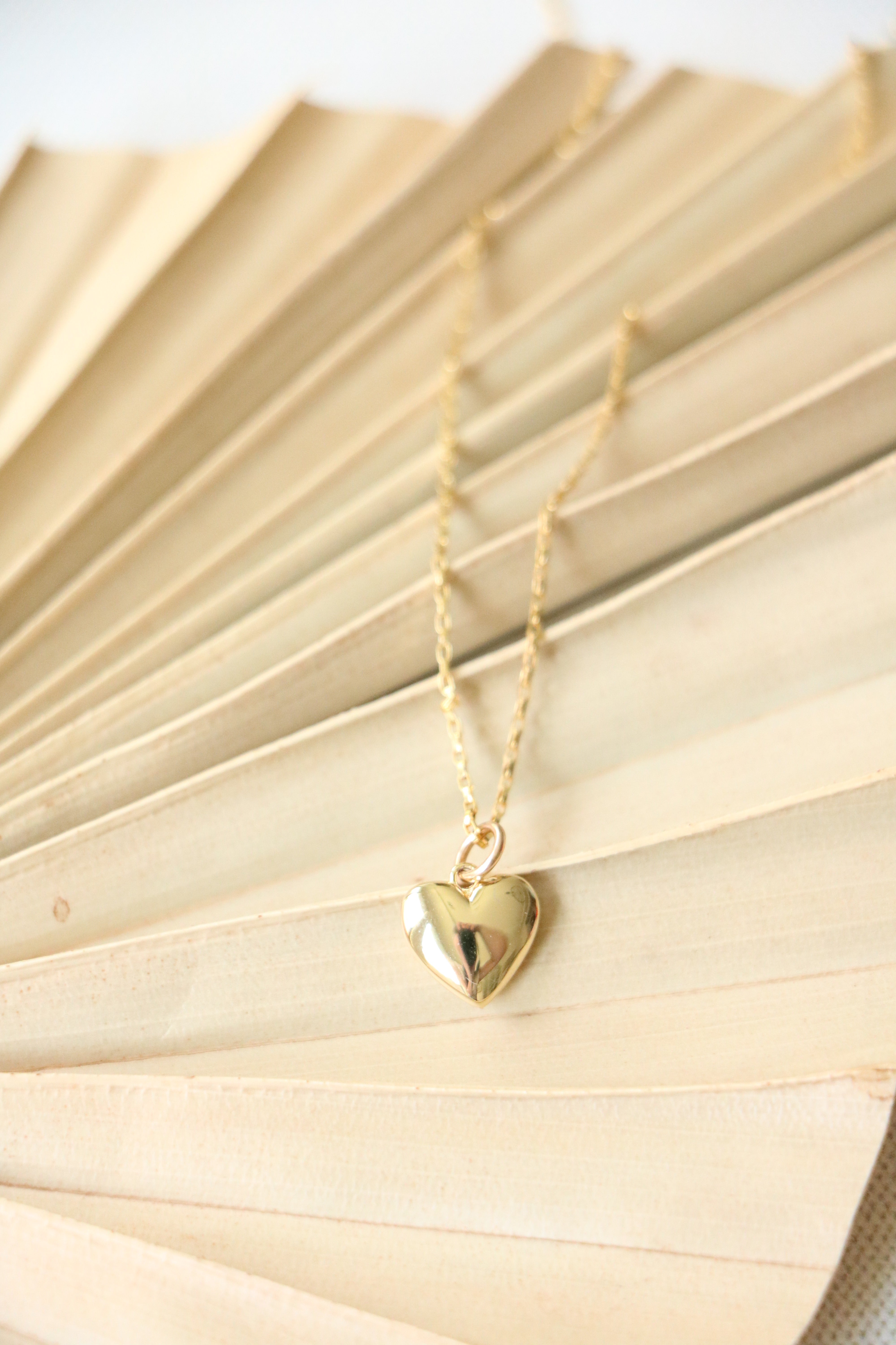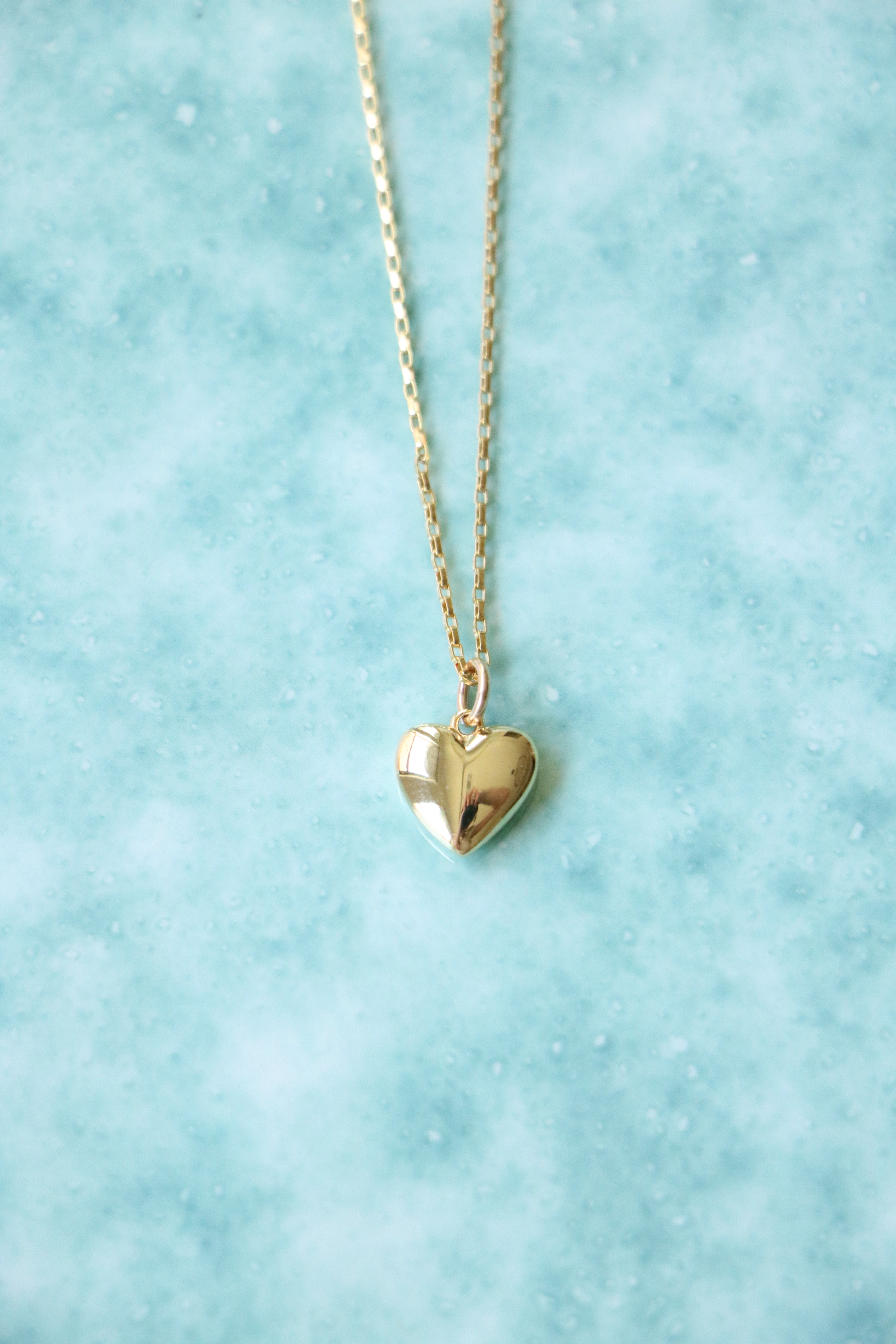 A perfect layering addition this season. A petite heart charm suspends from a delicate gold cable chain. Available in your choice of length. Heart charm is 3D so its puffed - not flat.