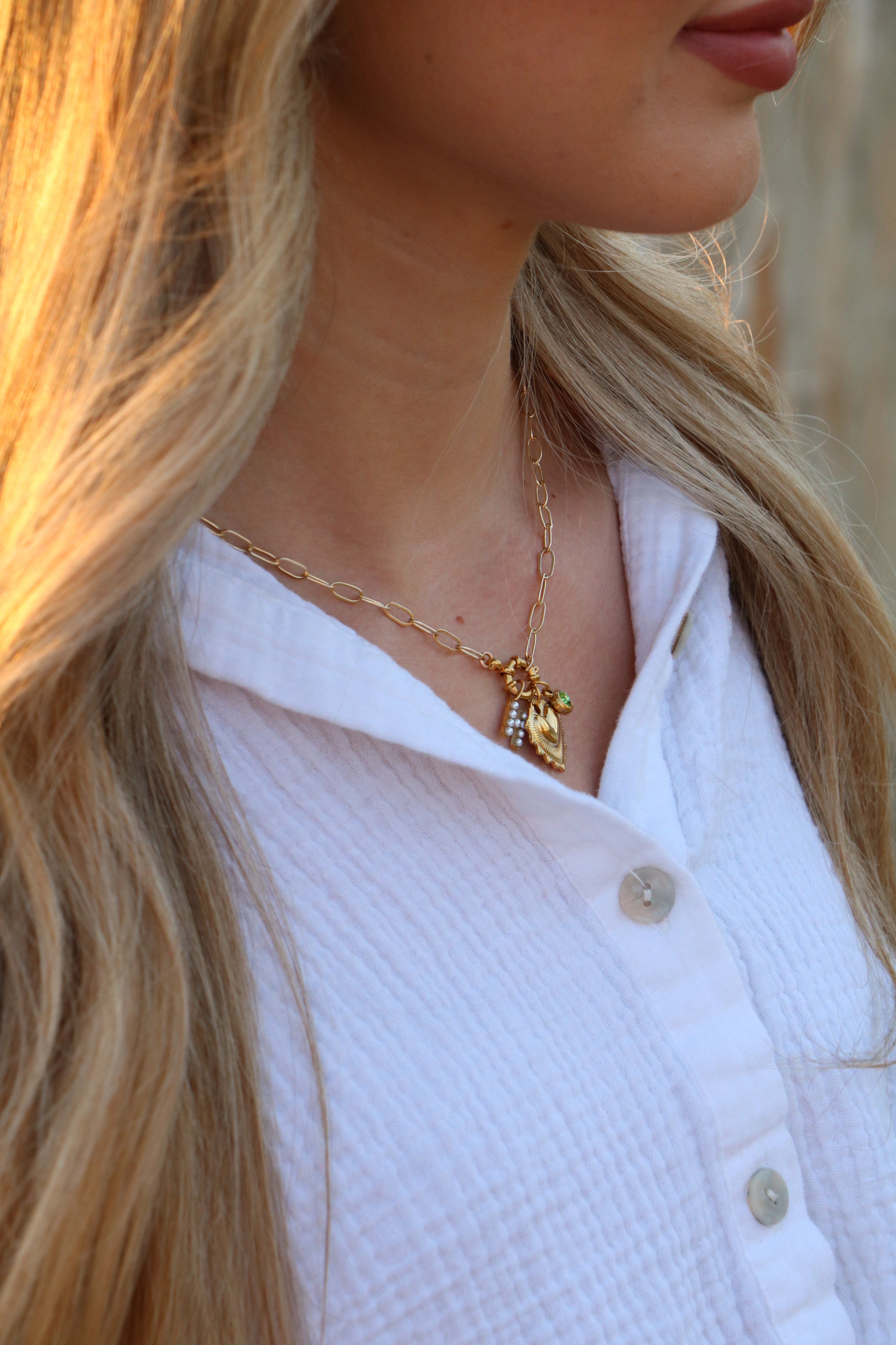 Chain and charms are 14K gold plated - all materials are tarnish free and waterproof!