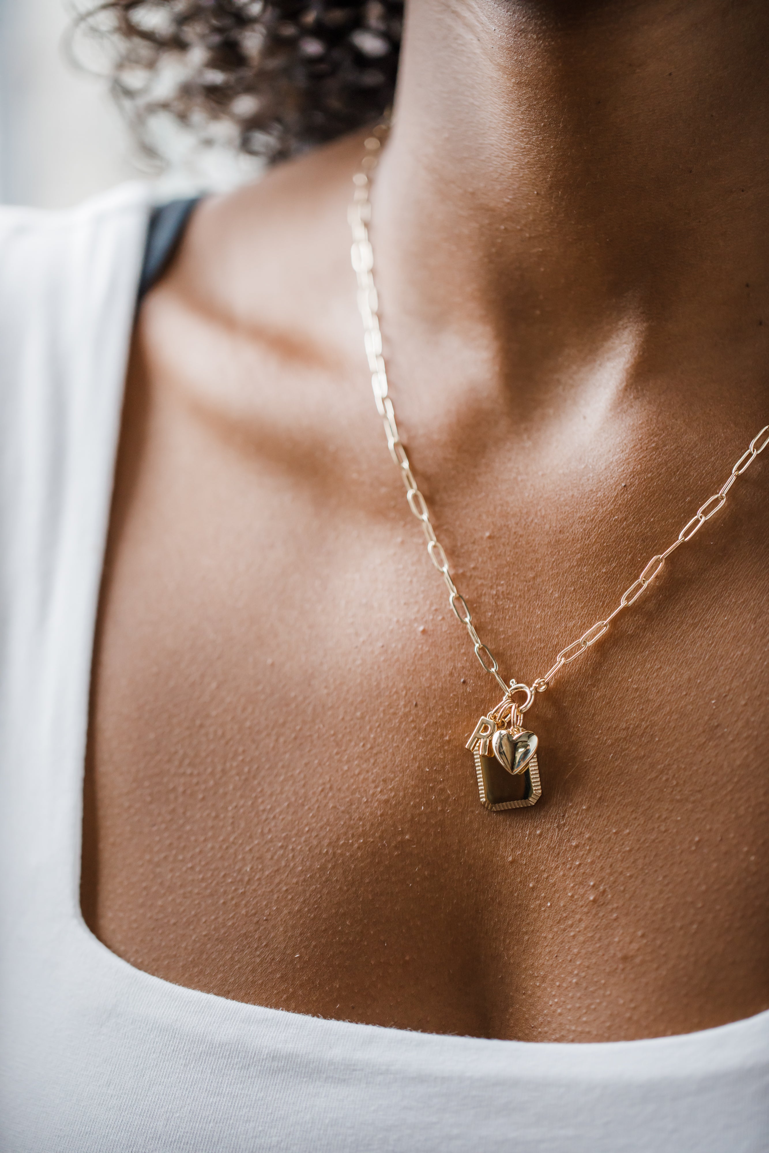 A personalized necklace made just for you. Chose the charms of your choice! Choose between two types: the front clasp style which allows adding and removing charms at any time, the standard style uses charms permanently stationed on the chain. You can also purchase without any charms, to add your own!