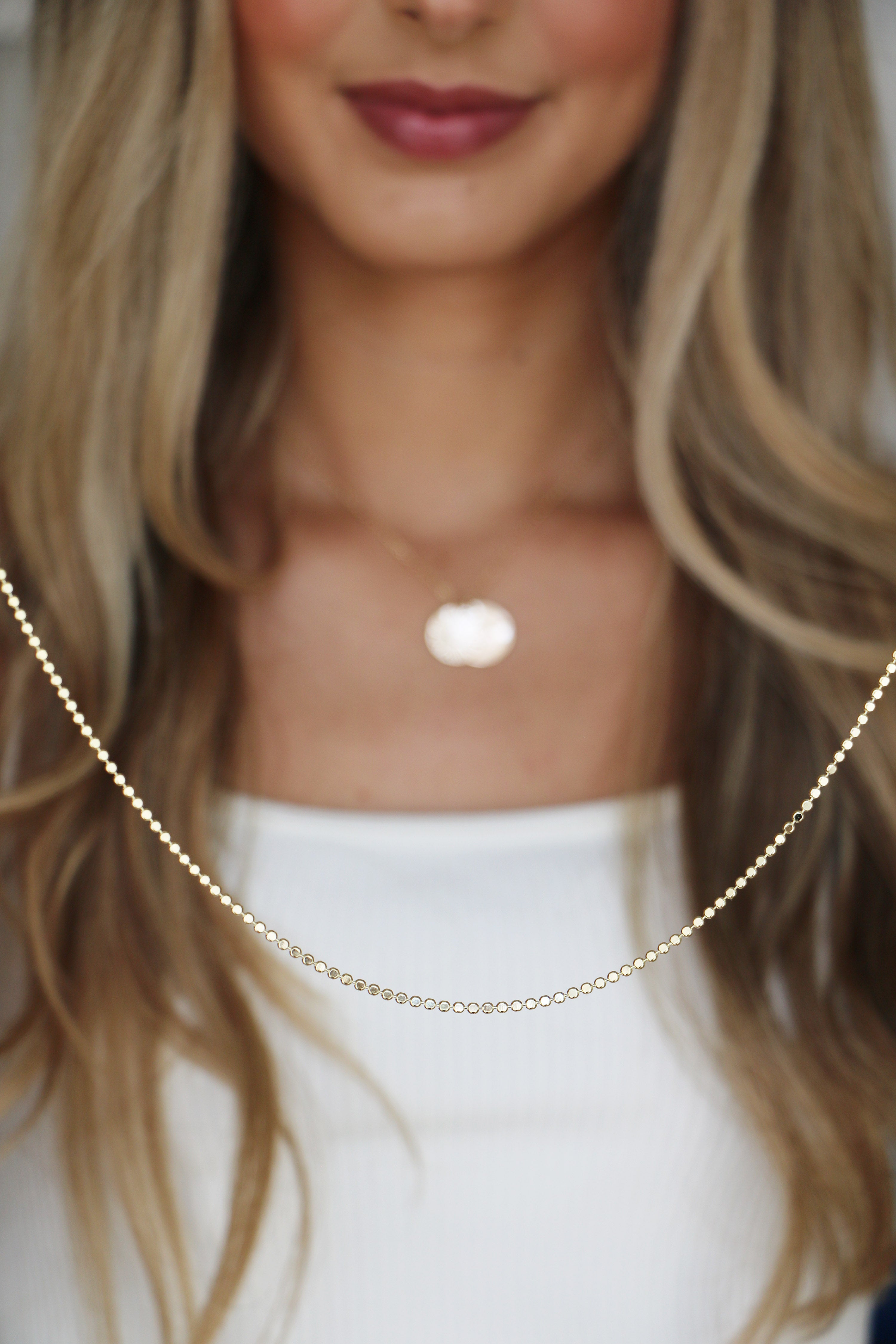 Our slim dottie chain is so smooth and sparkles effortlessly. It looks great by itself or layered with your favorite chains. Its dainty and lightweight but creates a statement all its own. Each link is smooth and rounded to create a beautiful sleek shine.