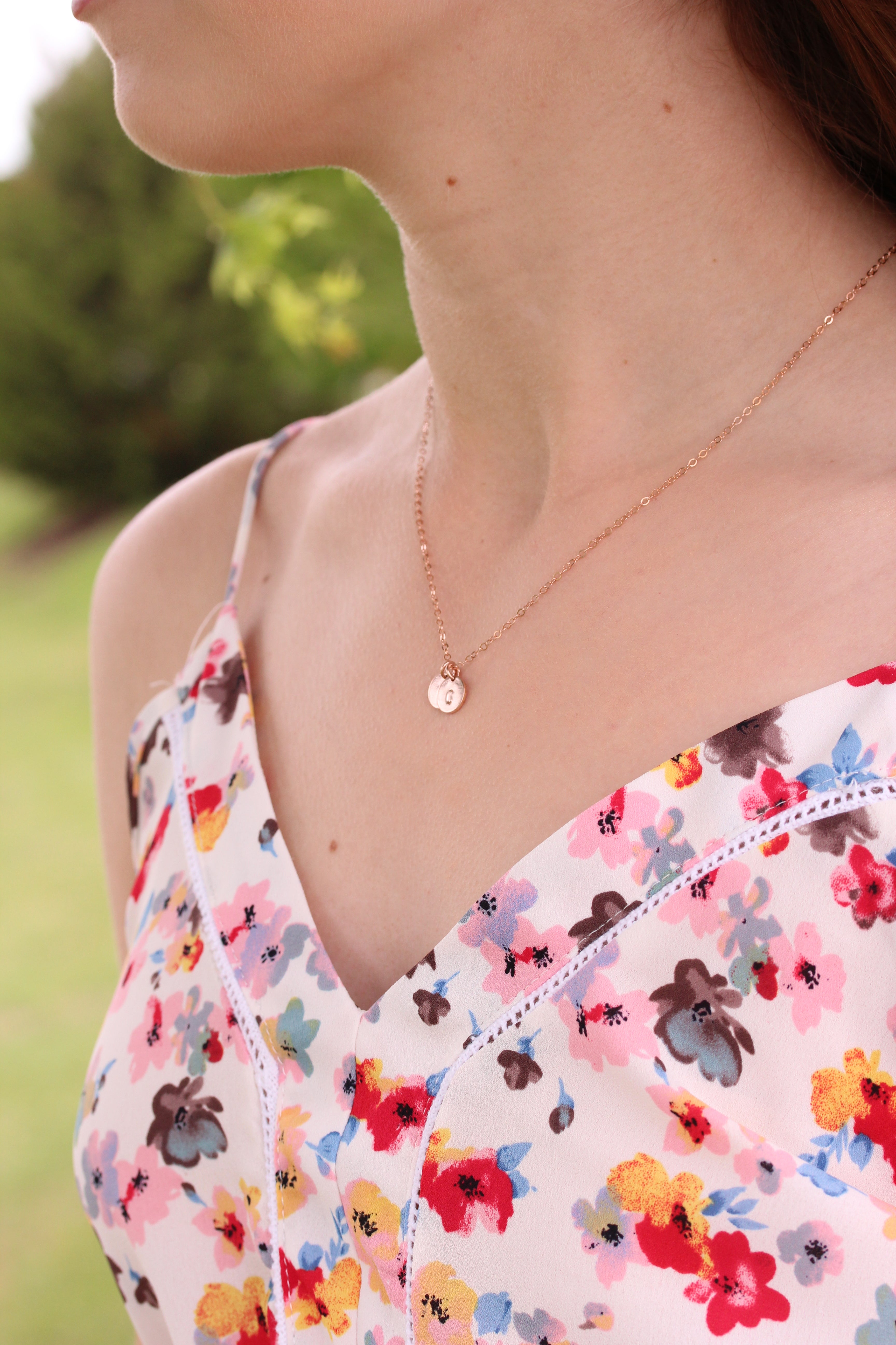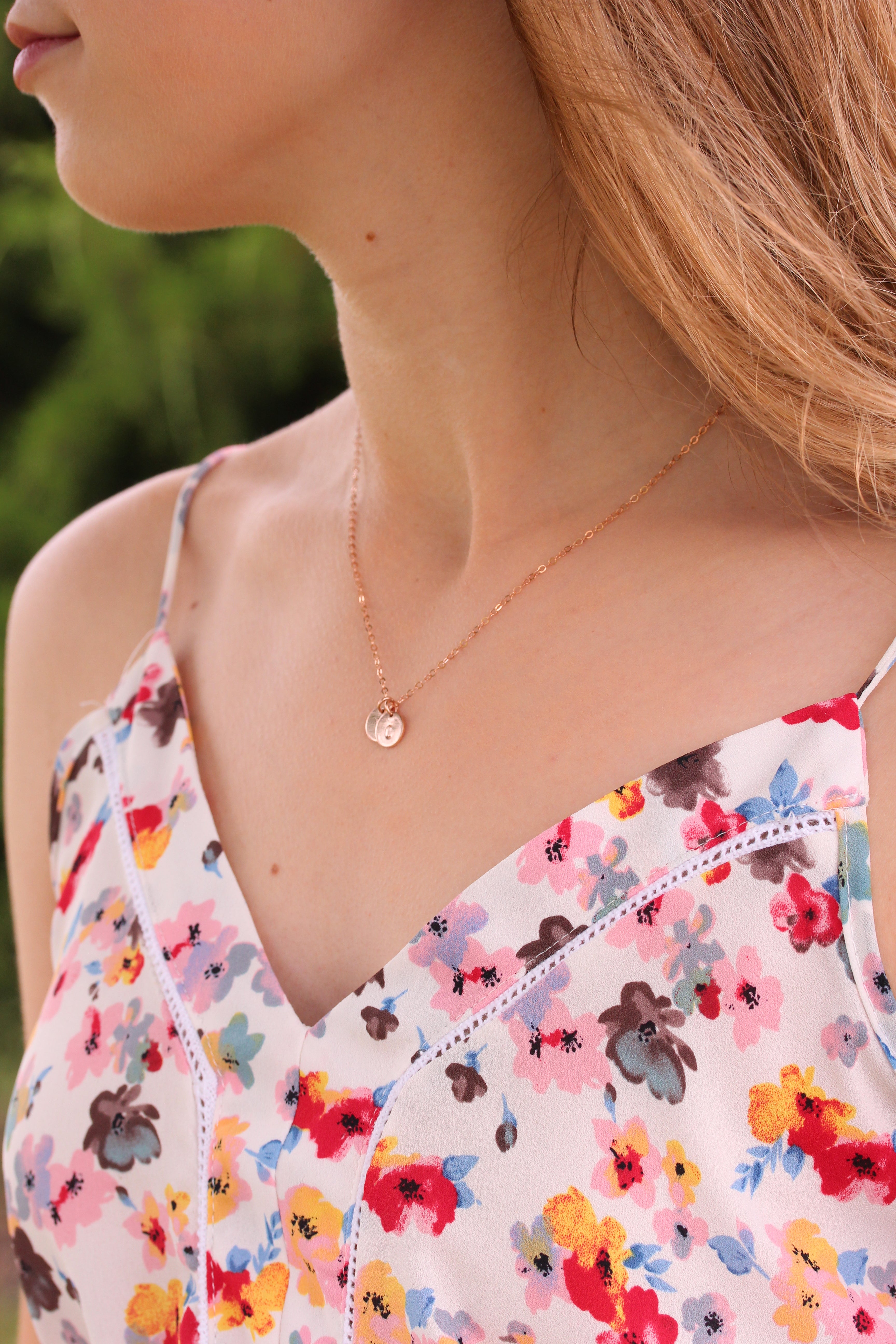 This listing features a beautiful rose gold necklace with the initial of your little ones. Whether you need one disc or 10 discs the necklace is perfect. This necklace uses all 14K rose gold filled materials. Each disc is just big enough for a single initial. Your choice of 14K rose gold filled chain is included.