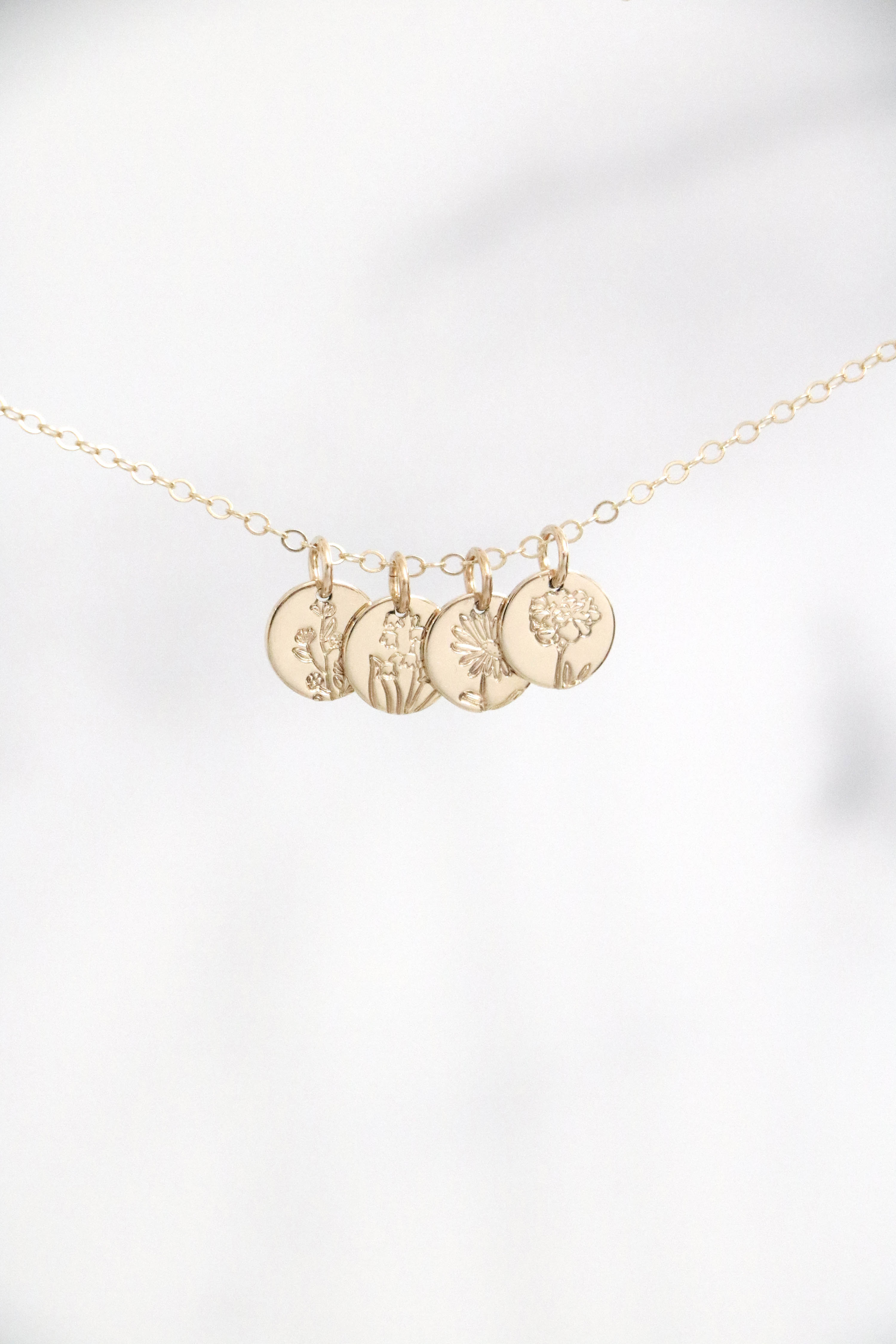 Do you know your birthflower? Our flower charms are hand stamped in fine sterling silver or gold filled metal. Each flower is a work of art, hand-drawn to highlight the most beautiful qualities of the flower. Hung from a delicate cable chain as shown. Each necklace includes a sheer paper insert with the meaning of their birthflower!