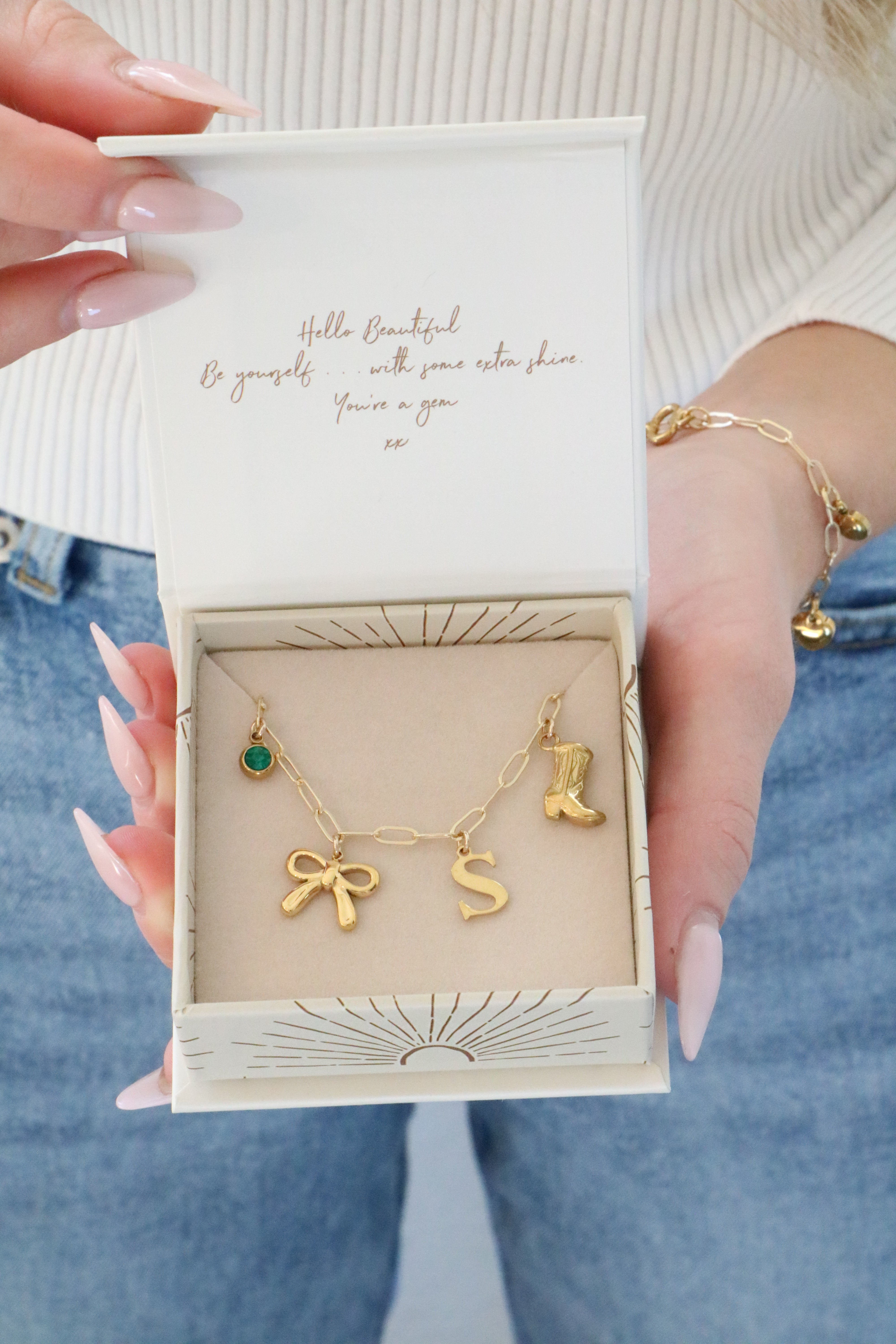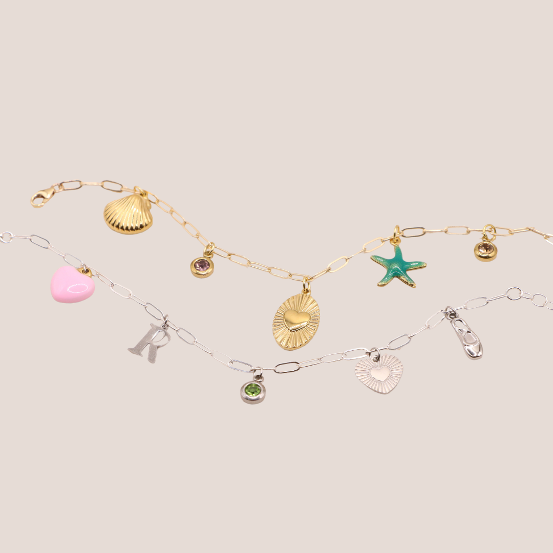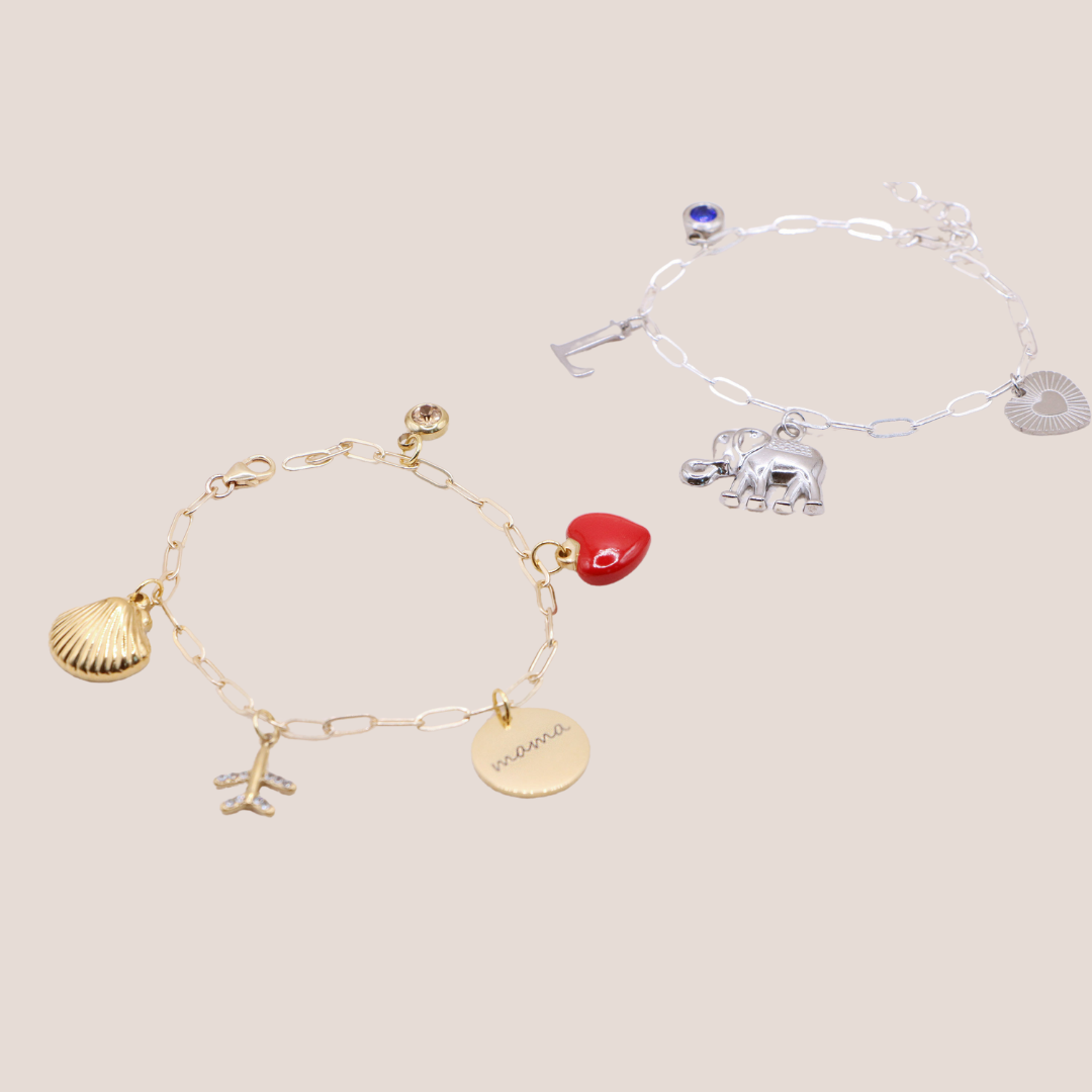 Our on-trend charm bracelets are designed with a 14k gold-filled or sterling silver paperclip chain. Bracelet is adorned with hypoallergenic stainless steel charms, creating a durable piece that can withstand everyday wear! Our high quality materials are waterproof, tarnish-resistant and made to last. Add up to 6 of your favorite charms to your bracelet.
