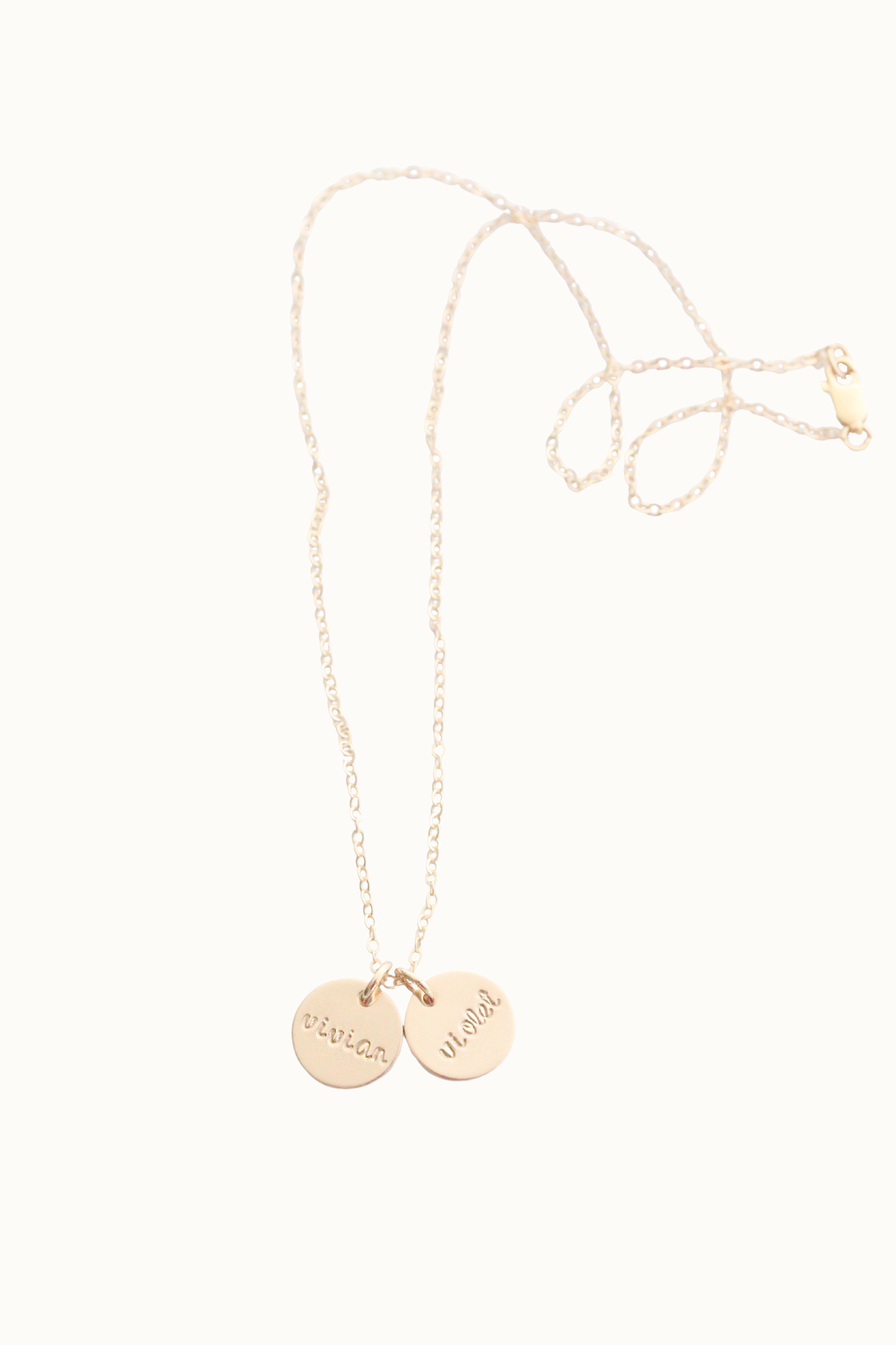 A classic that is perfect for everyday wear. Keep the names of your little one's close to your heart with our hand-pressed name necklace. Each letter is stamped into the metal one at a time, a truly unique keepsake.
