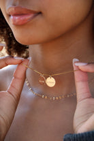 Available in sterling silver, 14K gold filled, or solid 10K gold. Disc charm measures approximately 13mm.