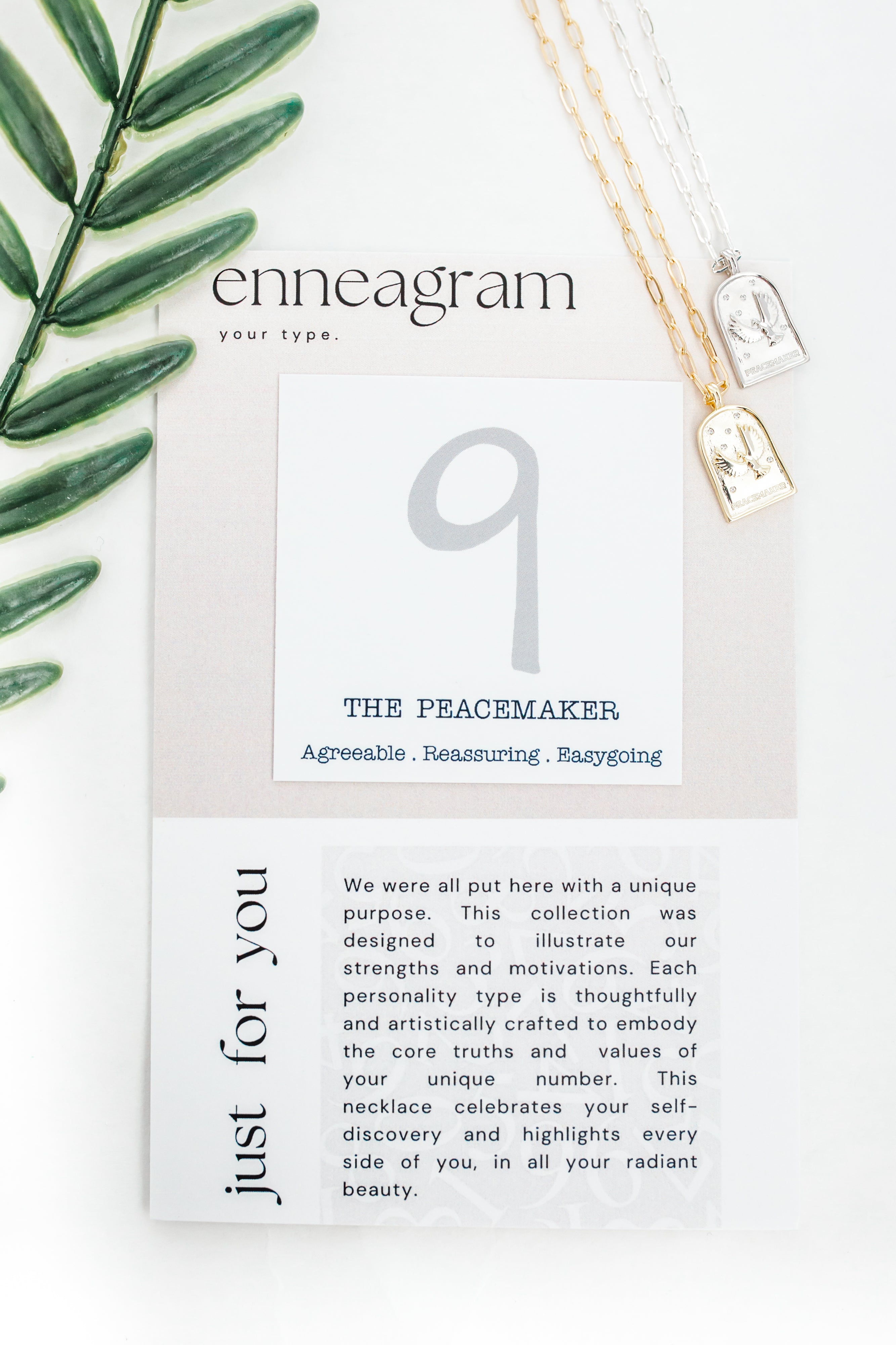 A unique hand-drawn collection designed to highlight your strengths and natural gifts. Type 9, known as the Peacemaker, is humble, empathetic, and supportive. Your presence is a source of peace and you welcome everyone into a space of acceptance and trust. You are creative, optimistic and easily heal conflicts. You focus on the bright side of life and work to maintain peace of mind and harmony. You make us all feel seen and heard.