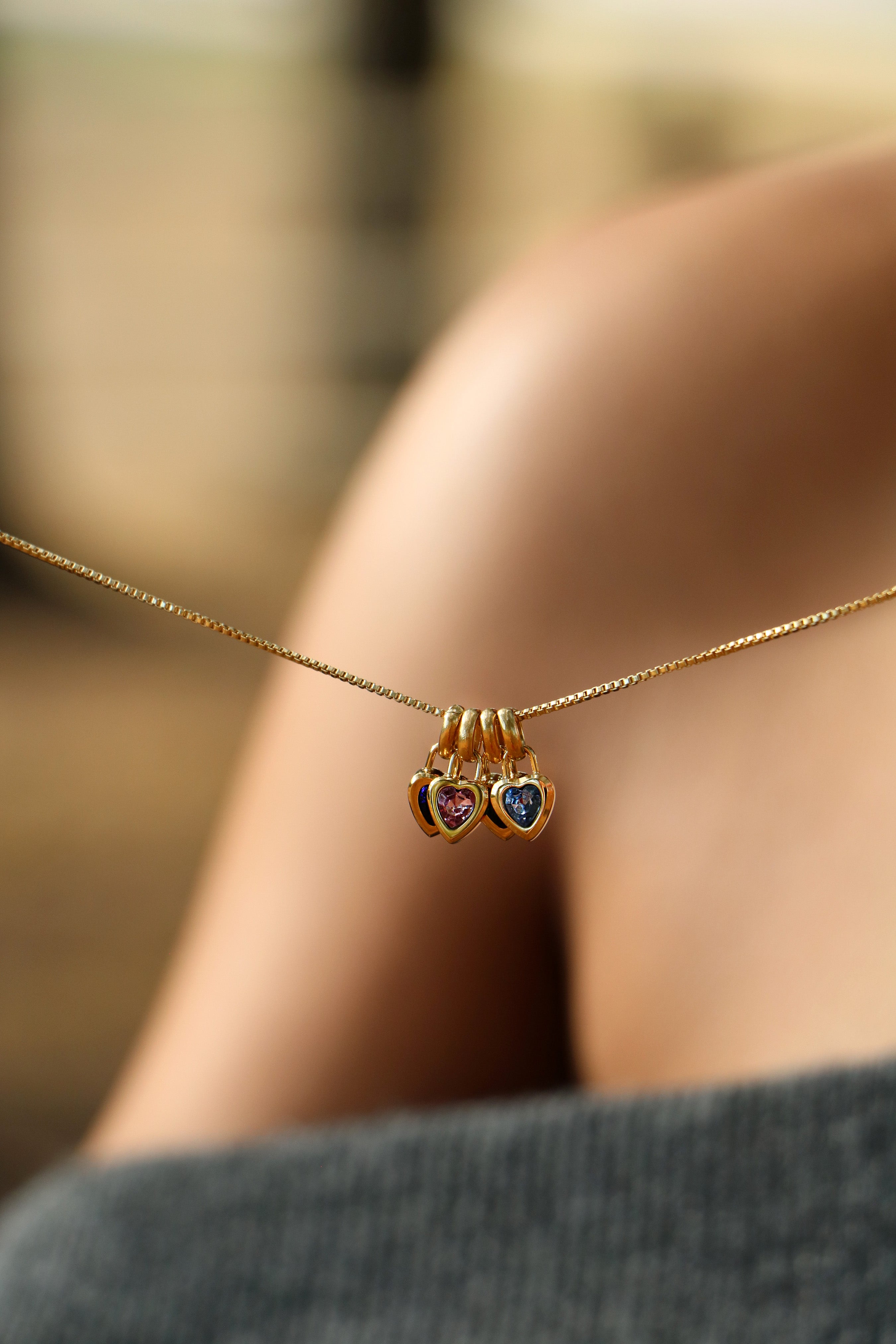 A classic birthstone set in a love lock charm and attached to our favorite chain. This necklace was inspired by the "love lock bridges" in France. The heart-shaped lock has long been a symbolic reminder of everlasting love. String one birthstone or several to tell your story and keep your loved ones close.