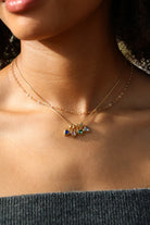 Necklace is tarnish resistant and safe for everday wear. Charms are 18K gold plated stainless steel and chain is 14K gold filled.