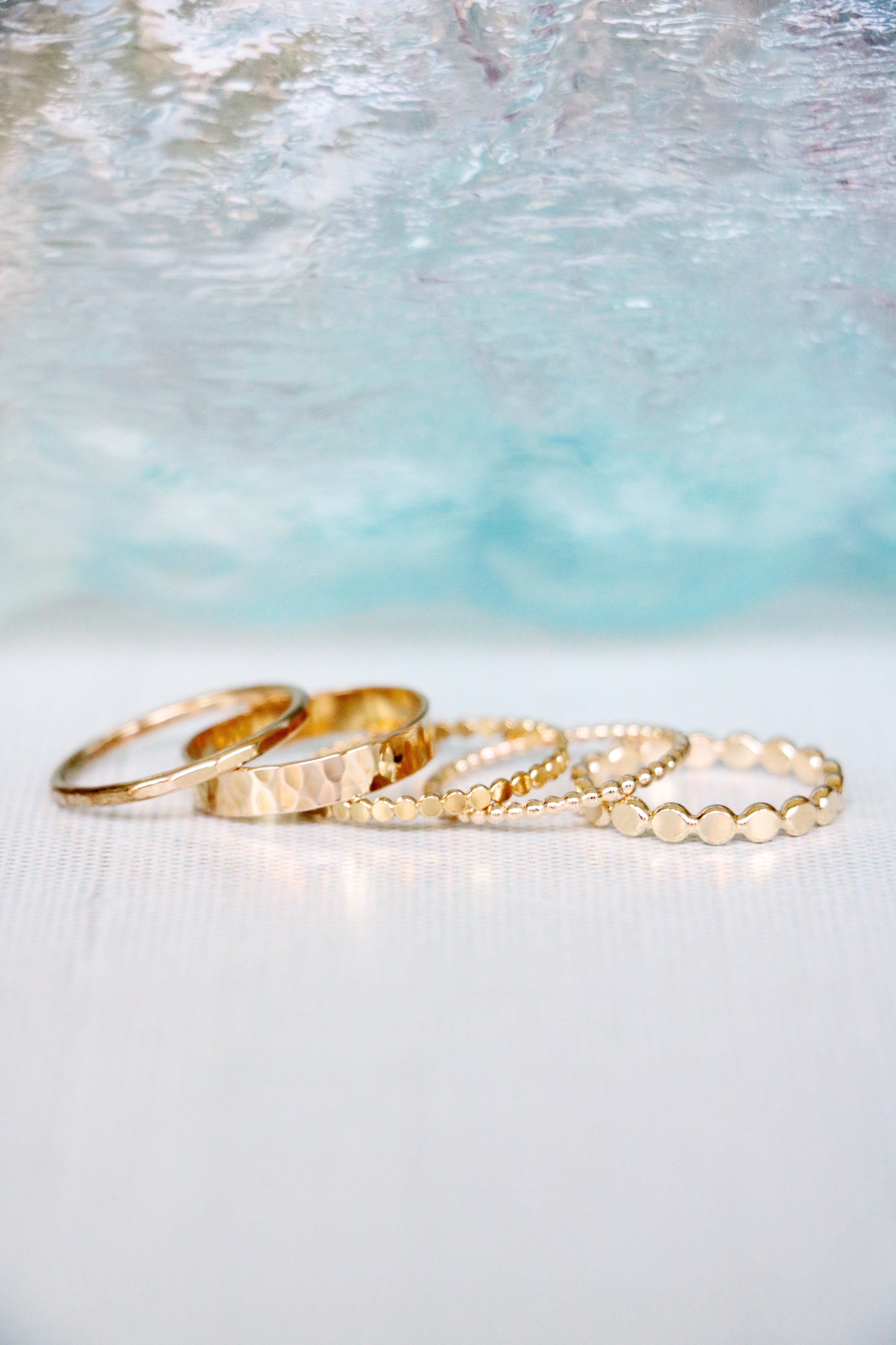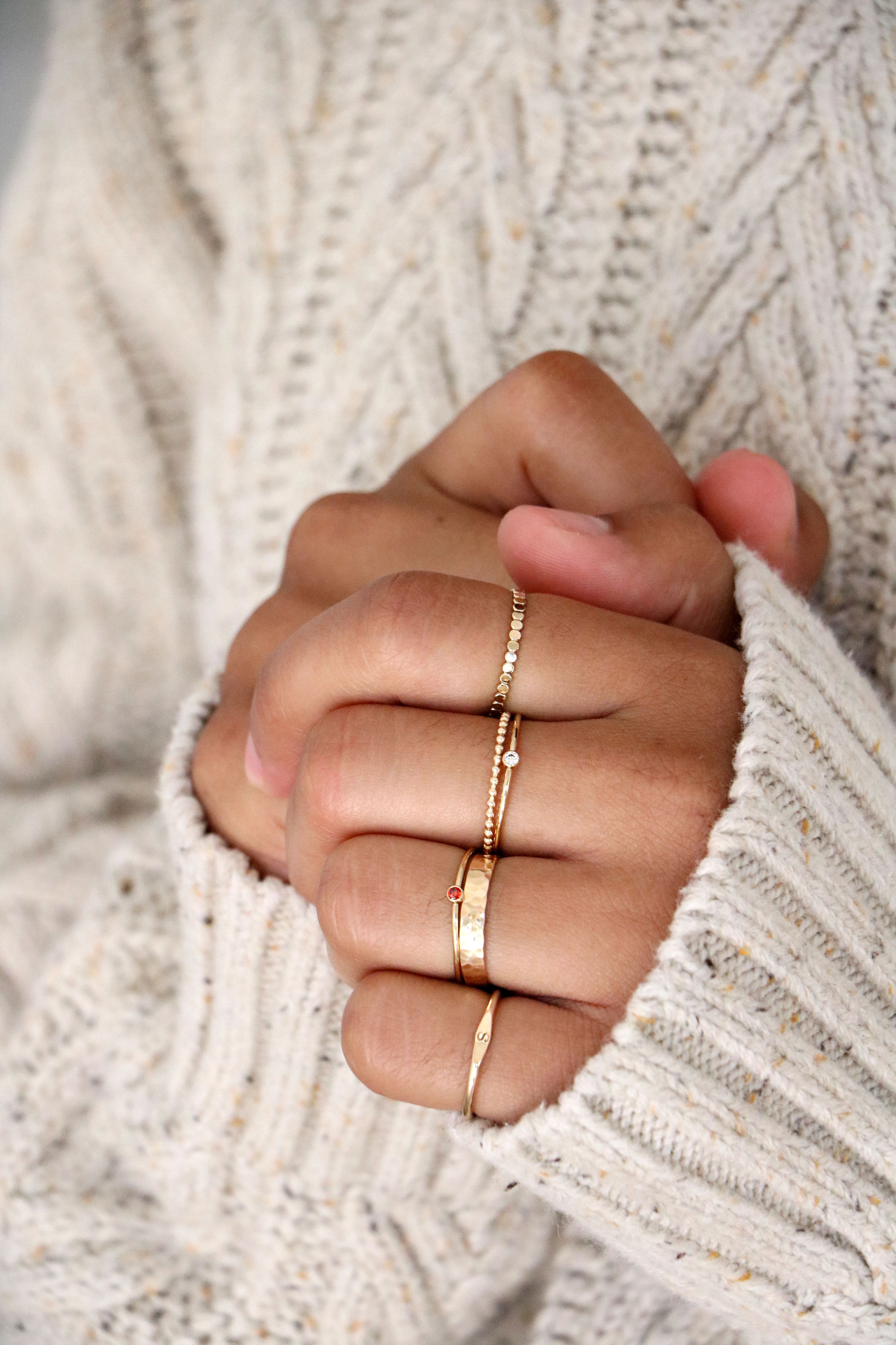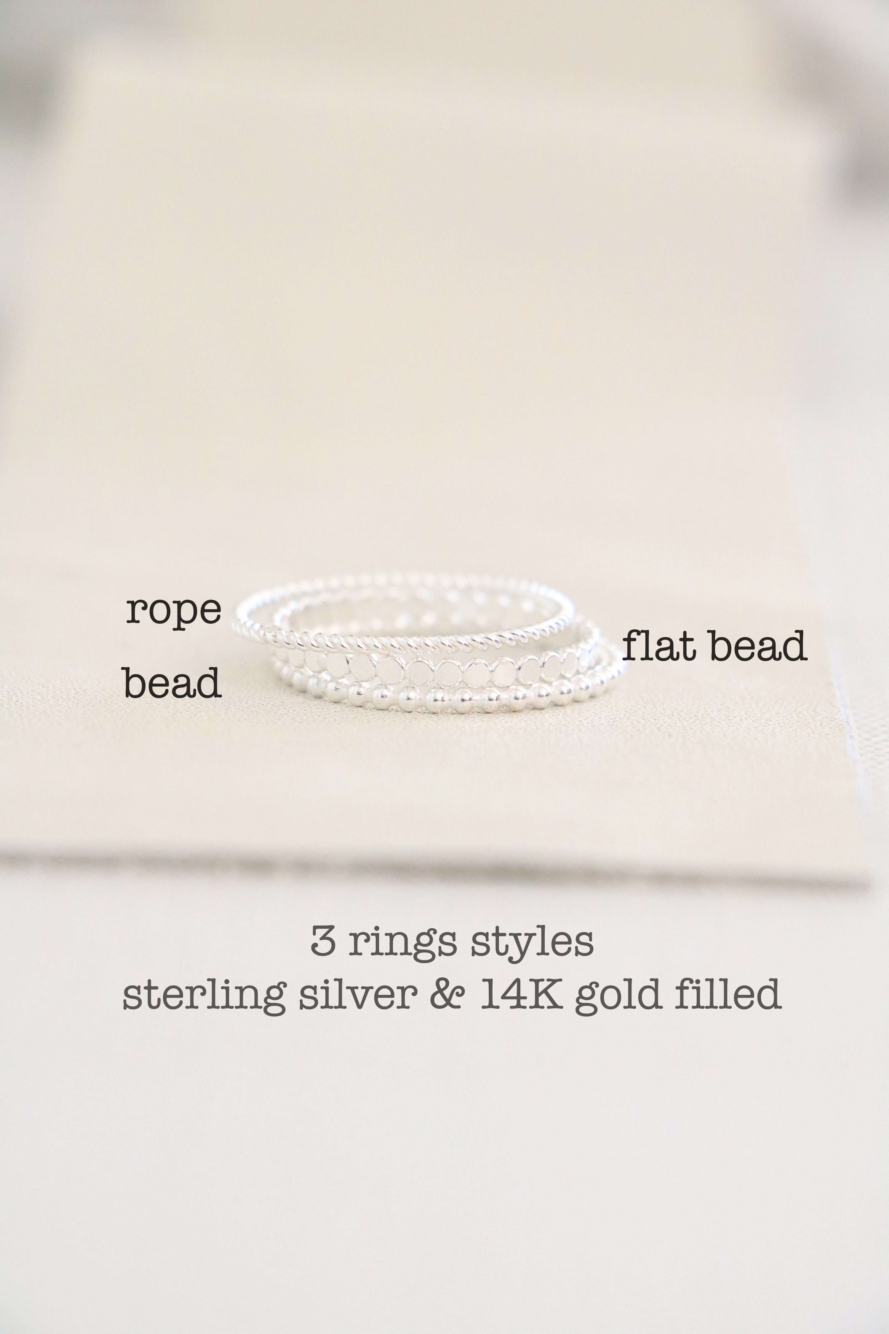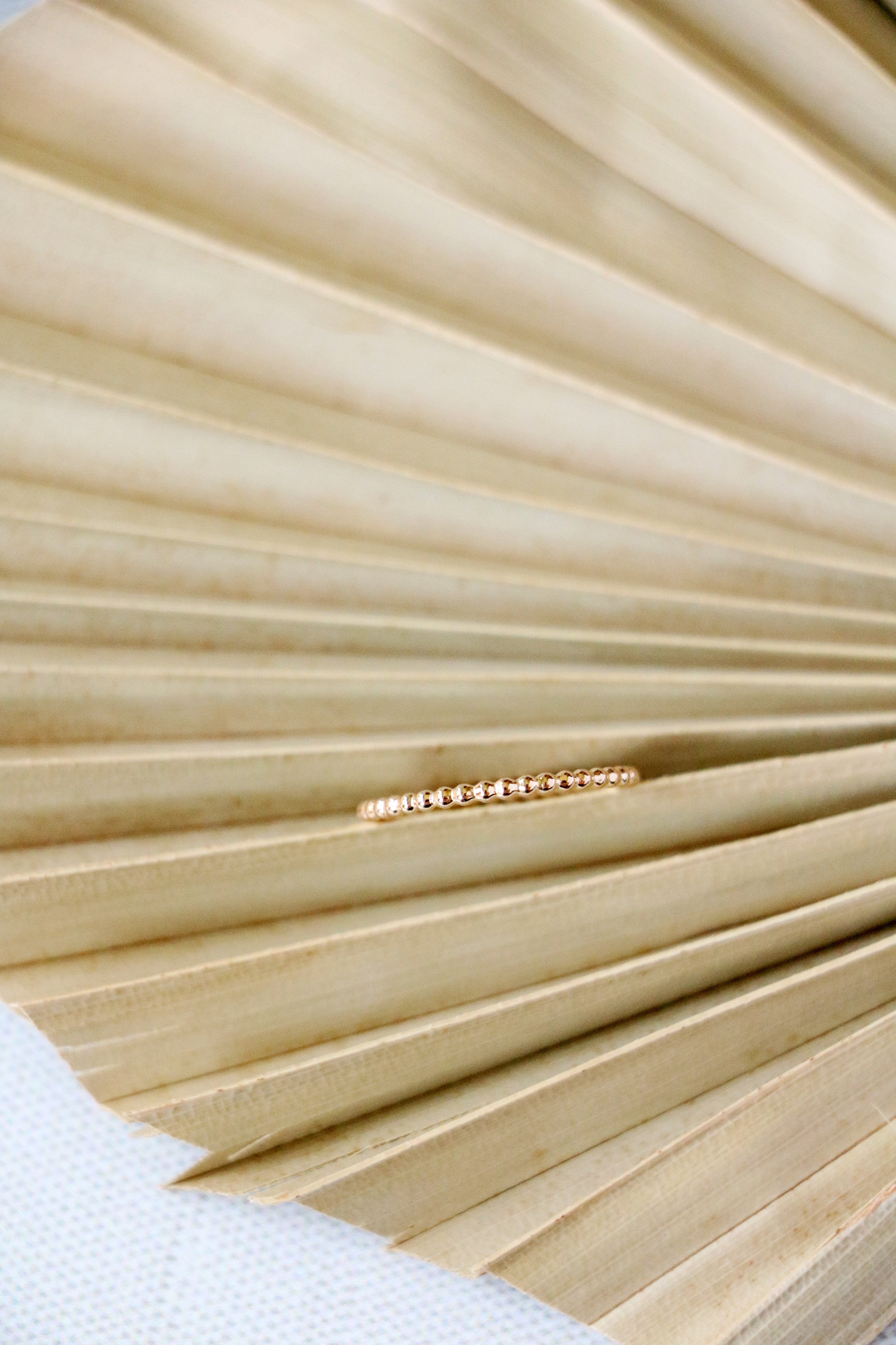 A simple accent bead ring in your choice of sterling silver or 14K yellow gold filled. These rings are perfect for stacking and mixing metals.