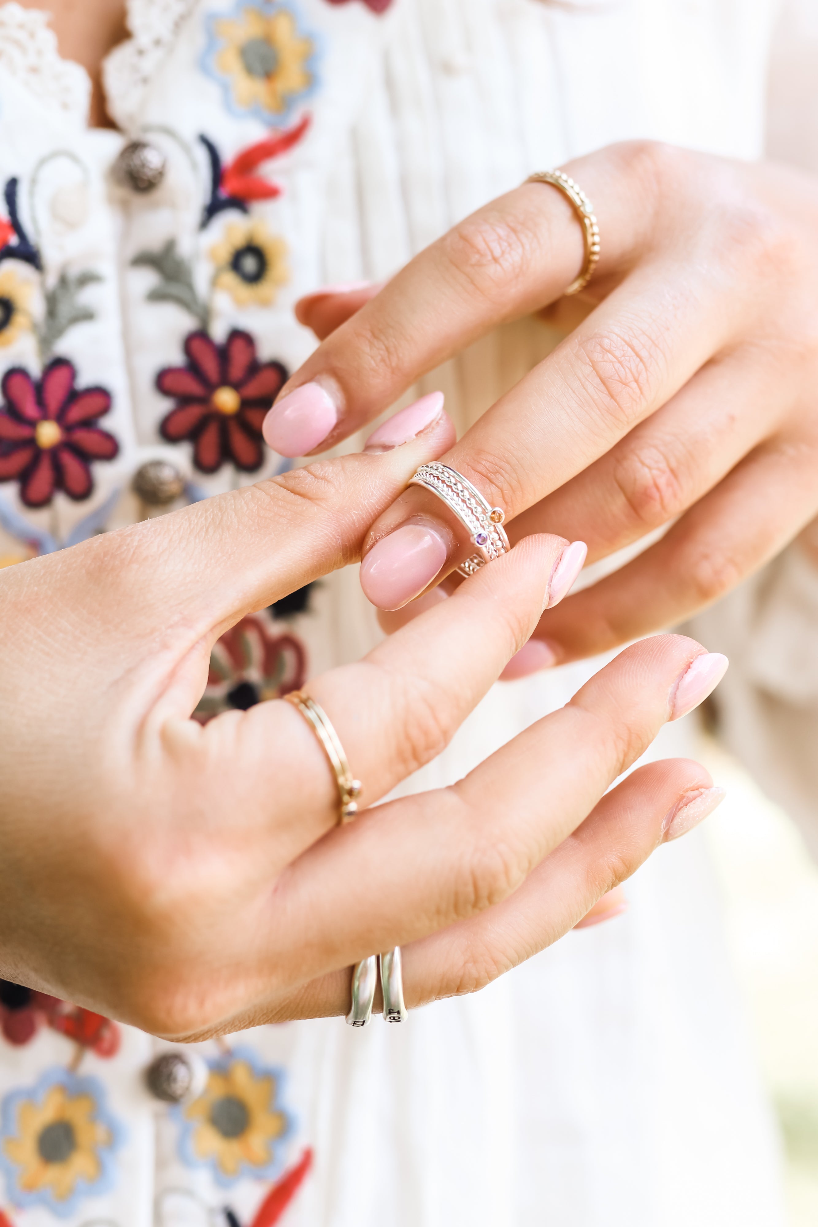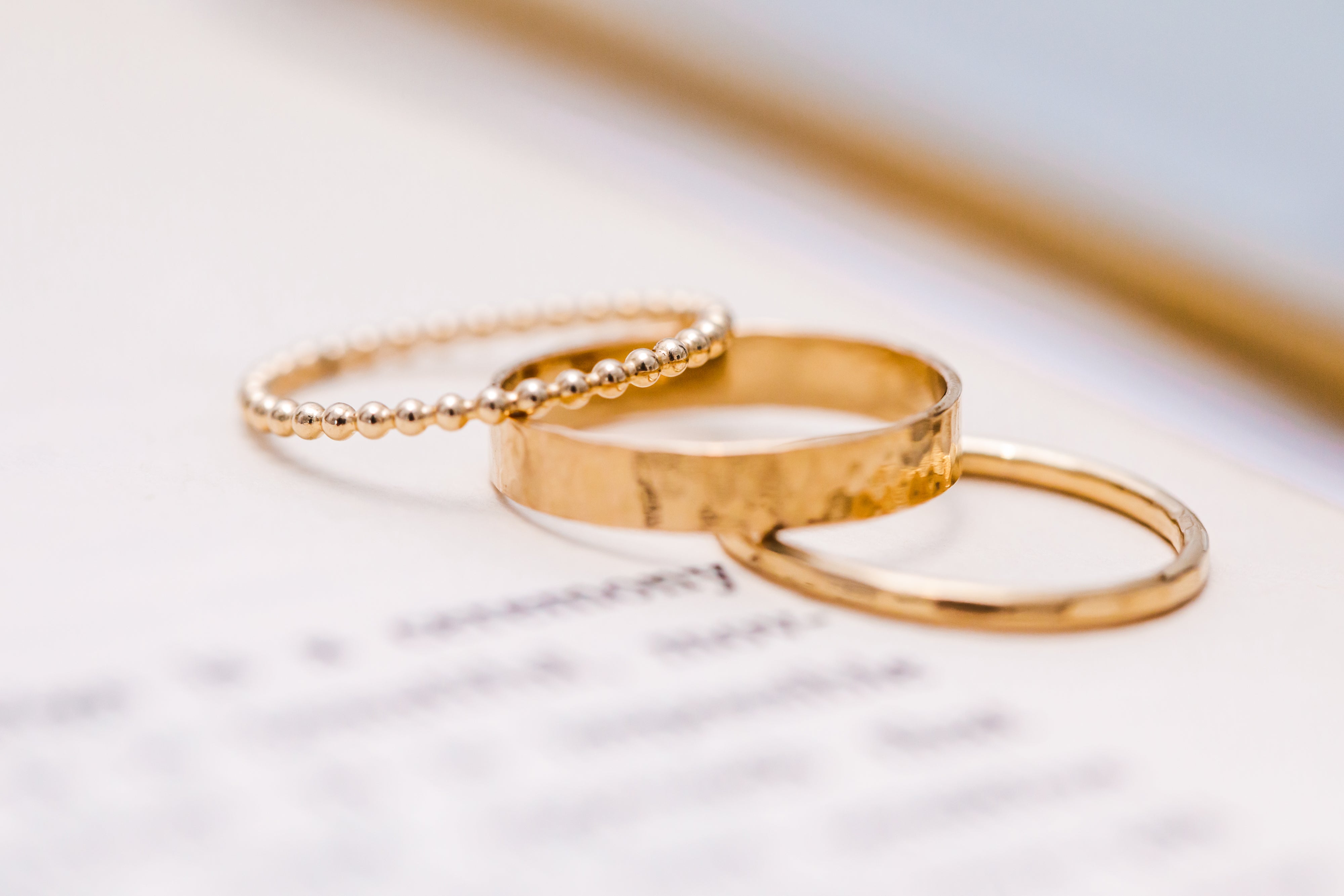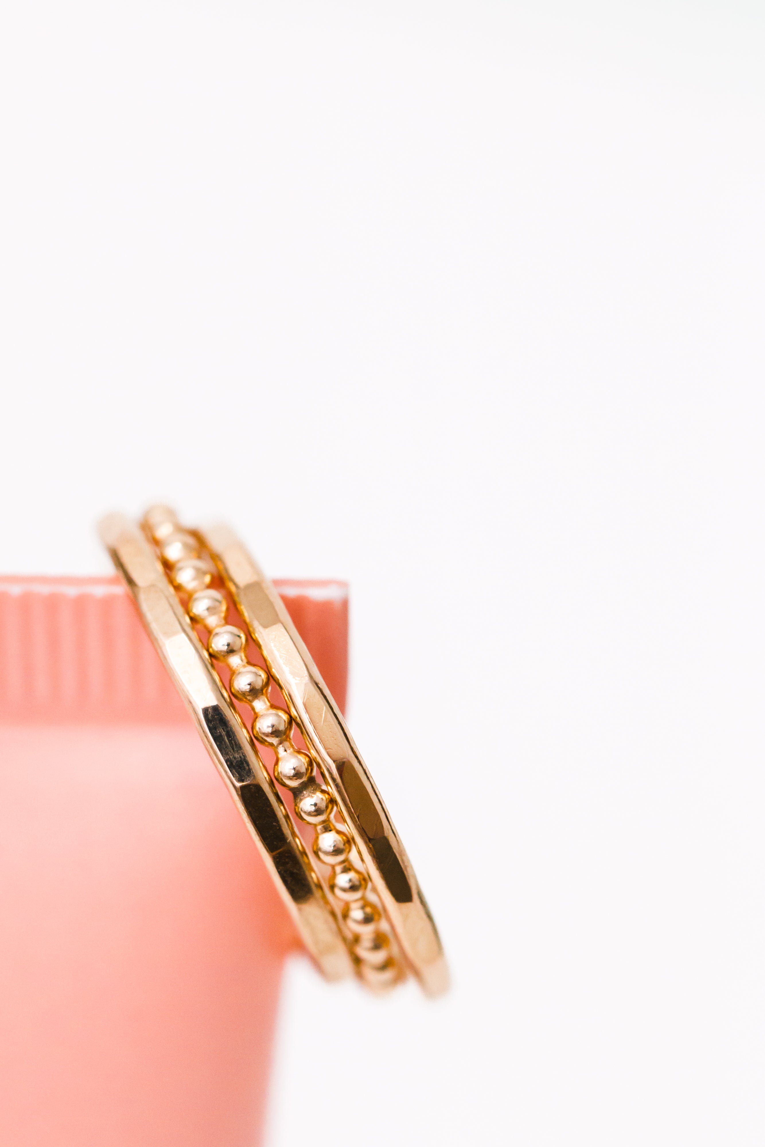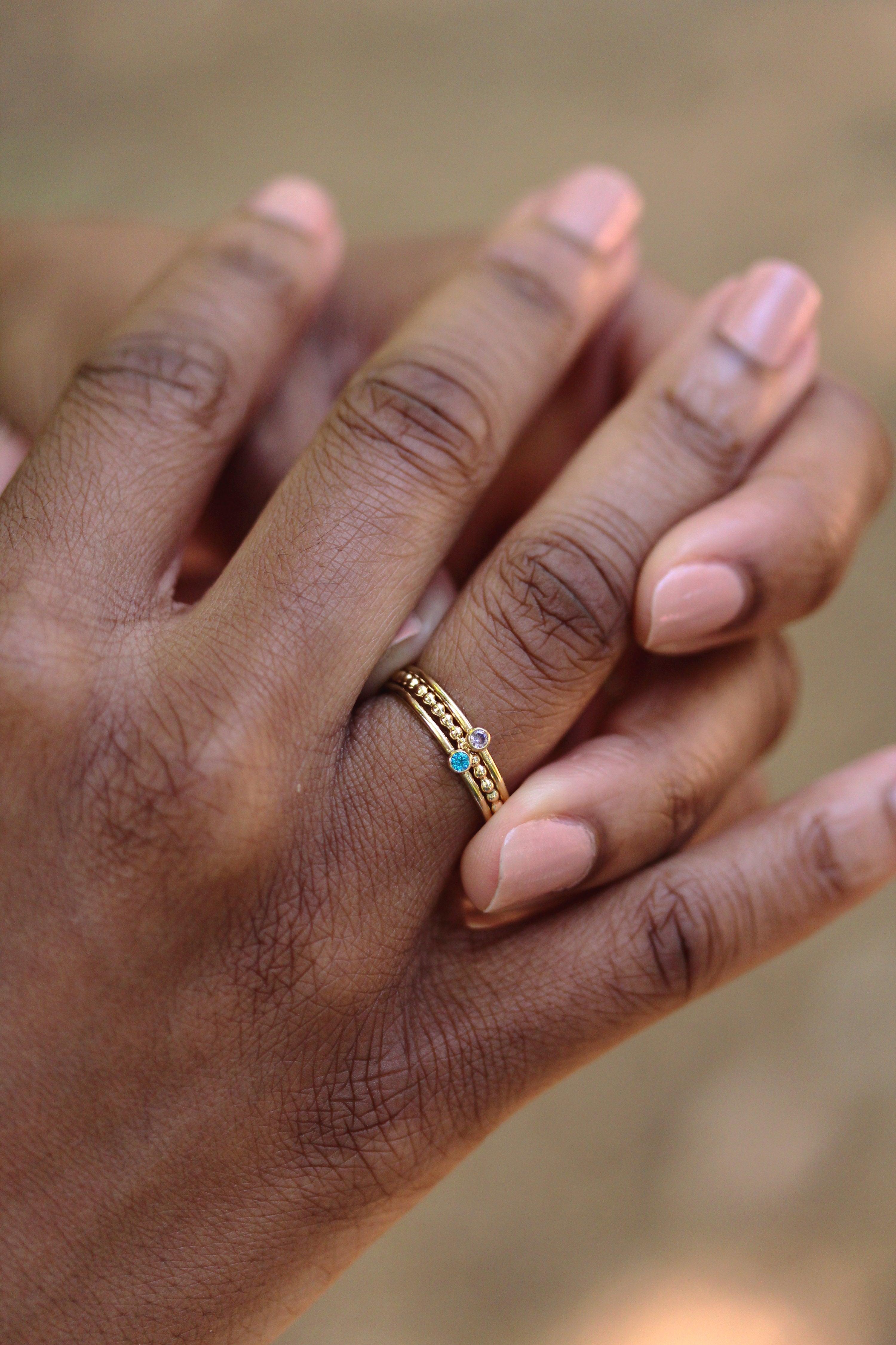 A simple accent bead ring in your choice of sterling silver or 14K yellow gold filled. These rings are perfect for stacking and mixing metals.