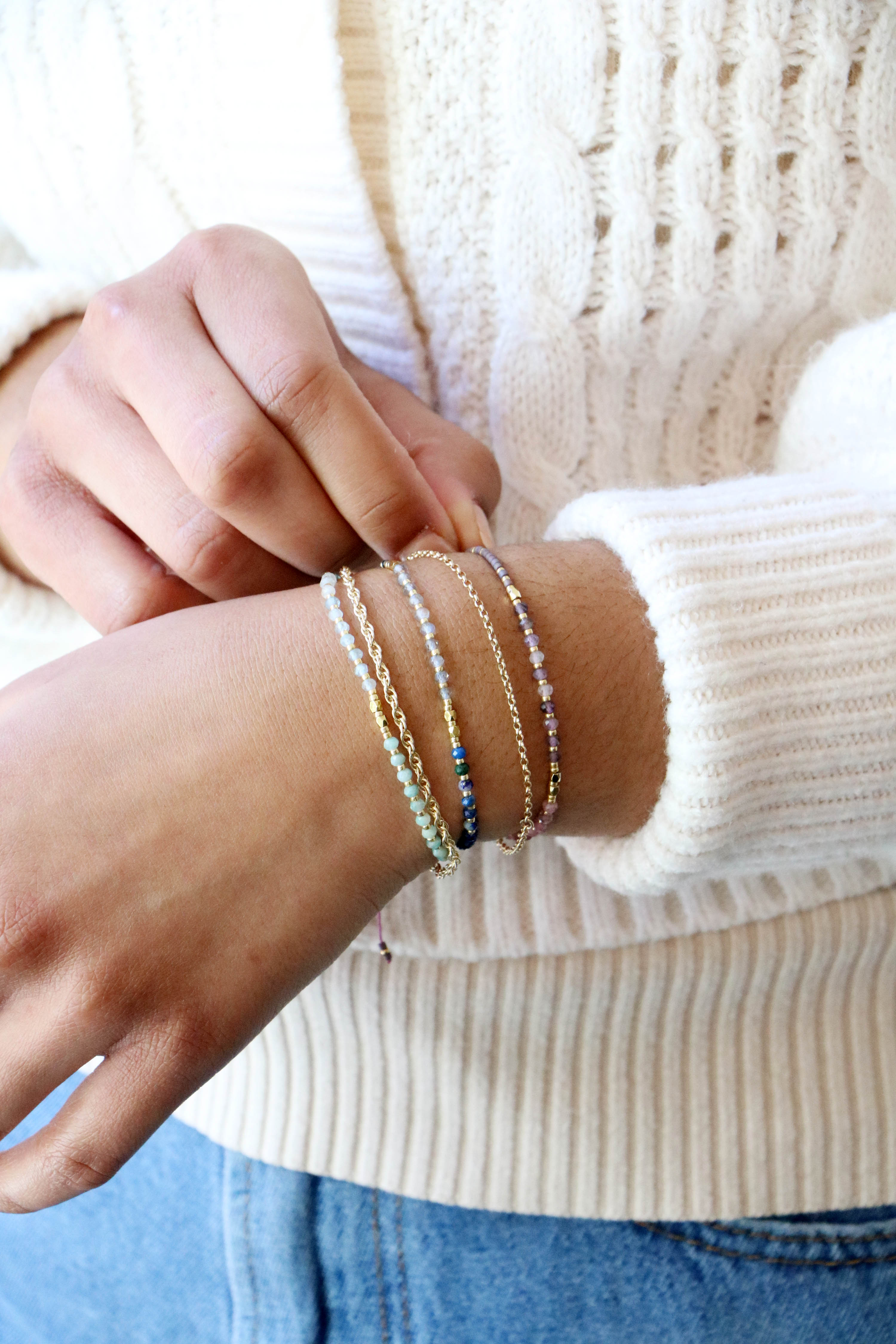 These beaded bracelets are gorgeous and perfect for stacking with your daily jewelry. Made with a combination of miyuki beads and natural gemstones, they are the perfect mix of minimalist and boho. They are available in seven brilliant colors and can be personalized with several different charm options. Wear one or several, we know you will love them all!