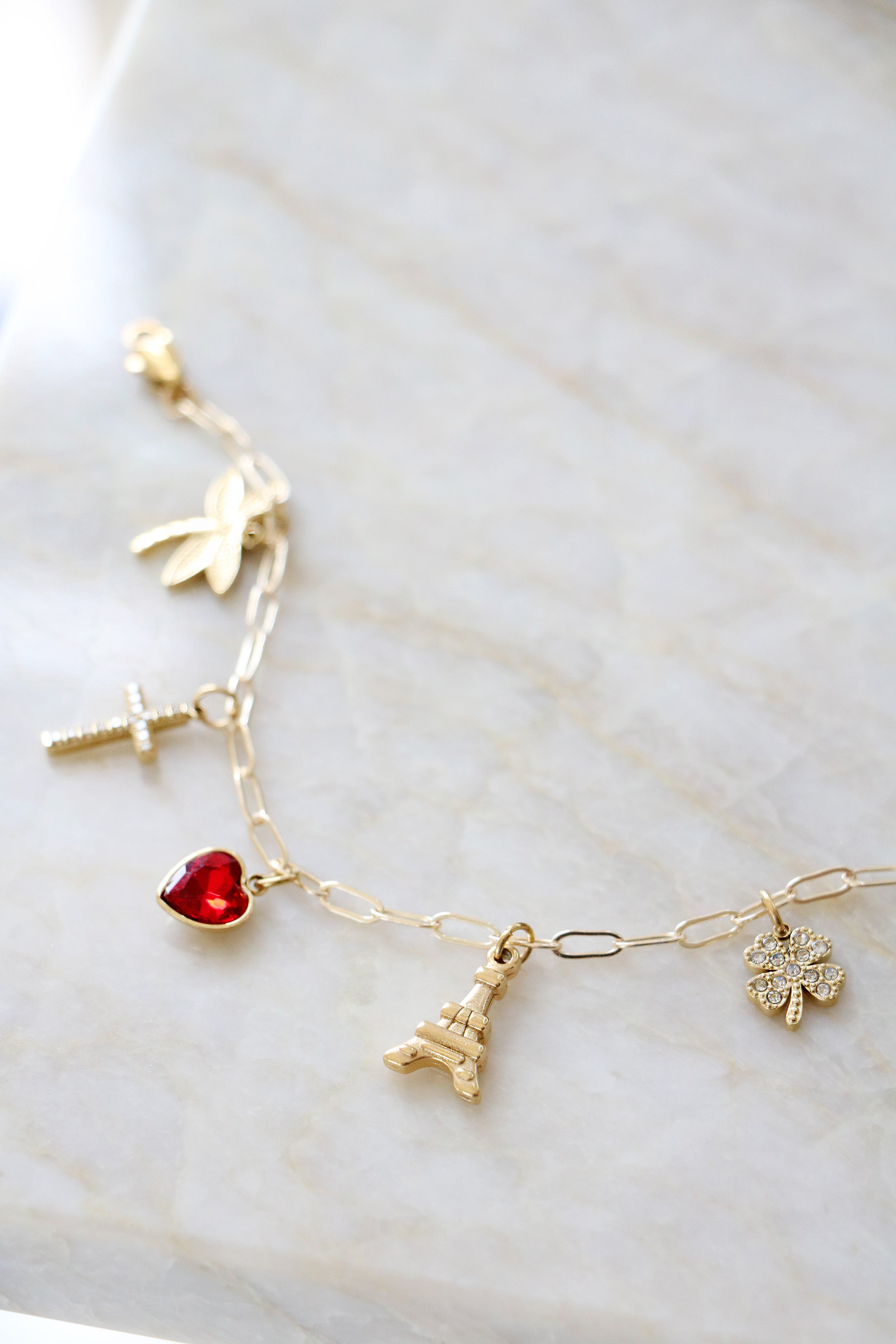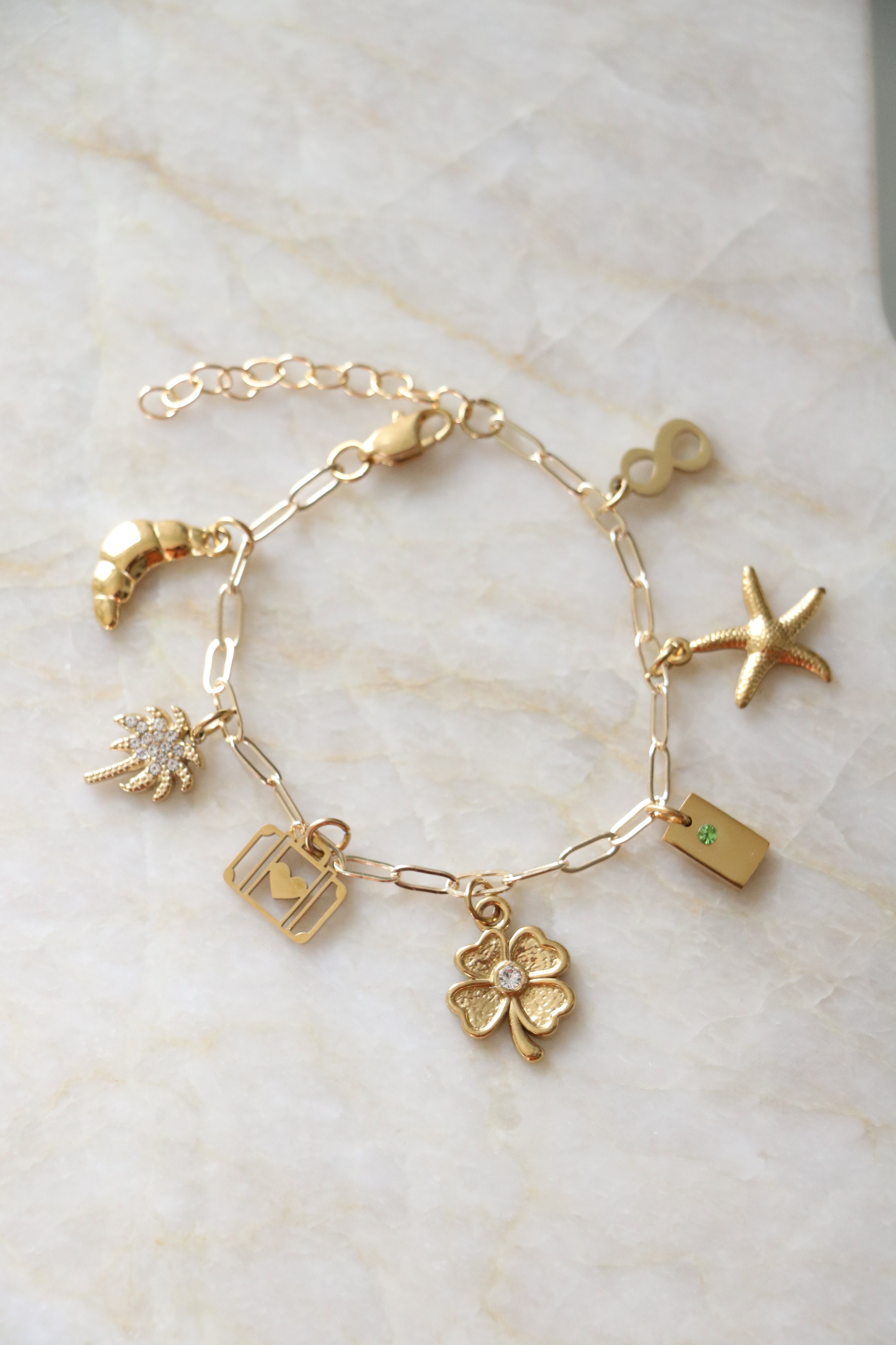 Chain and charms are 14K gold plated - all materials are tarnish free and waterproof!