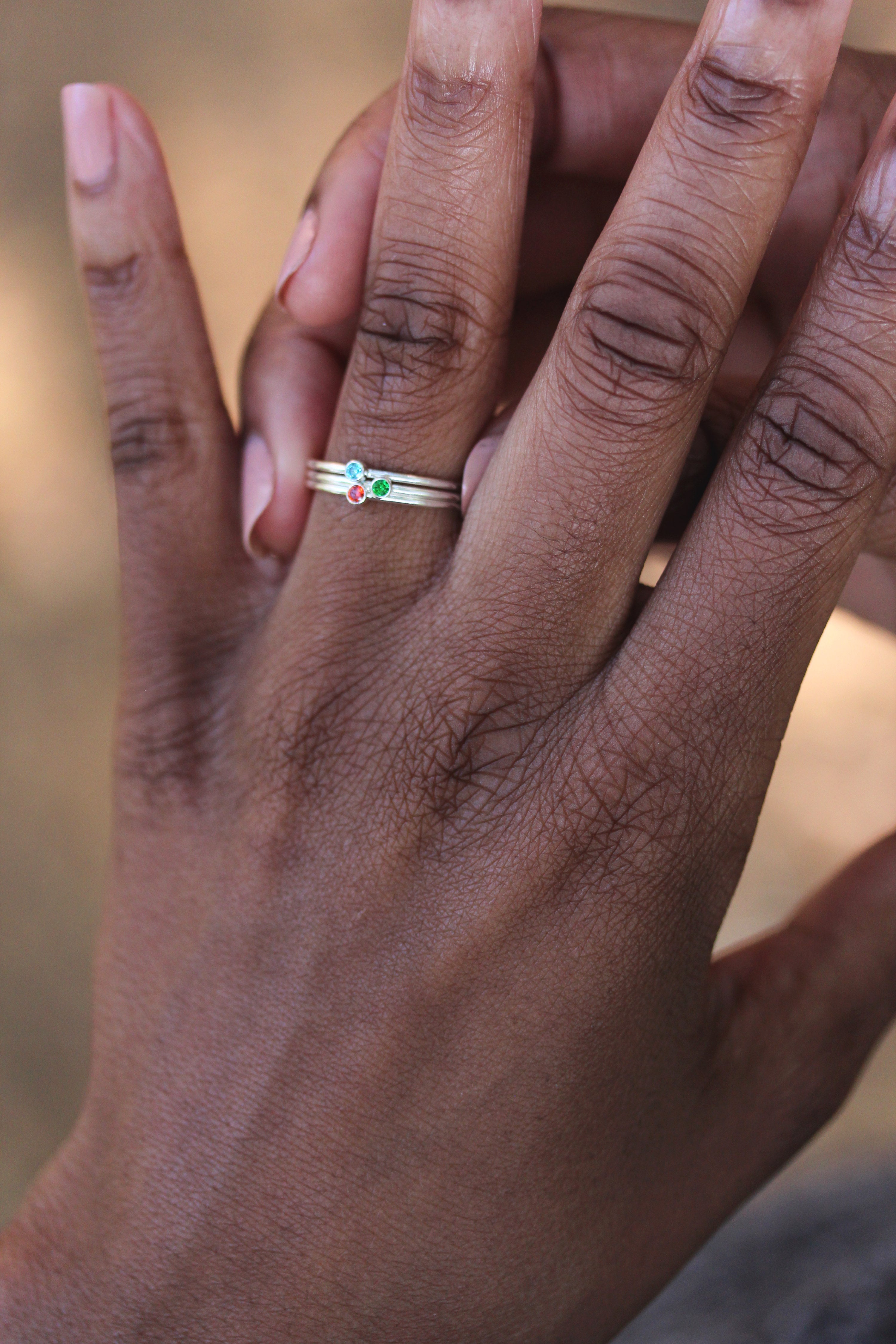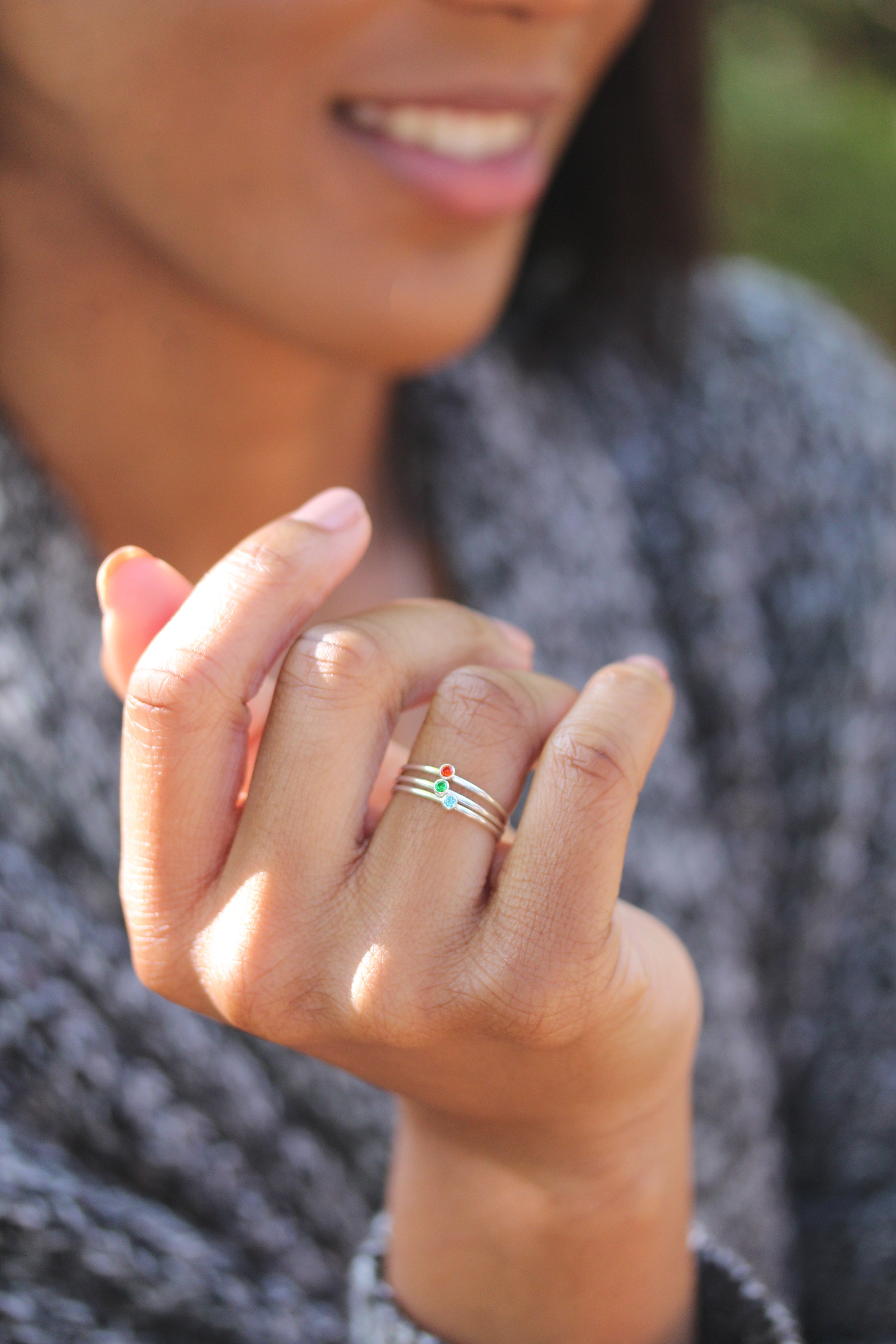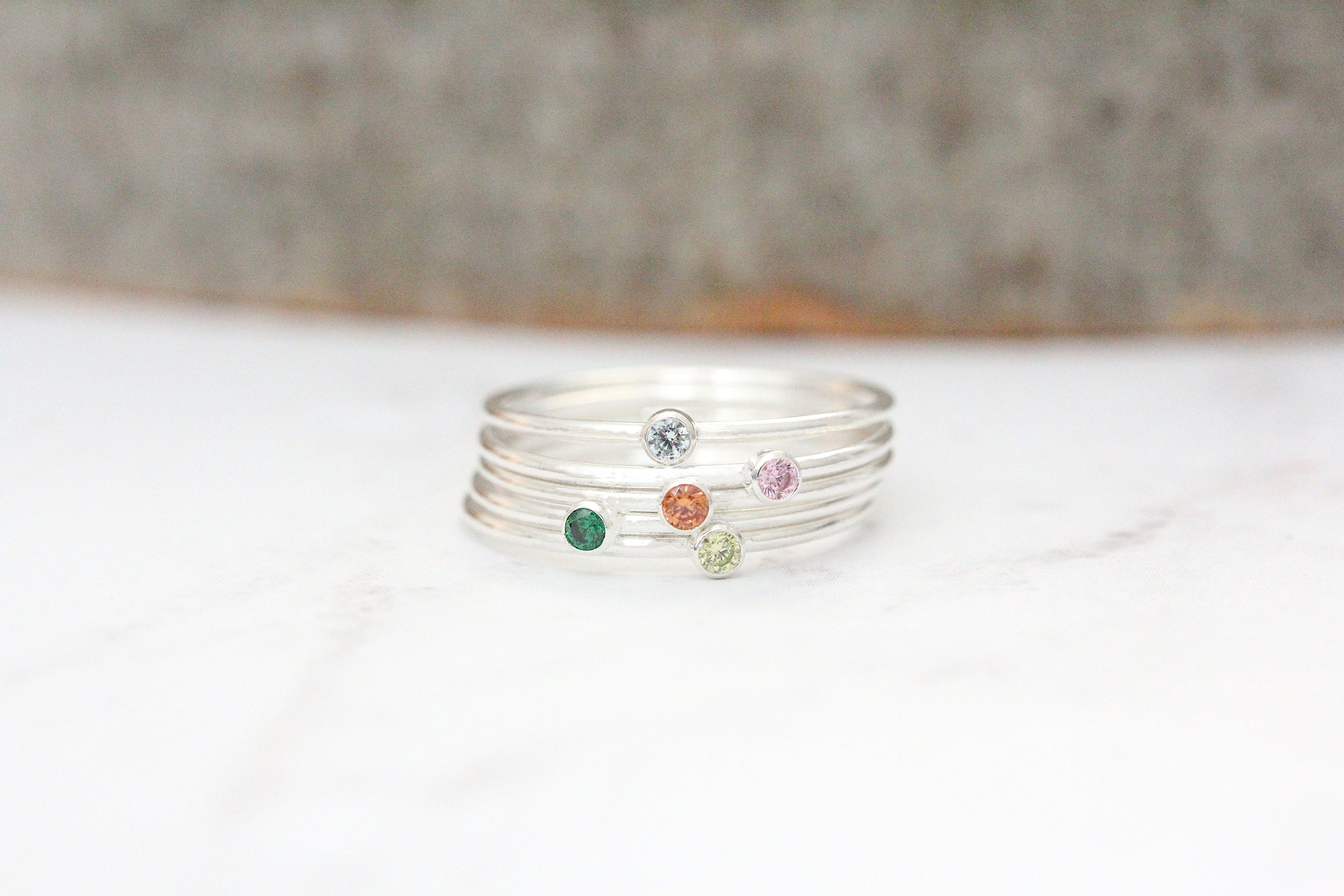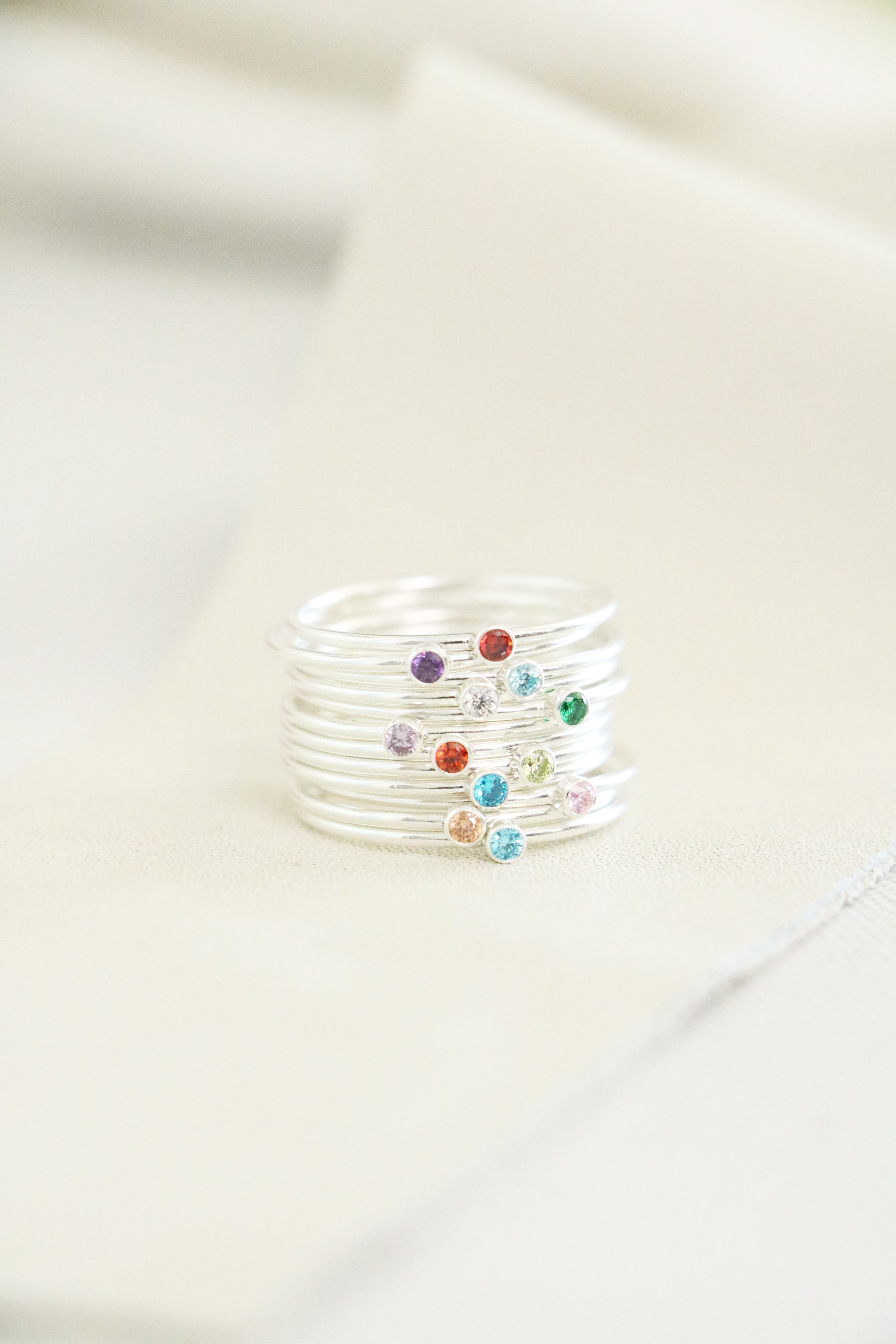 A beautiful hand sculpted ring is cast in fine sterling silver. Set with a beautiful faceted solitaire birthstone of your choice. These are perfect for stacking together or wearing alone.