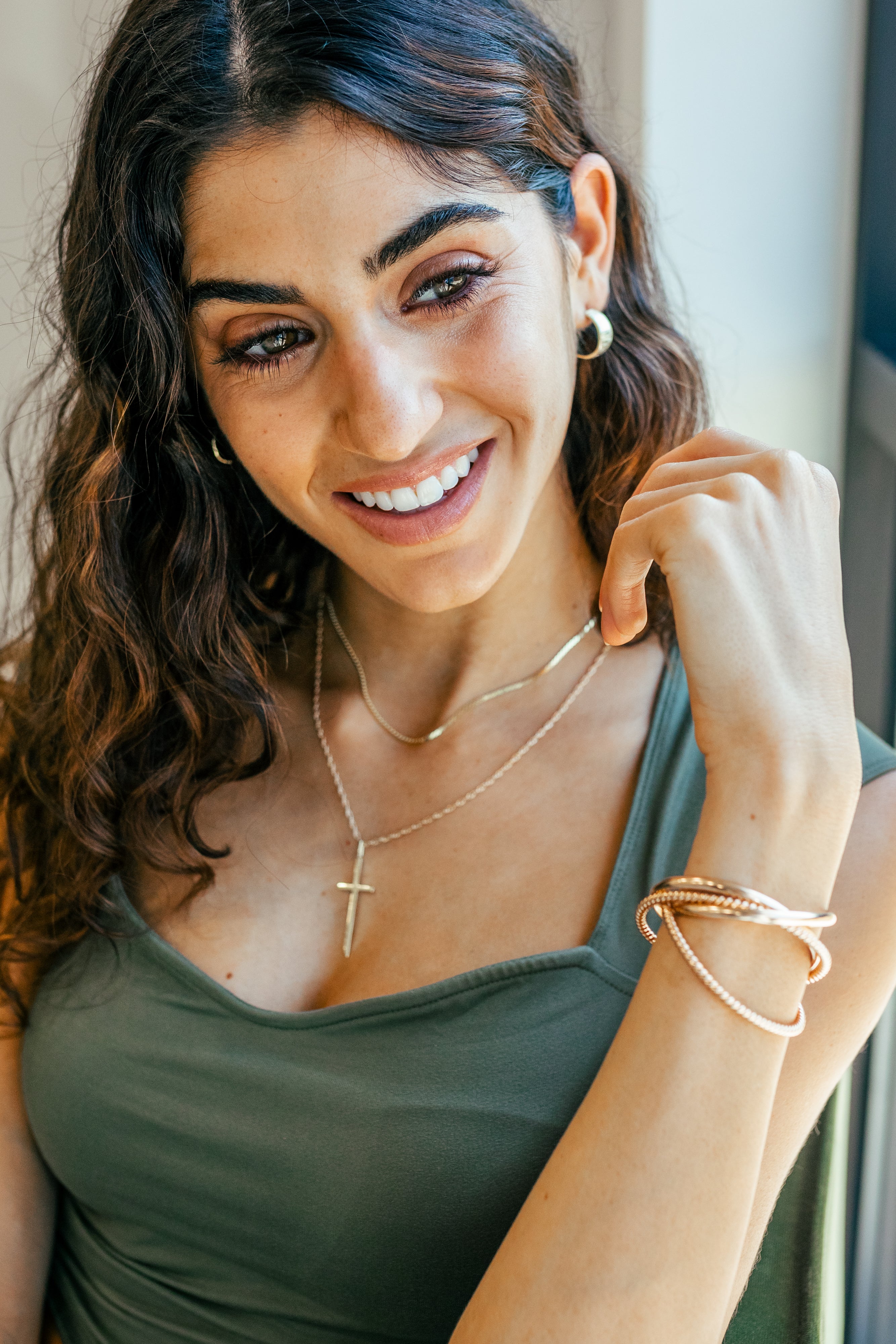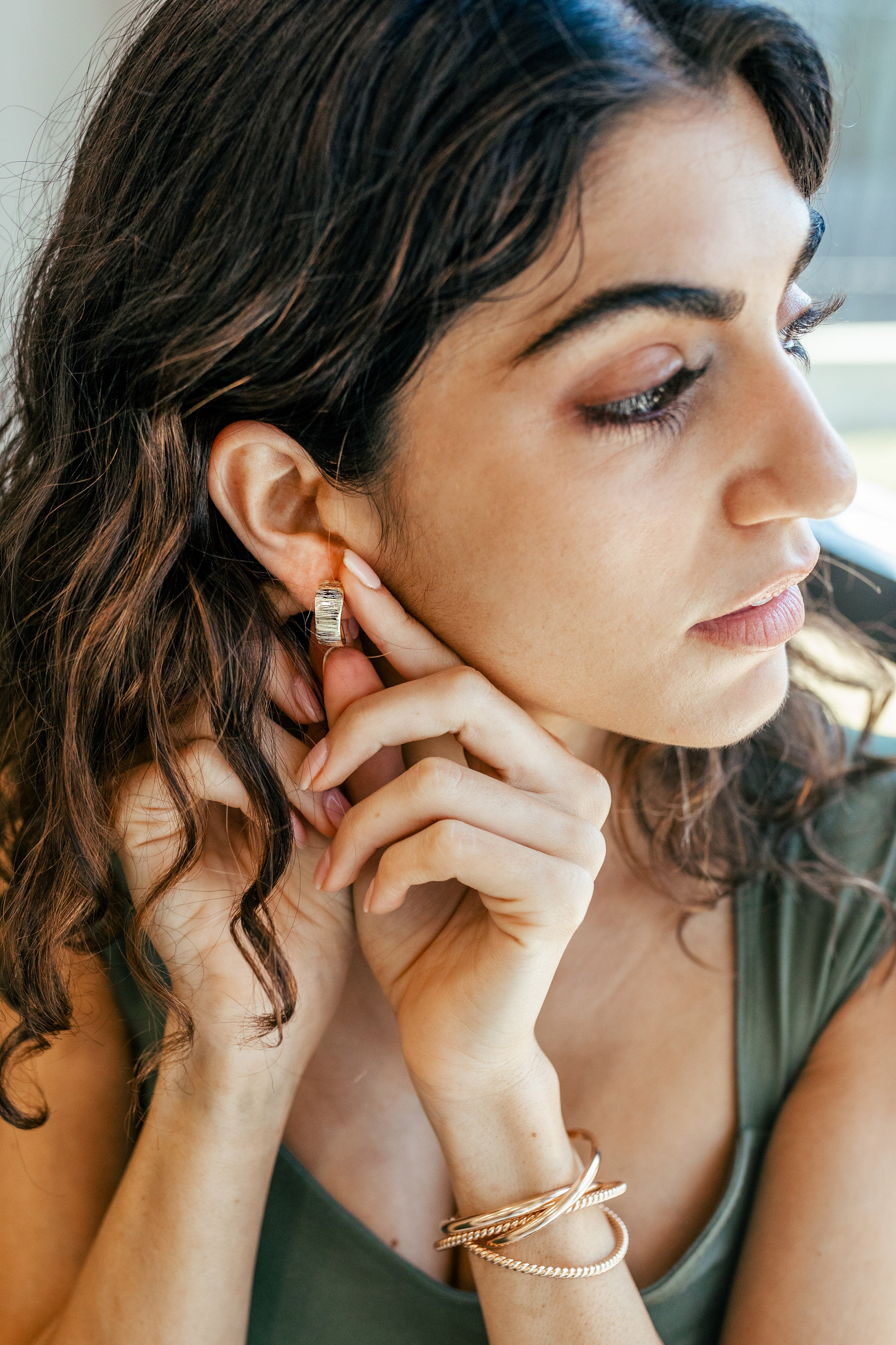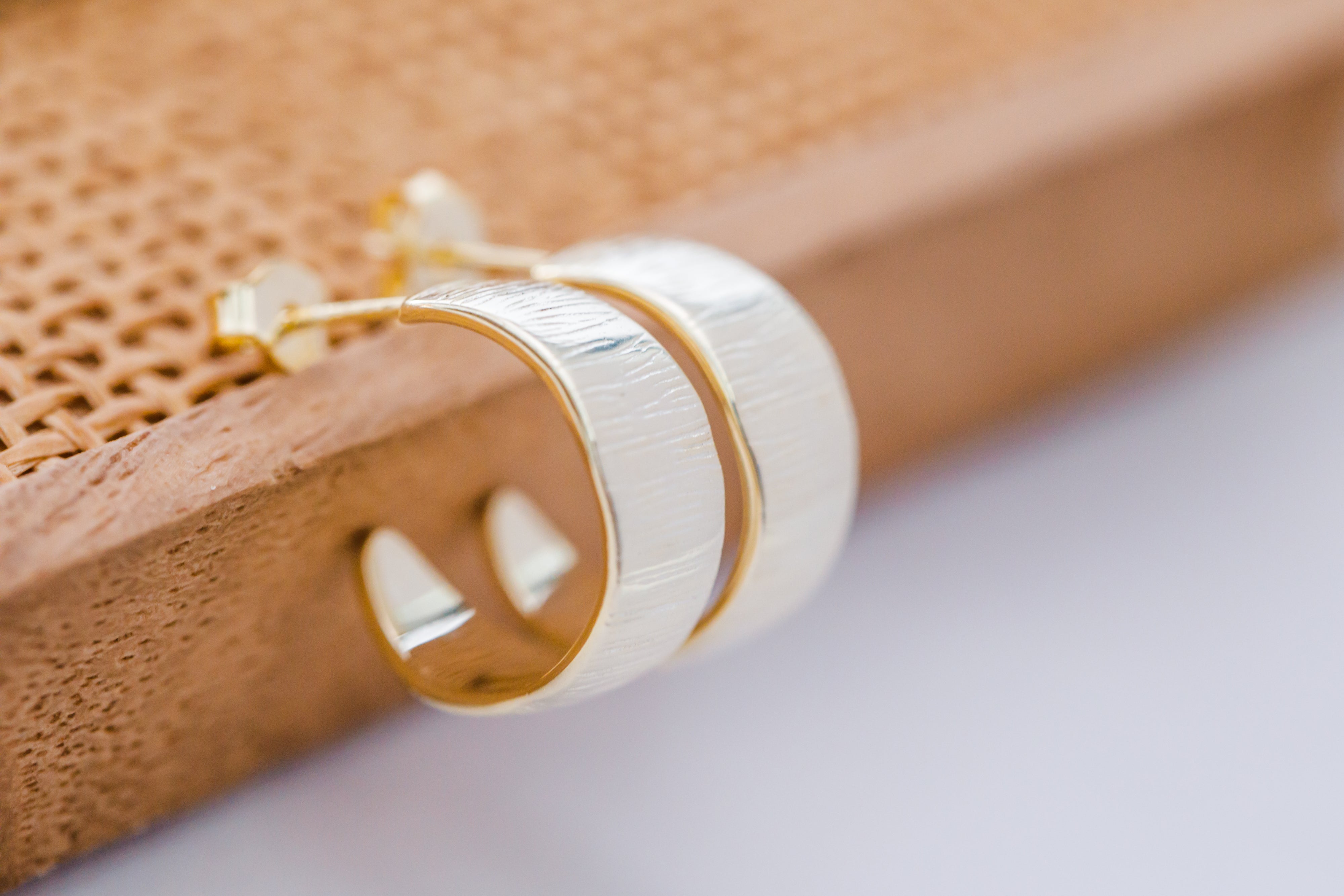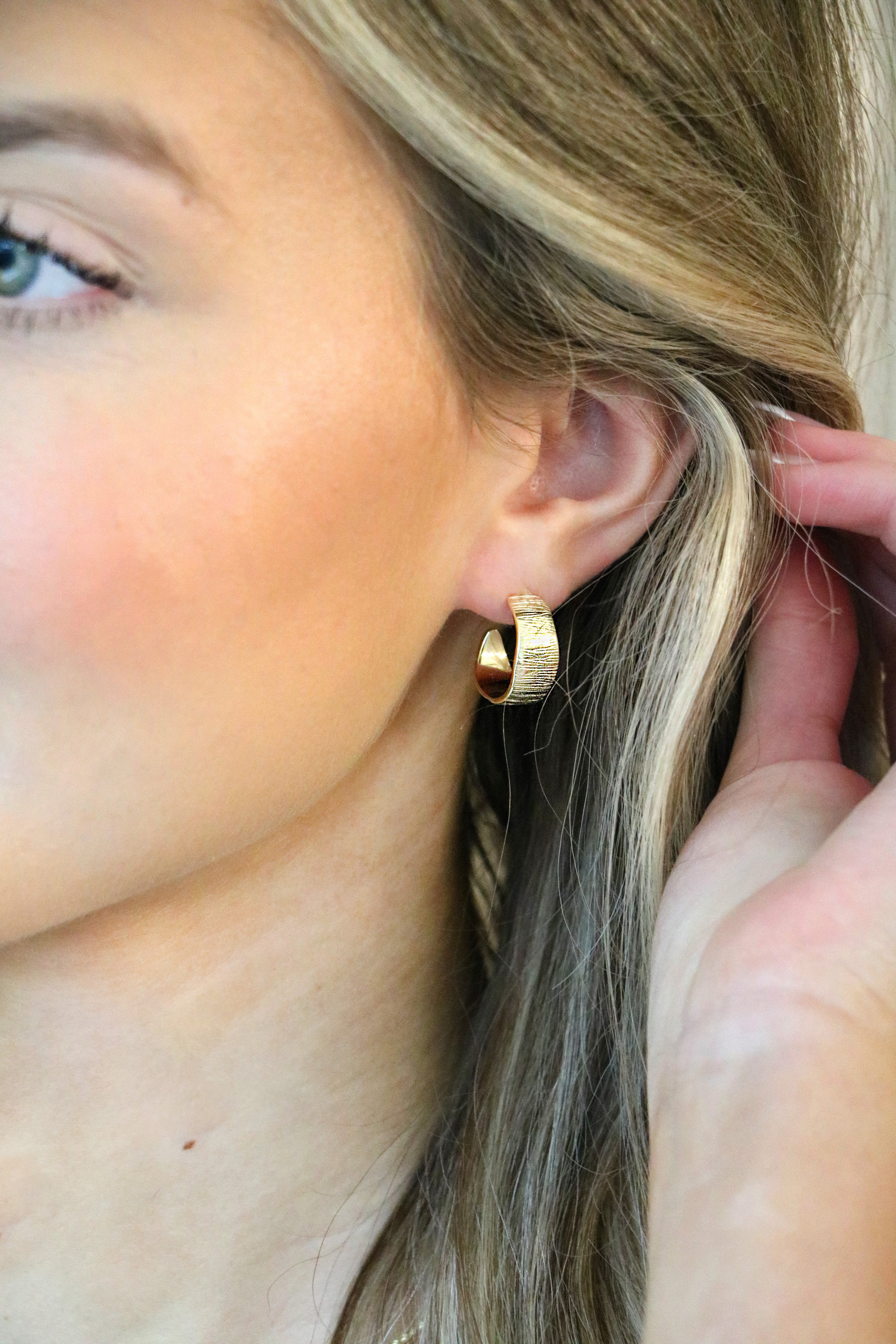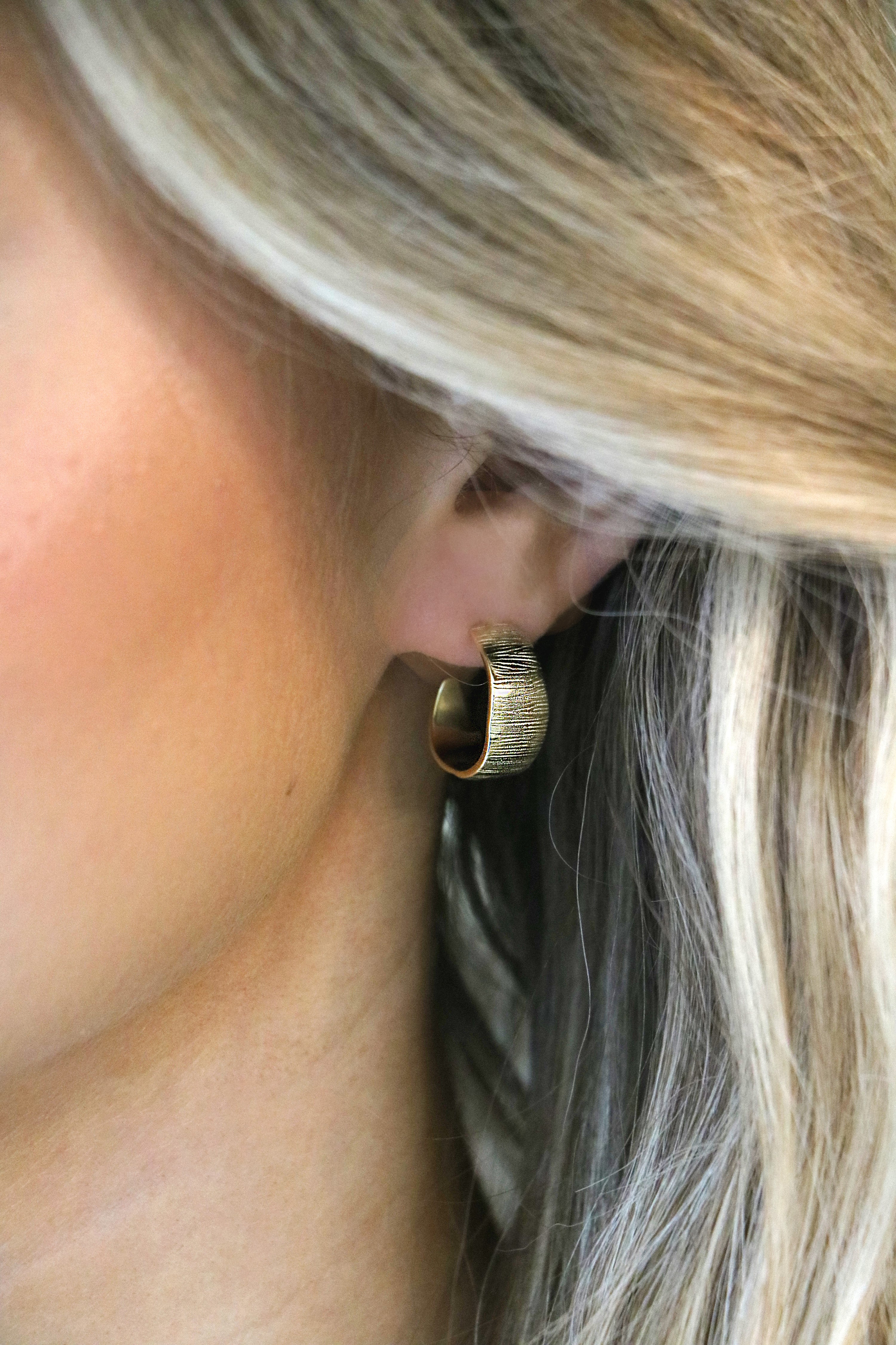 These 3/4 length hoops are bold yet refined with its unique etching. Perfect statement hoops for a night out, but also looks great with everyday staples.