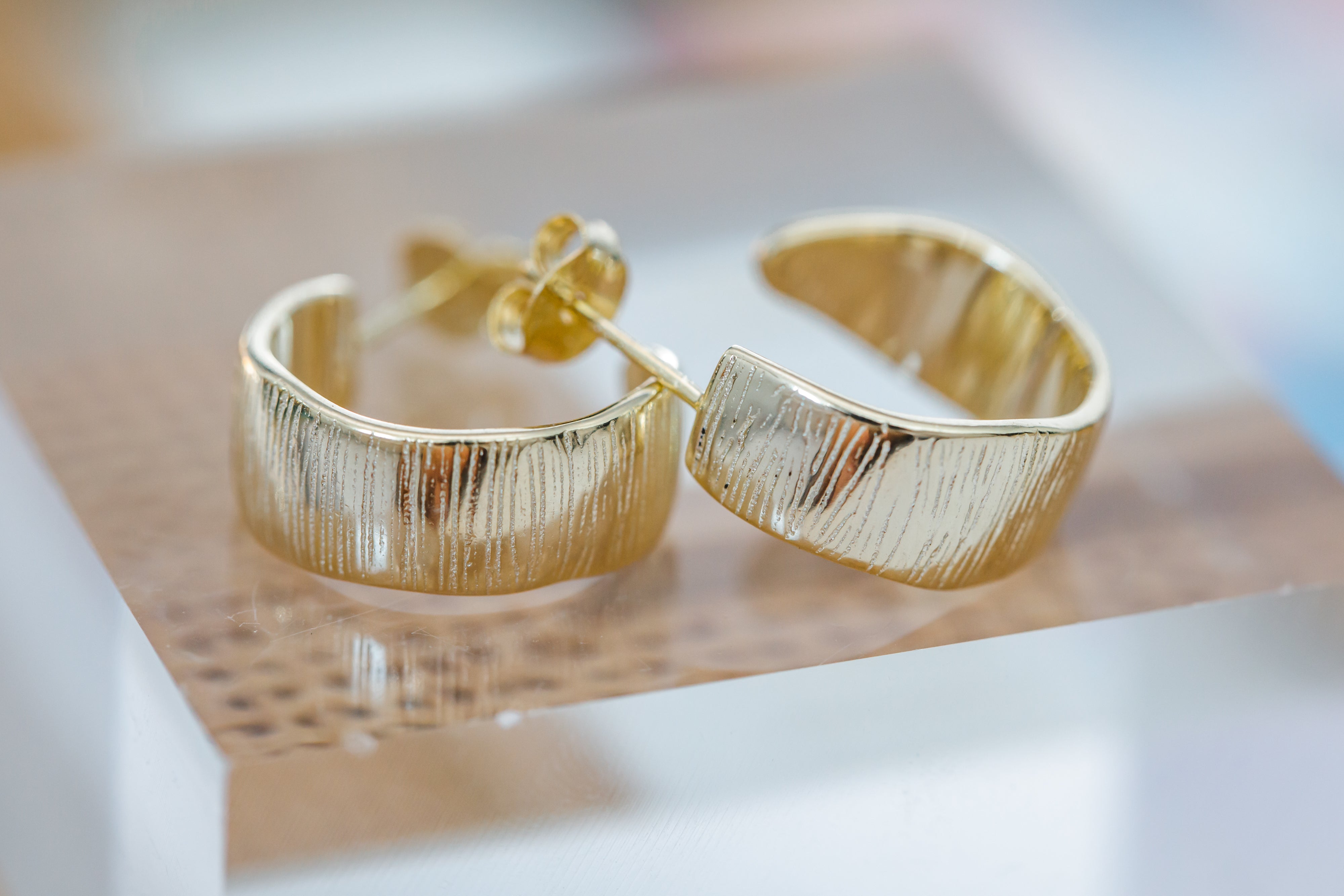 etched hoops { gold plated }