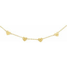 Choose up to 6 hearts each stamped with a single initial. Evenly spaced throughout the chain, this necklace is the perfect layering chain to wear every day. Available in solid sterling silver and solid 10K gold, it is waterproof + tarnish resistant. Attached to your choice of 14K gold filled or solid sterling silver chain.
