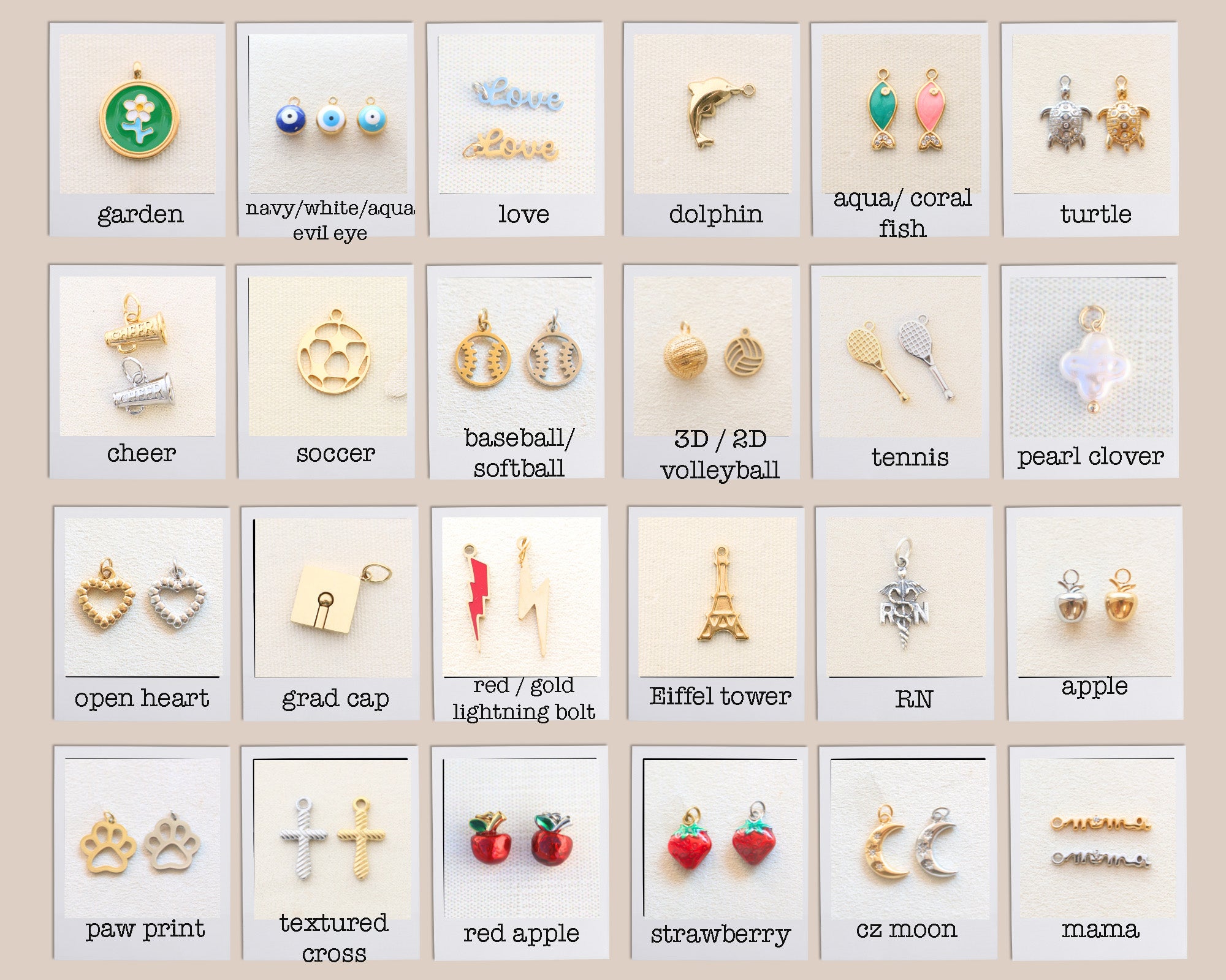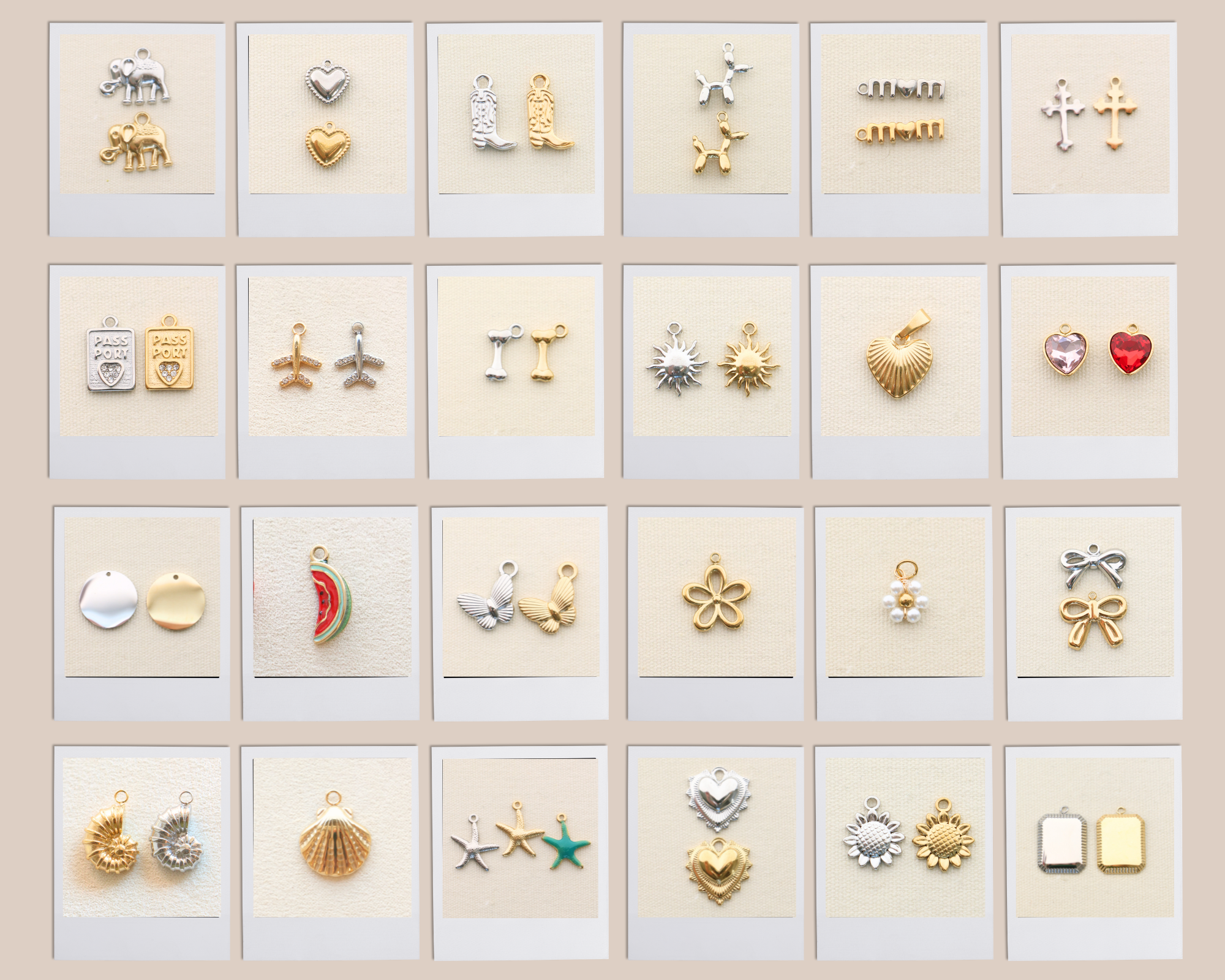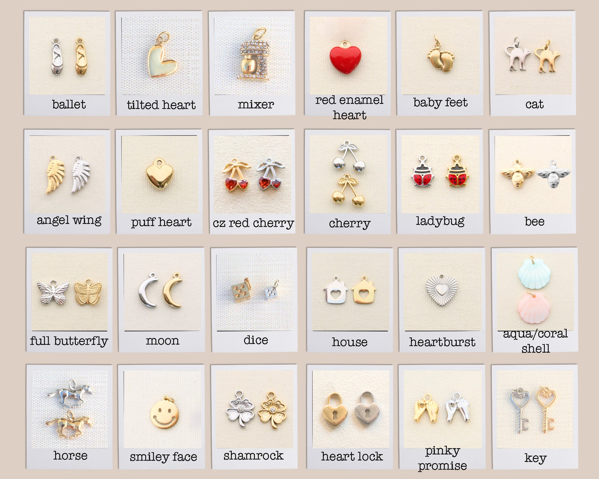 All charms are made from hypoallergenic jewelry grade stainless steel plated with 14k gold for durability. All elements are waterproof and tarnish resistant!