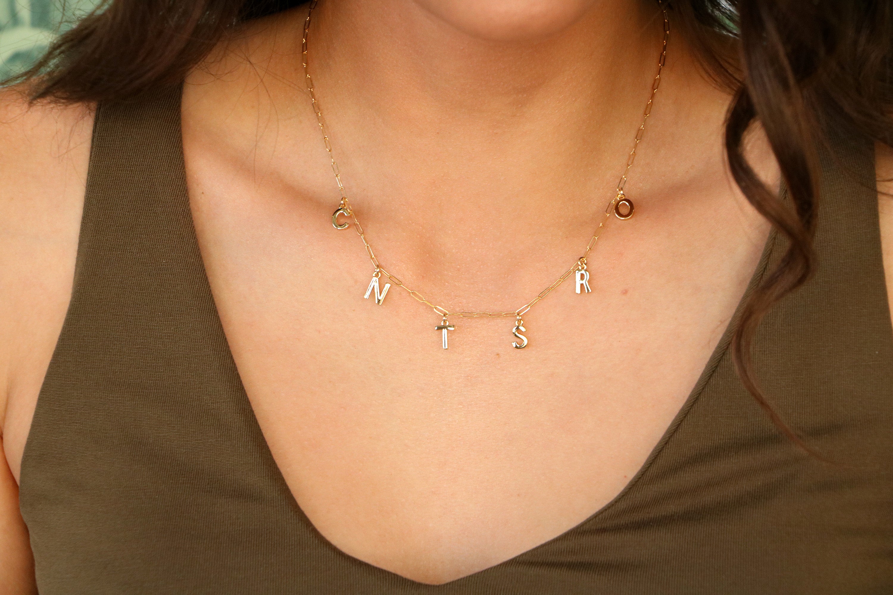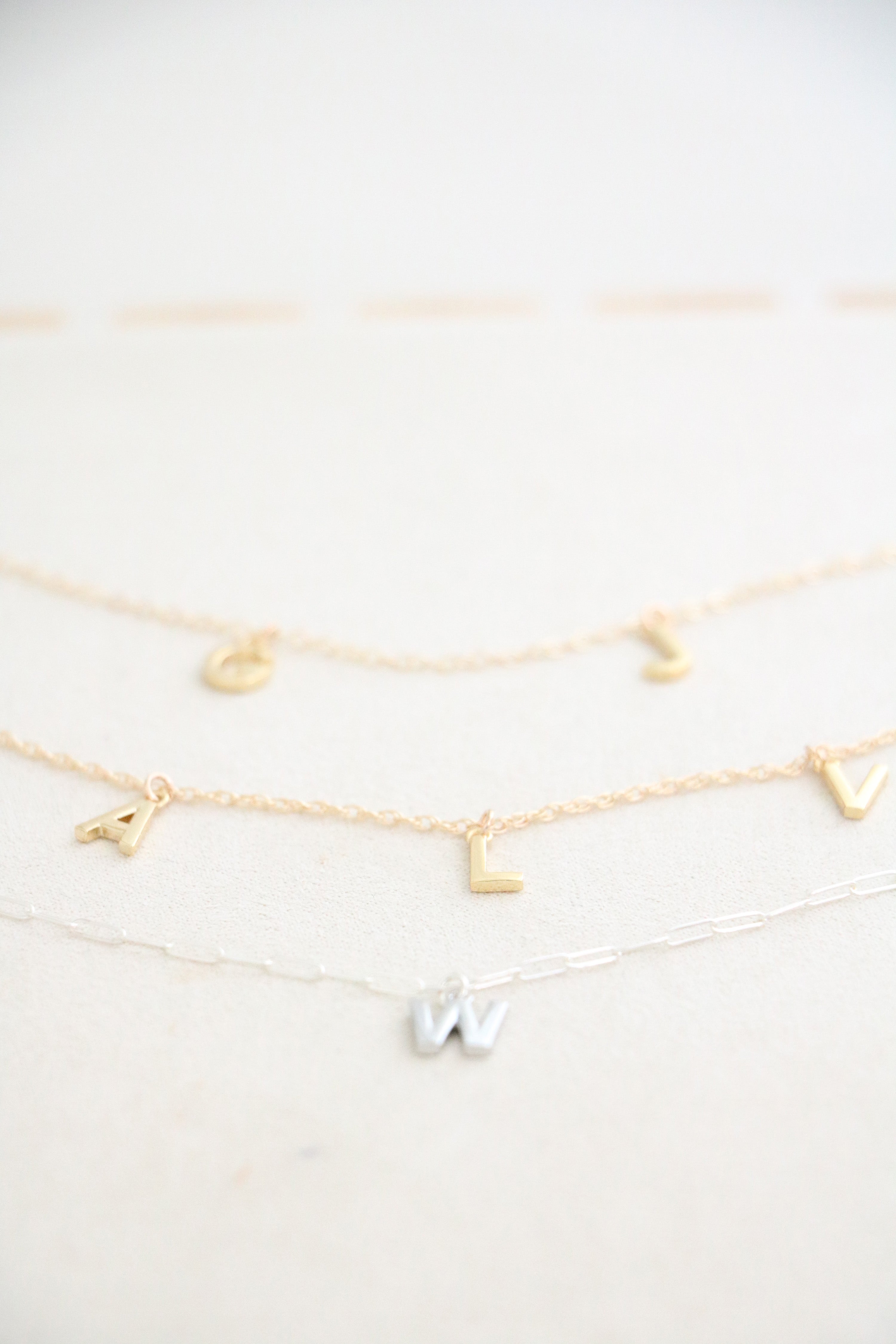 *Solid gold letters and gold plated letters will include a 14K gold filled chain (not solid gold). If you would like to upgrade to a solid gold chain, please contact us for pricing!