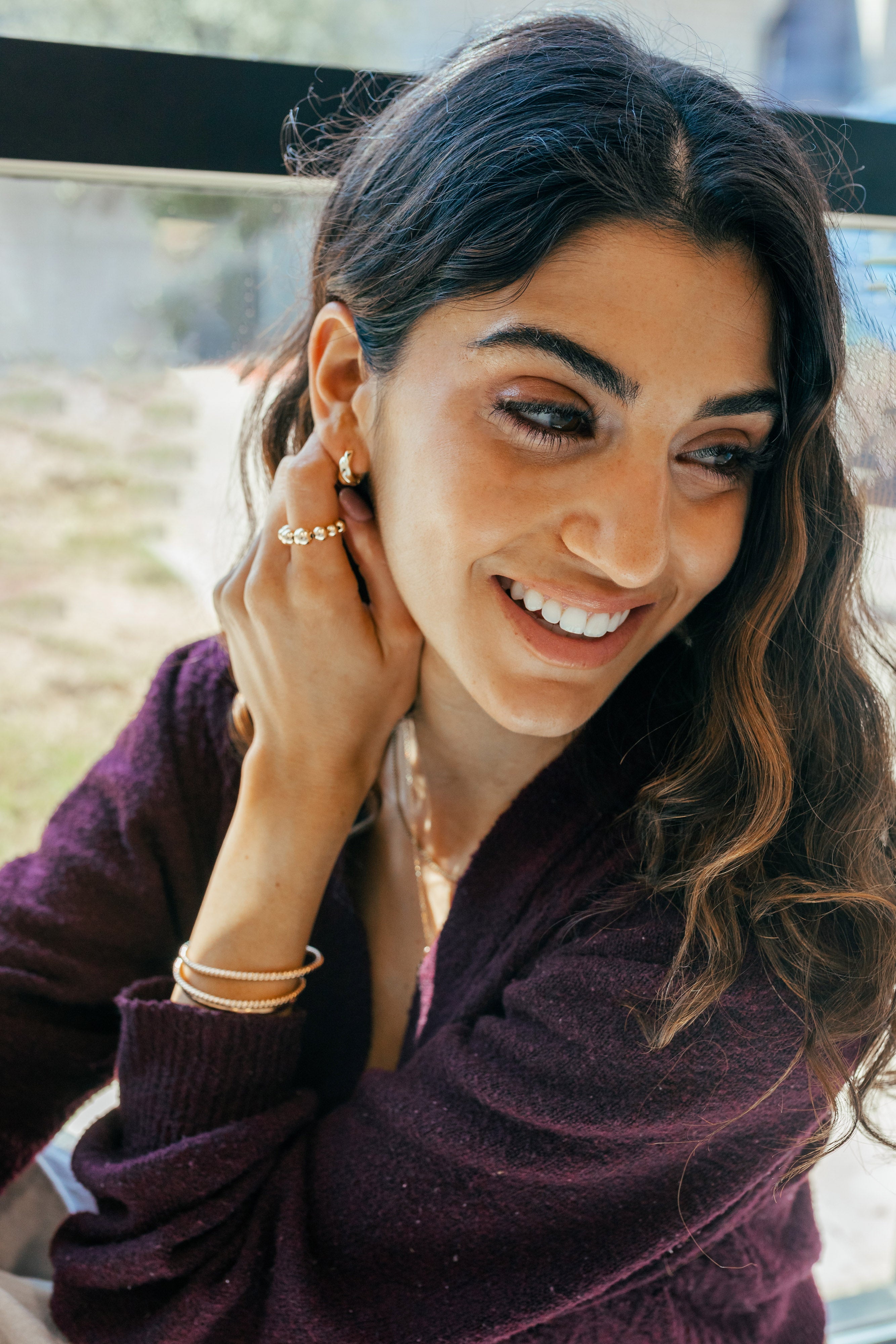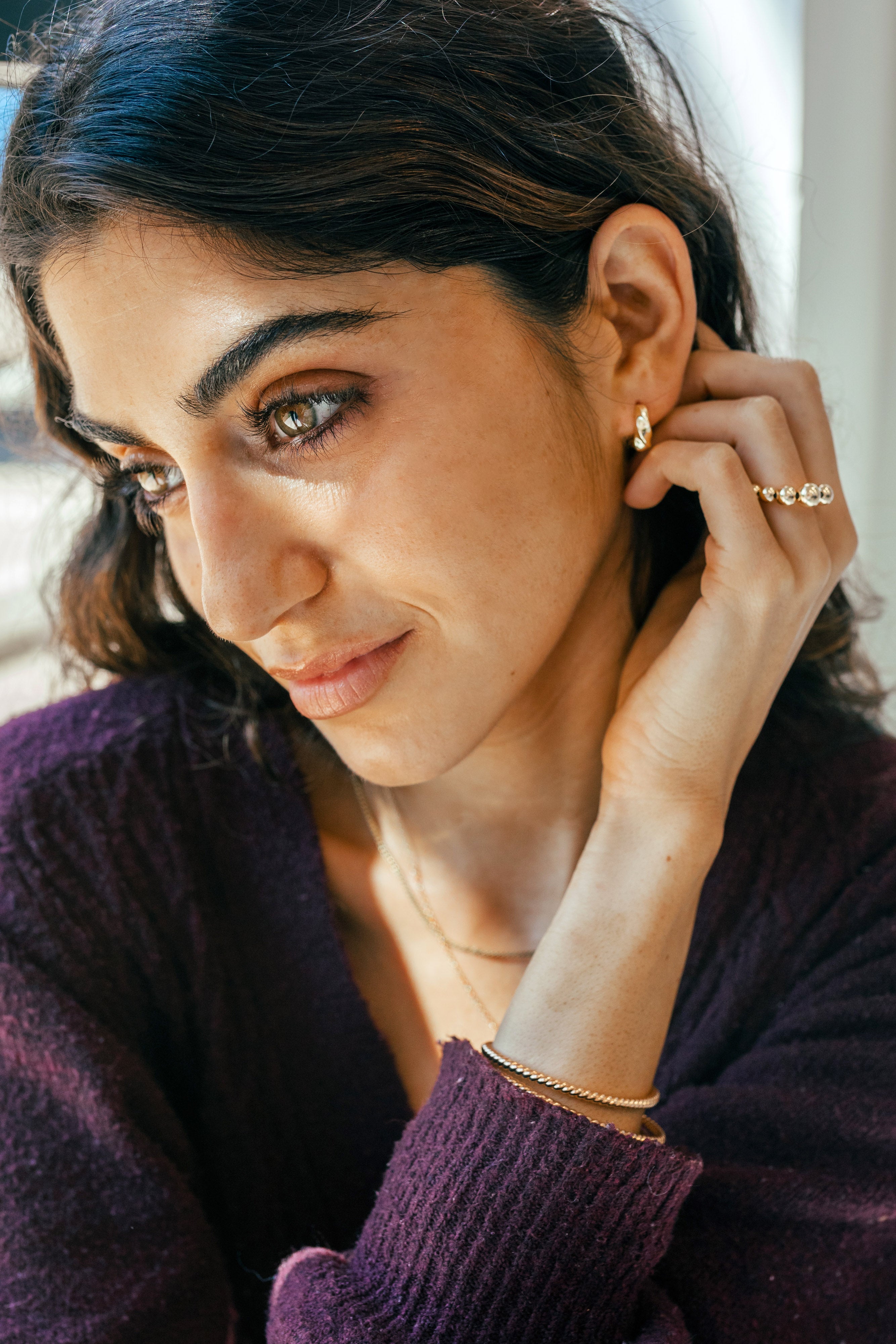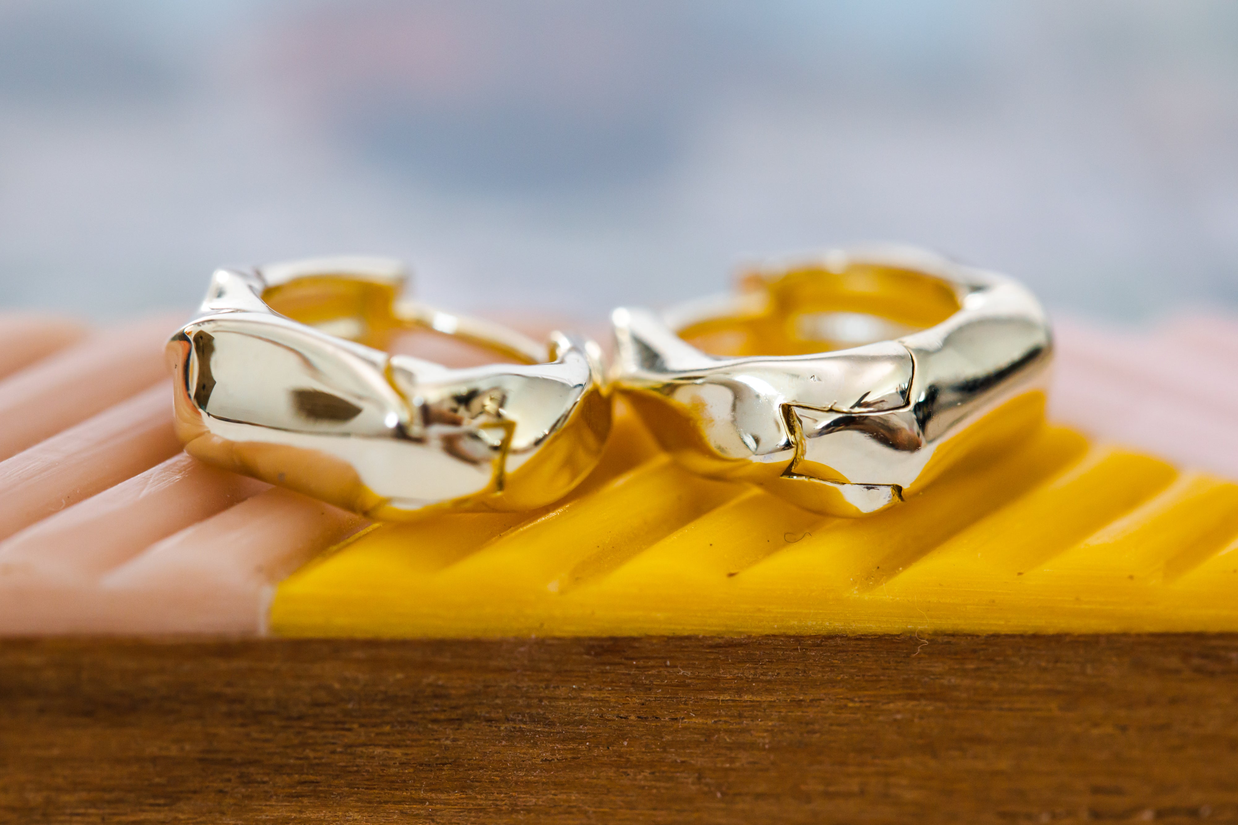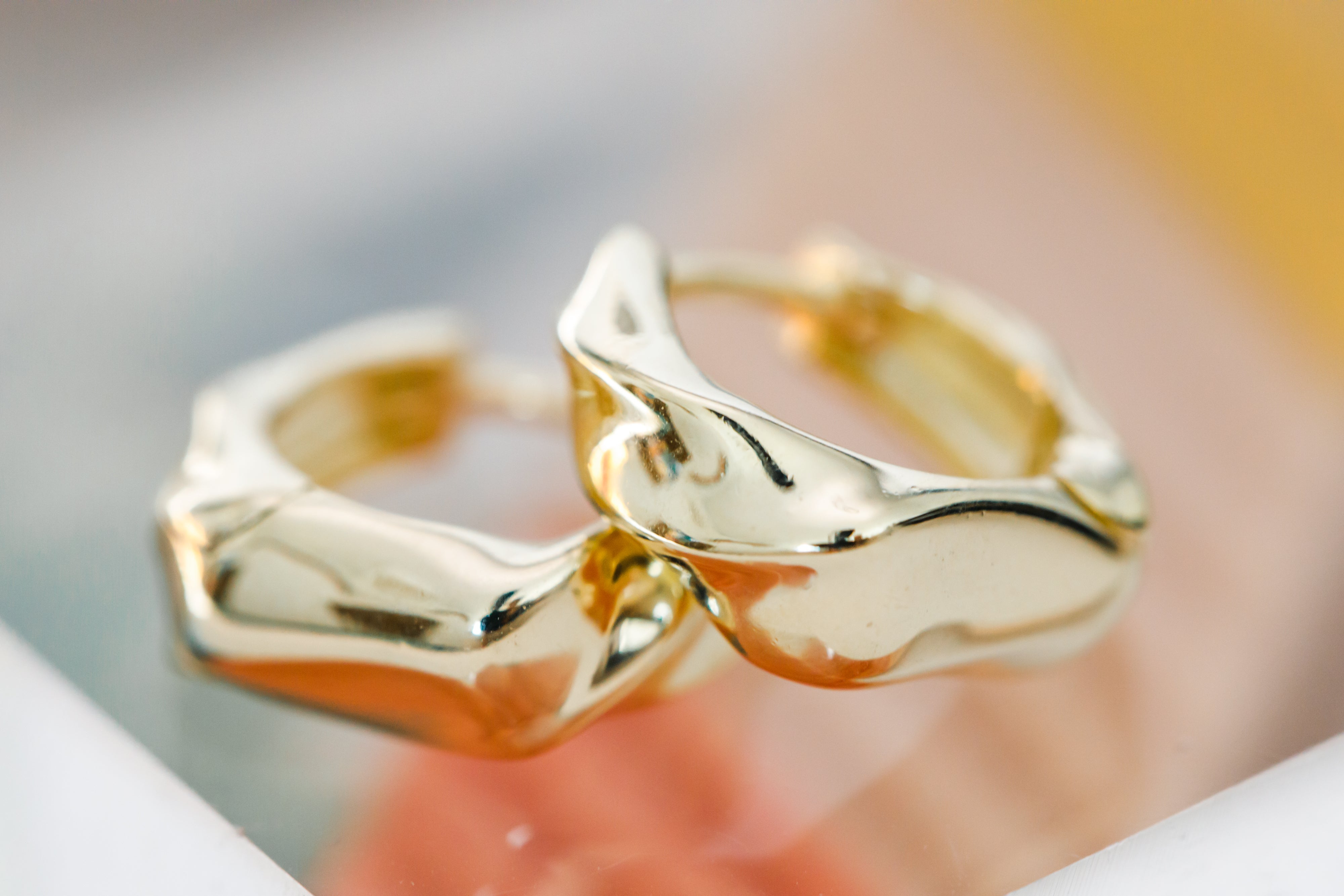 A traditional style hoop but elevated in stye, with a twisted ribbon-like appearance. These hoops are the perfect size for your first or second hole. Easy to open and close with a hinge closure. Made of solid sterling silver plated with 14K gold.