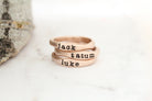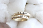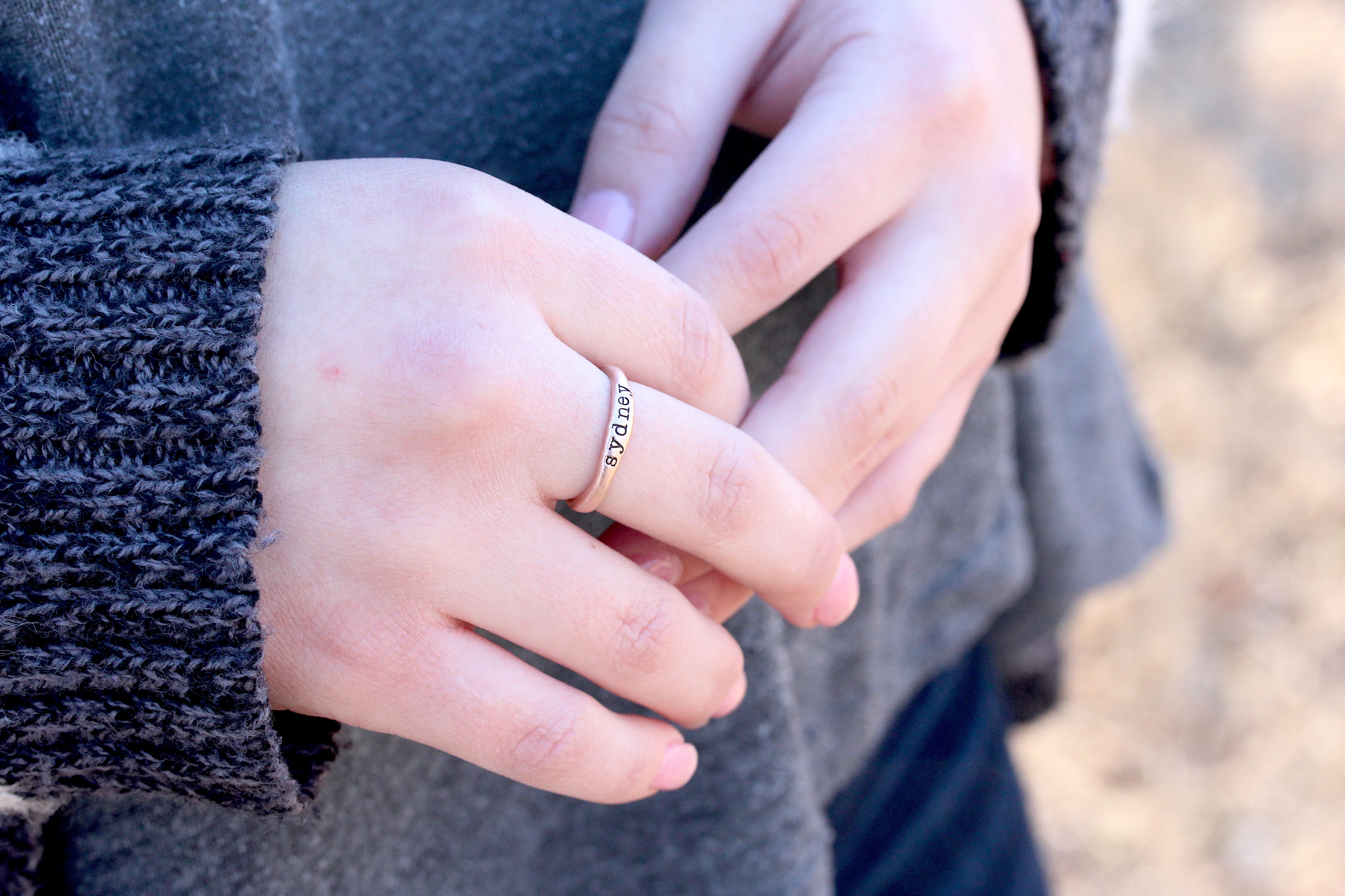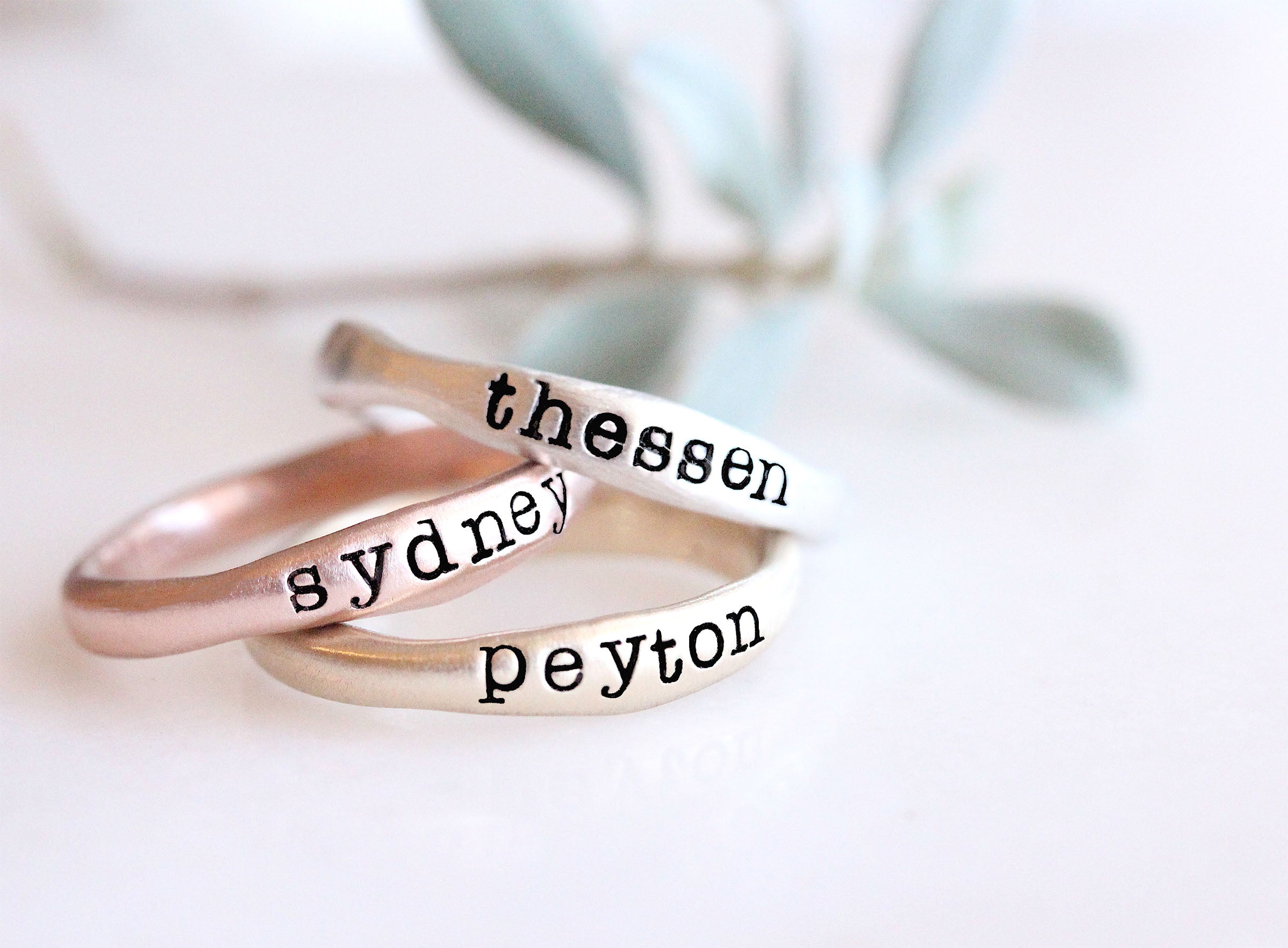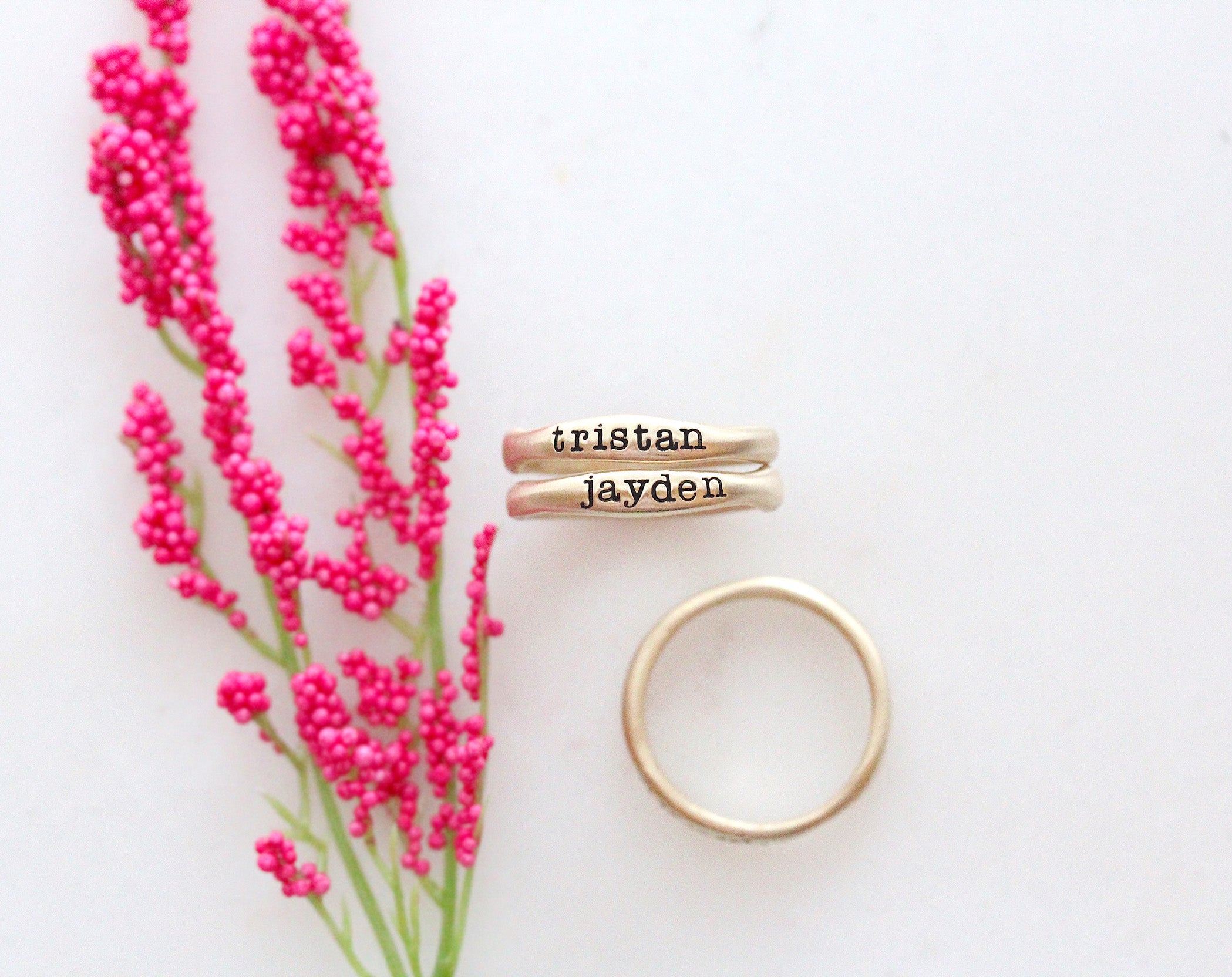 As a mom, I am constantly using my hands, whether its cleaning up spills, playing with legos, tying ponytails, or making lunches.... these rings are the sweetest reminder in all the ordinary jobs I do. My heart is renewed every time I see those three sweet names around my finger.