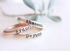 Names are intentionally stamped in all lowercase print and each name is hand stamped. These have a very organic feel and show the quality of handmade craftsmanship. All our items are nickel and lead free.